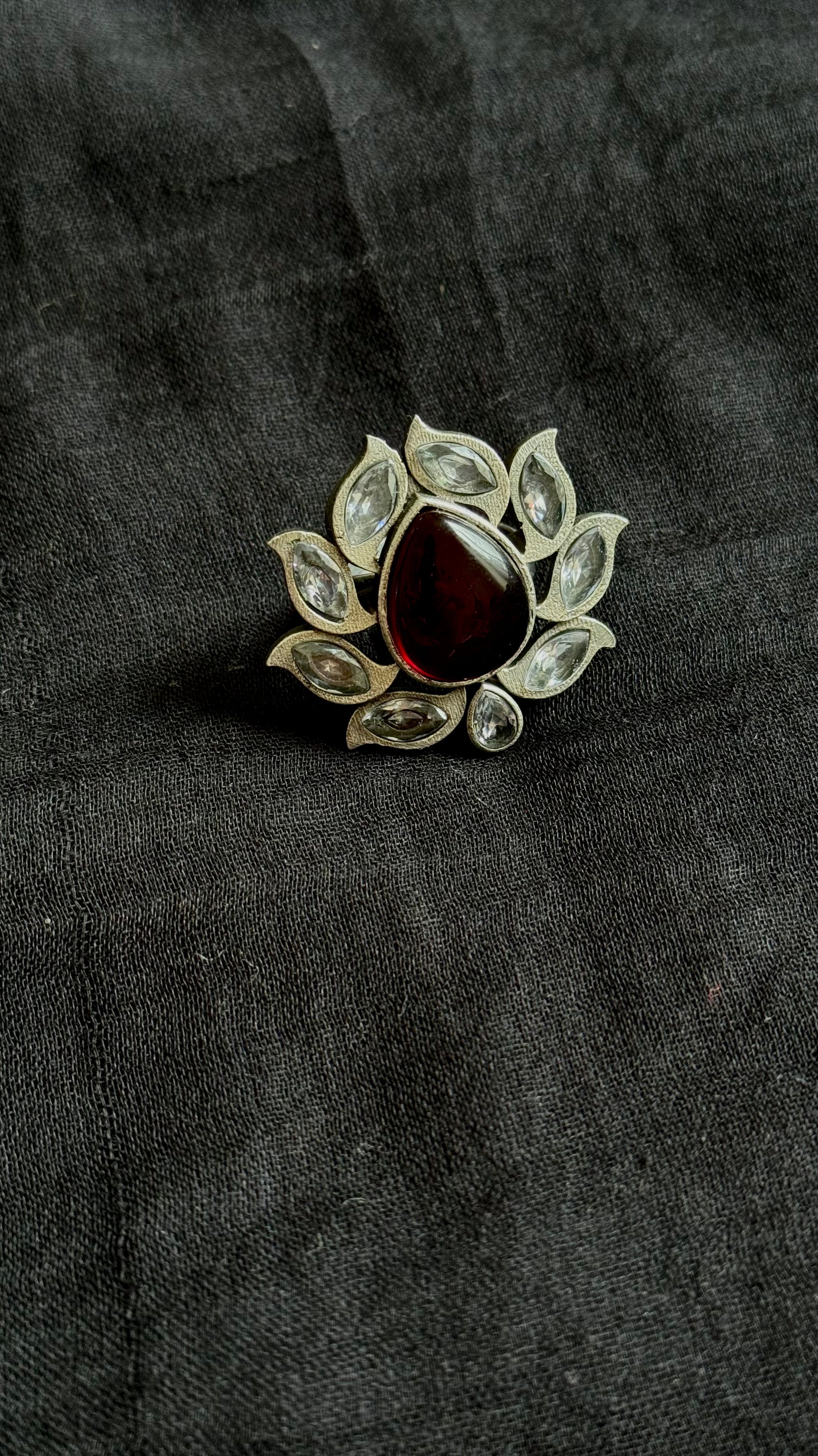Adjustable lotus ring - white dark red stones - YCOSFR143