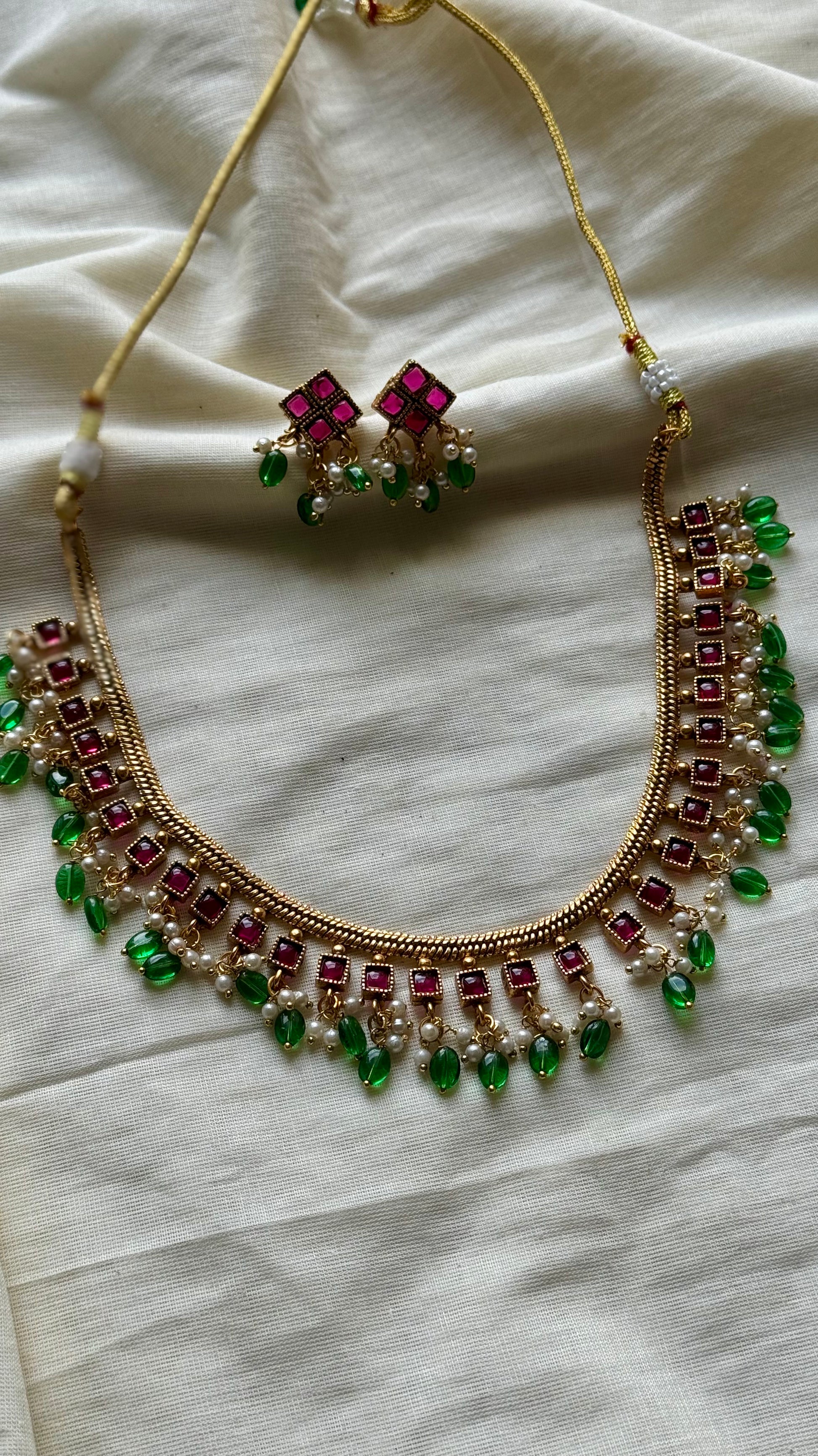 Antique gold jadau kundan choker neckpiece with earrings - YCAGNP272