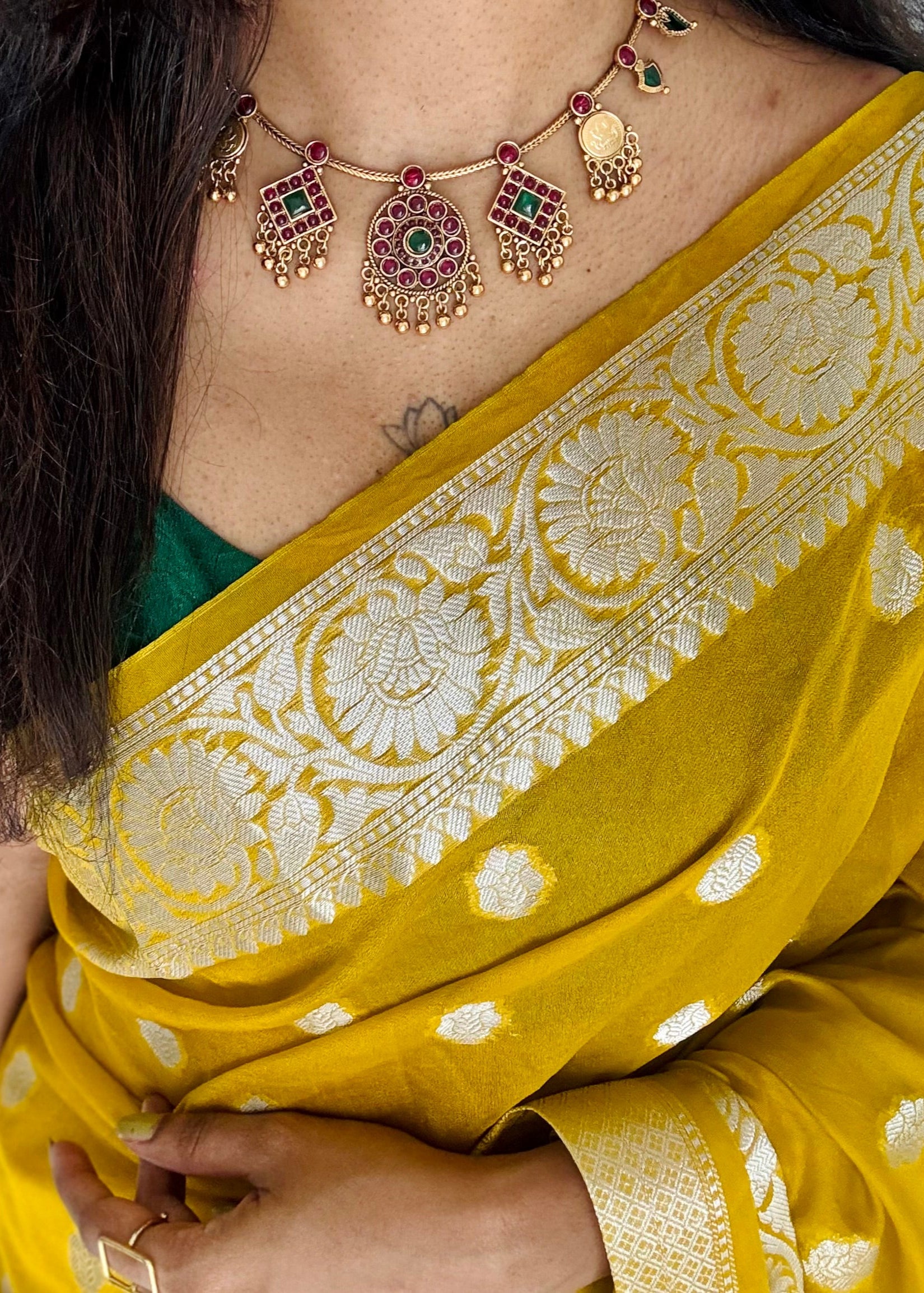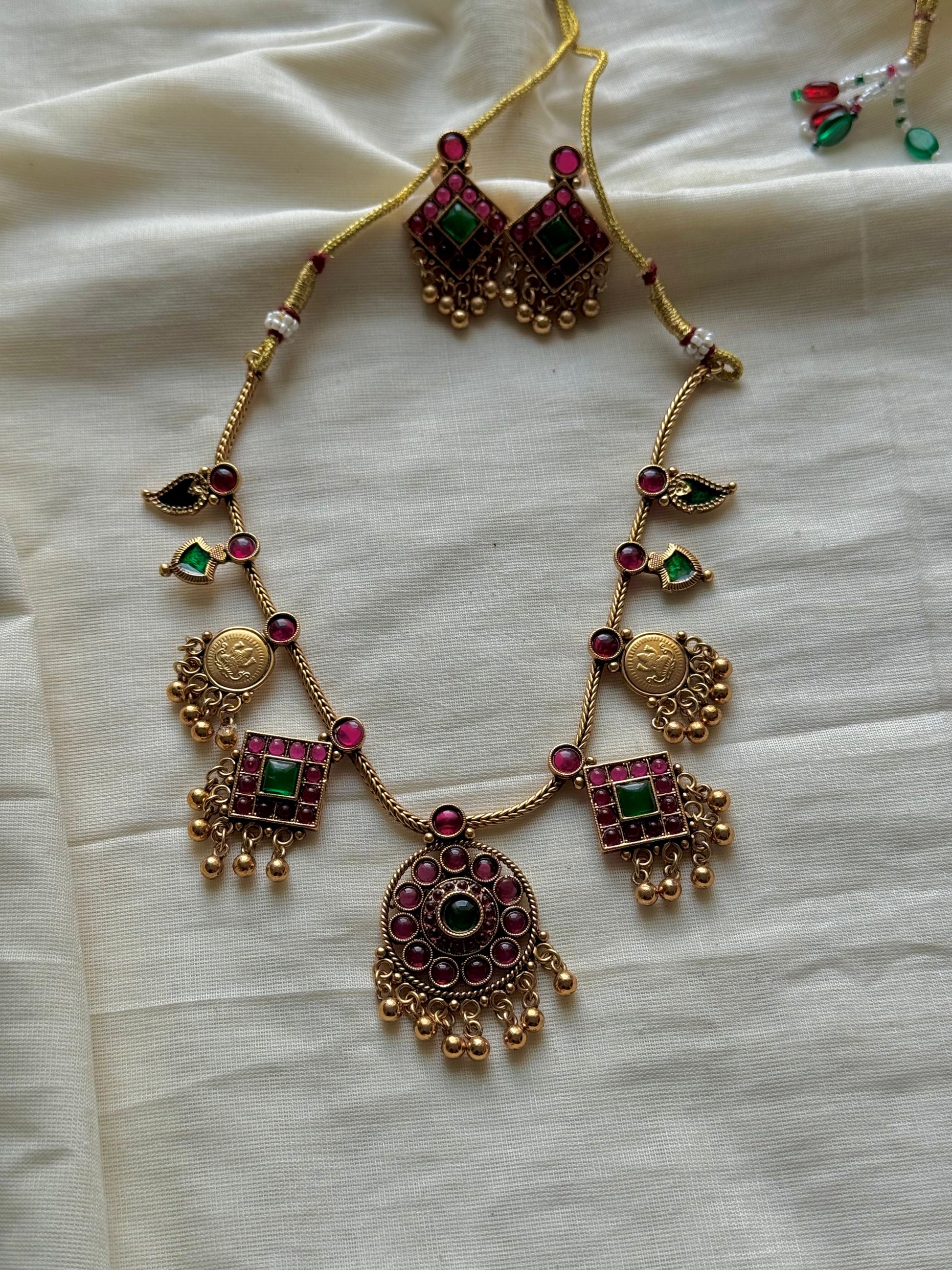 Antique gold multipendants, ruby and green stones with earrings - YCAGNP269