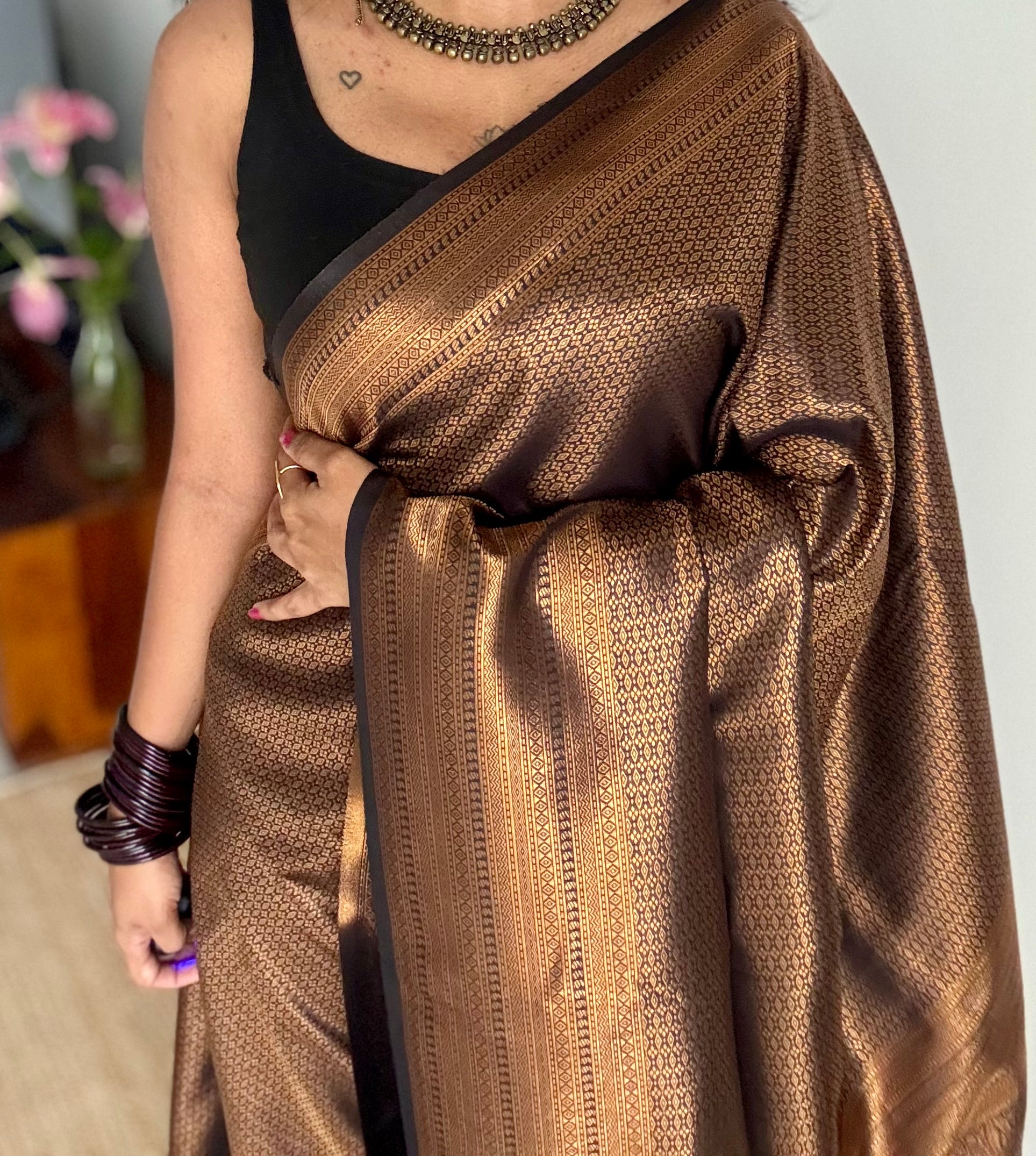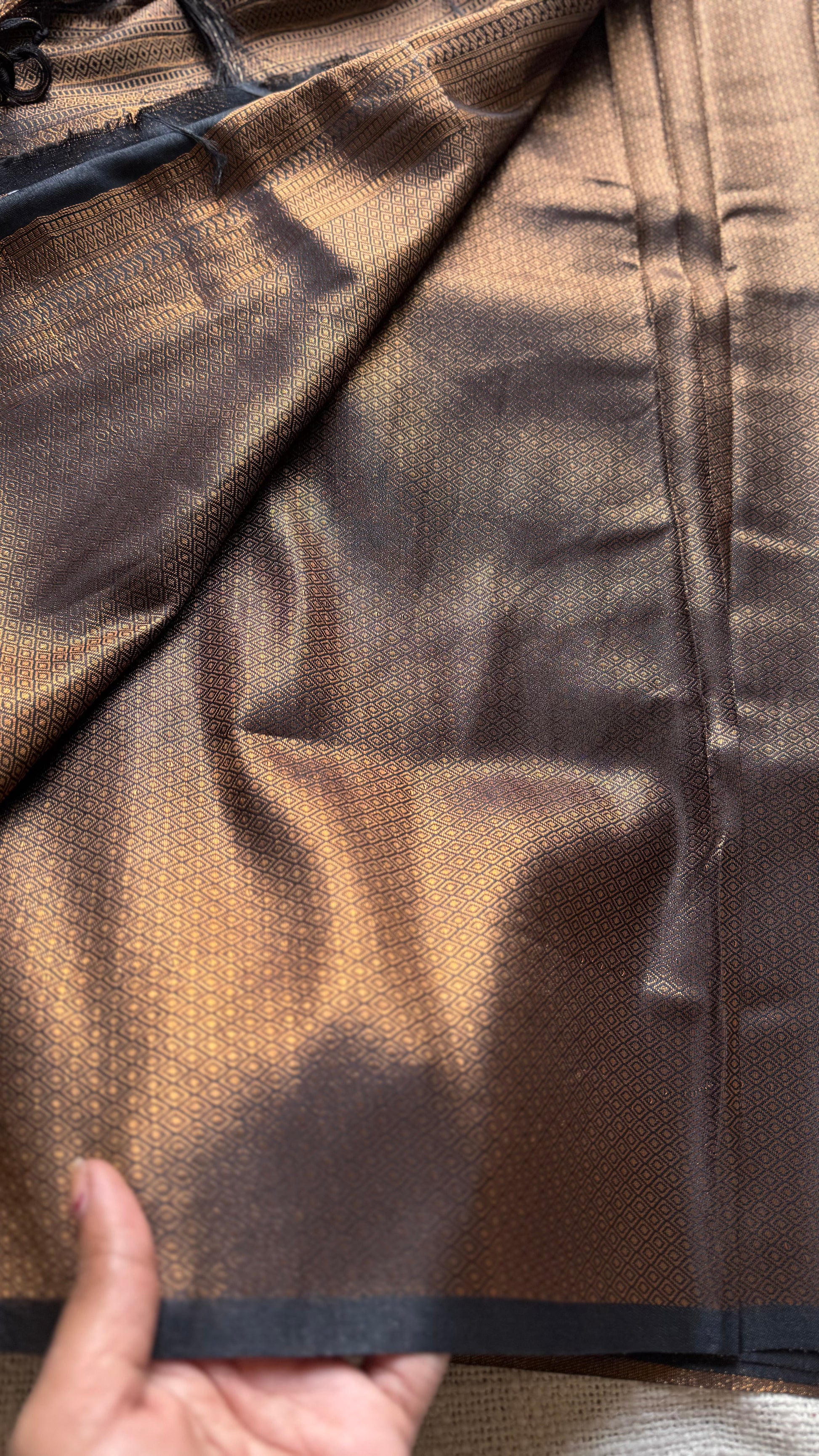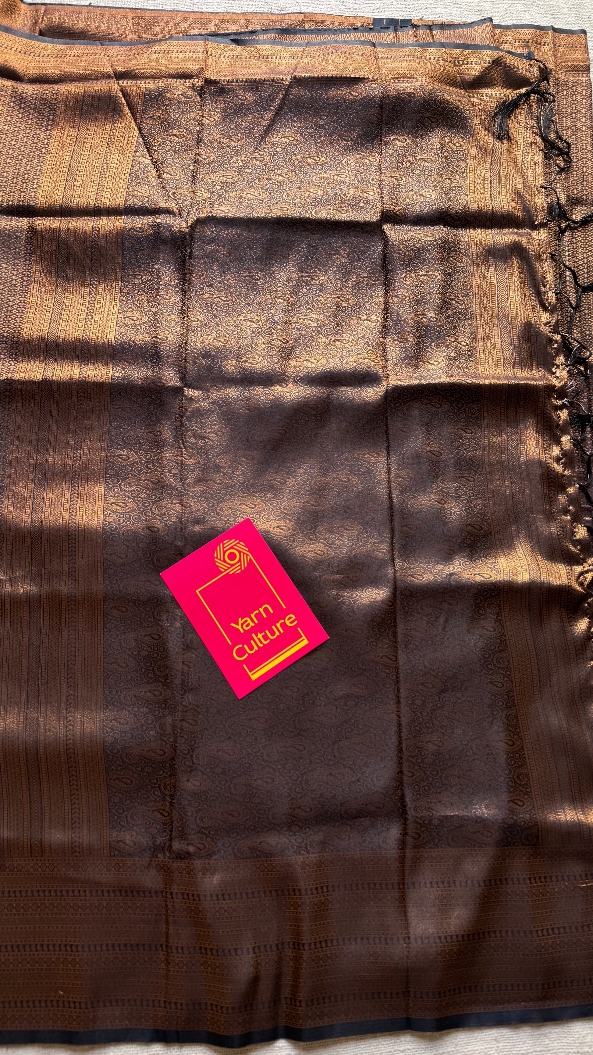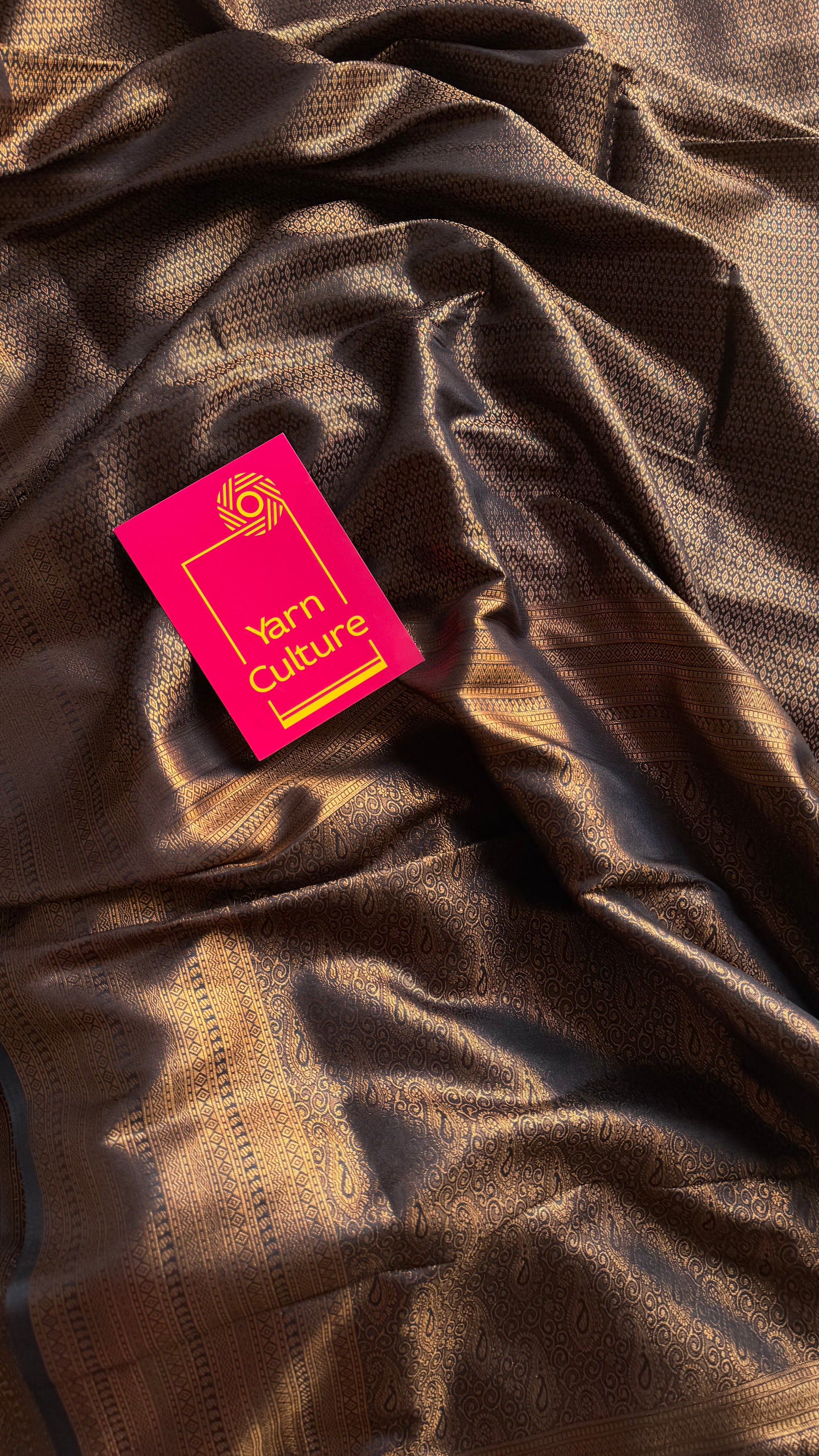 Black, antique gold zari, semi-silk - YCDOSOCSS08