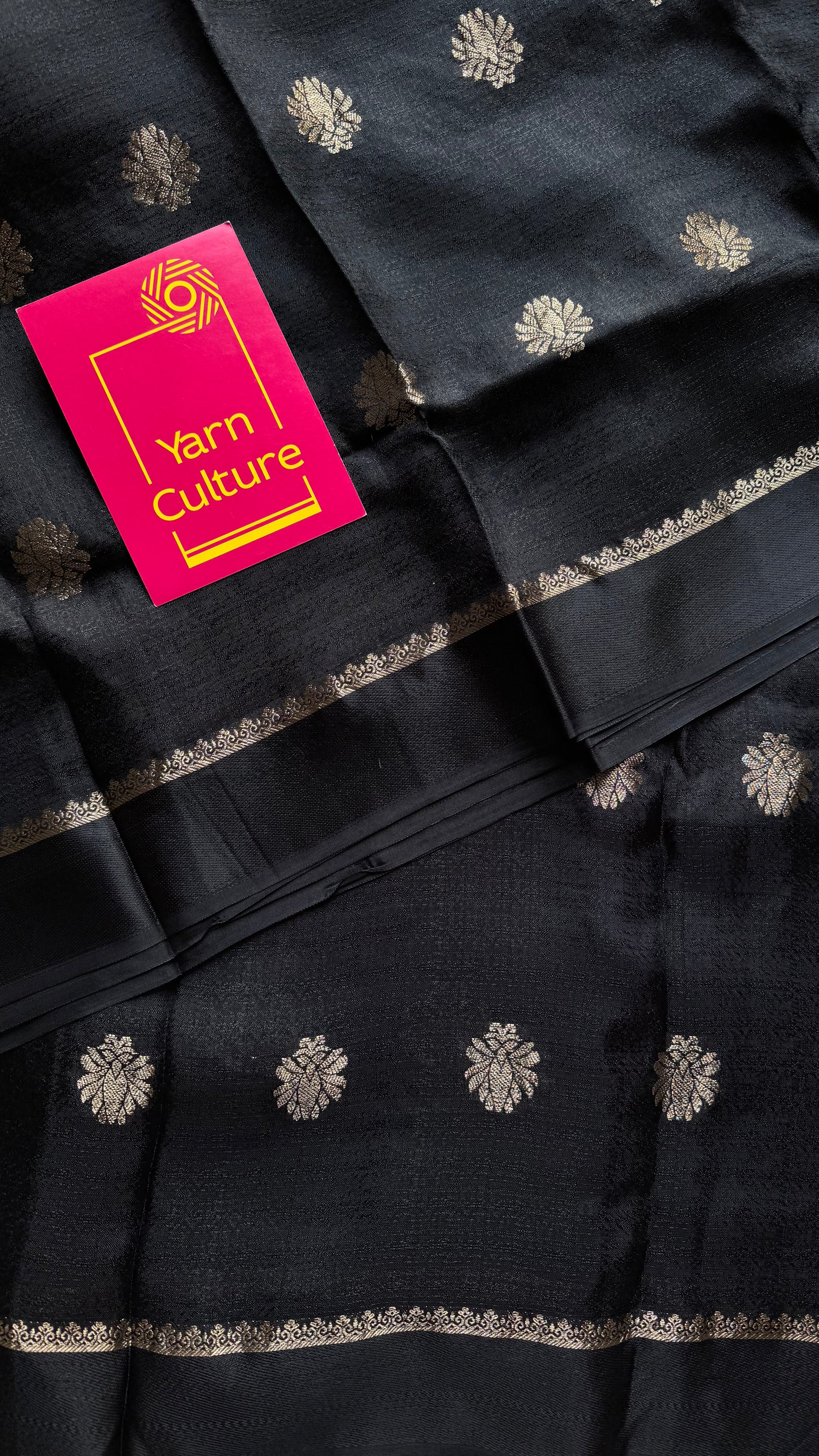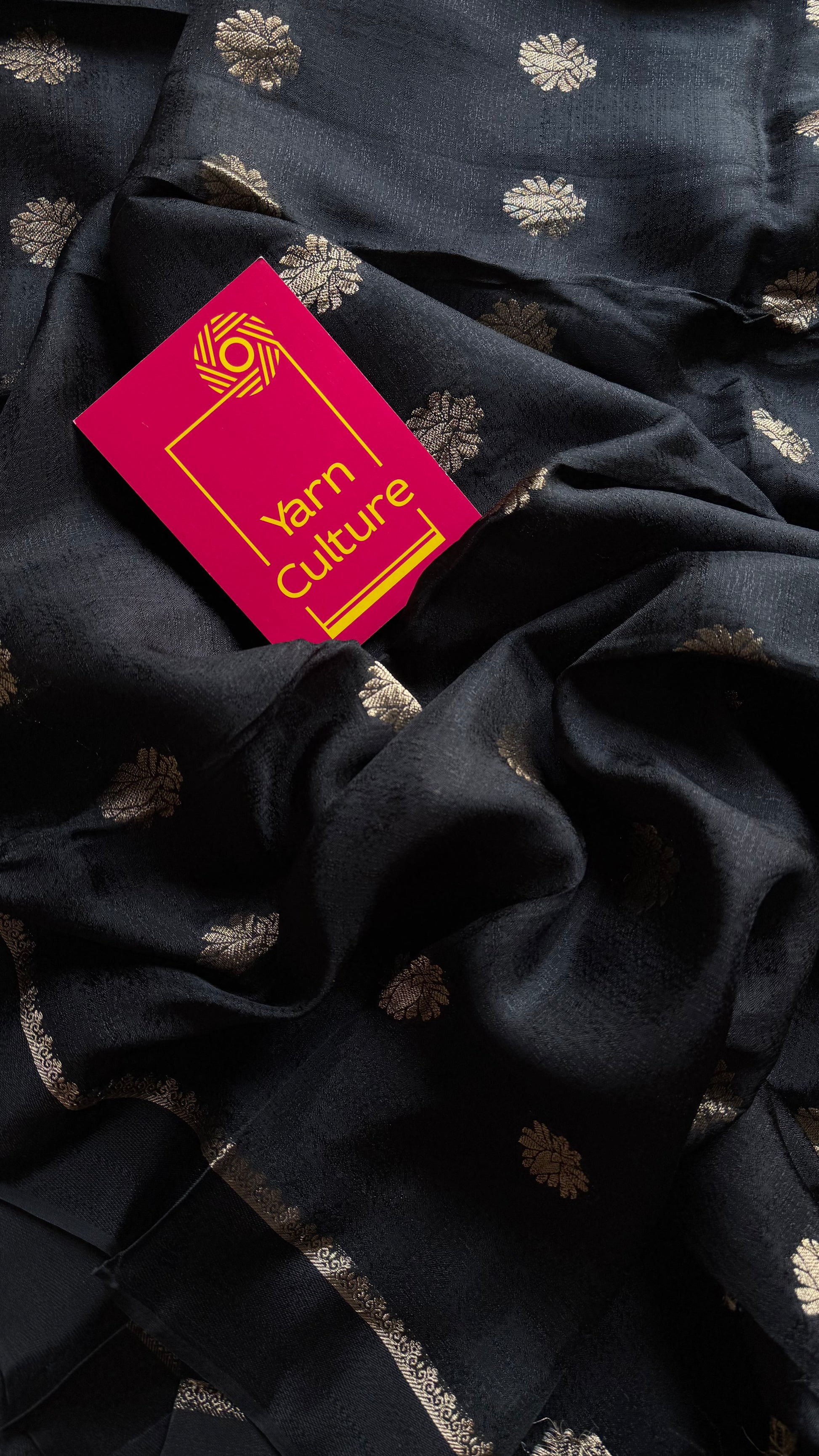 Black in viscose soft silk with satin border, jacquard zari motifs - YCDOSFE201