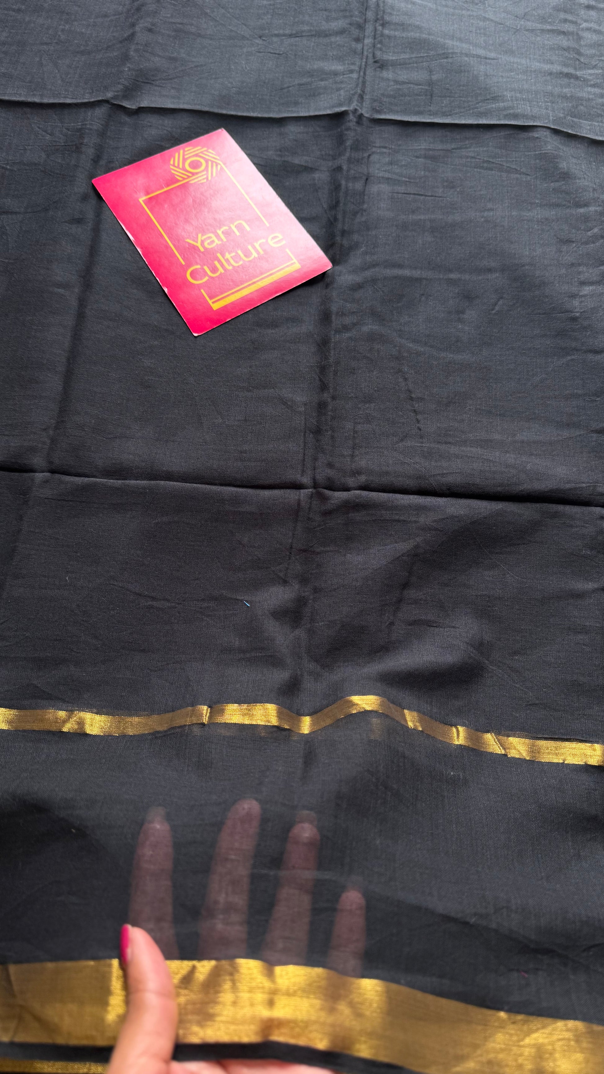 Black mul, antique gold zari, gap border pattern - YCBCMCGZSE69