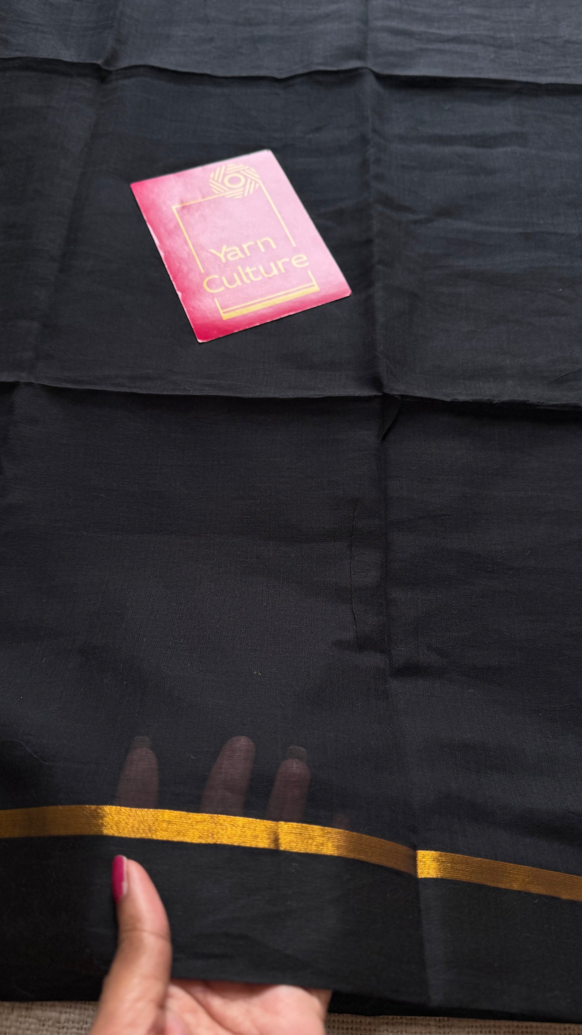 Black mul, thin antique gold zari gap border- YCBCMCLSE37