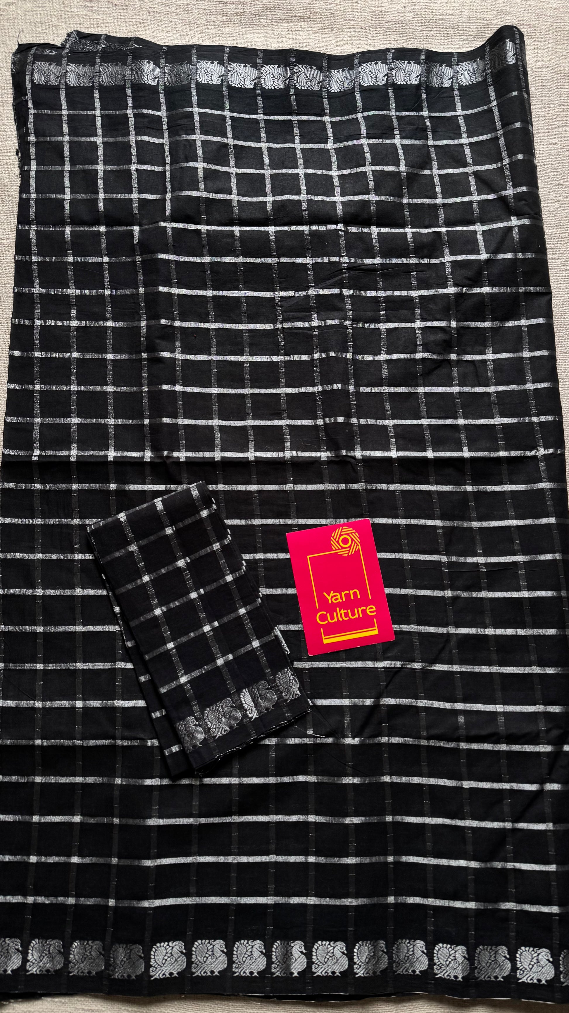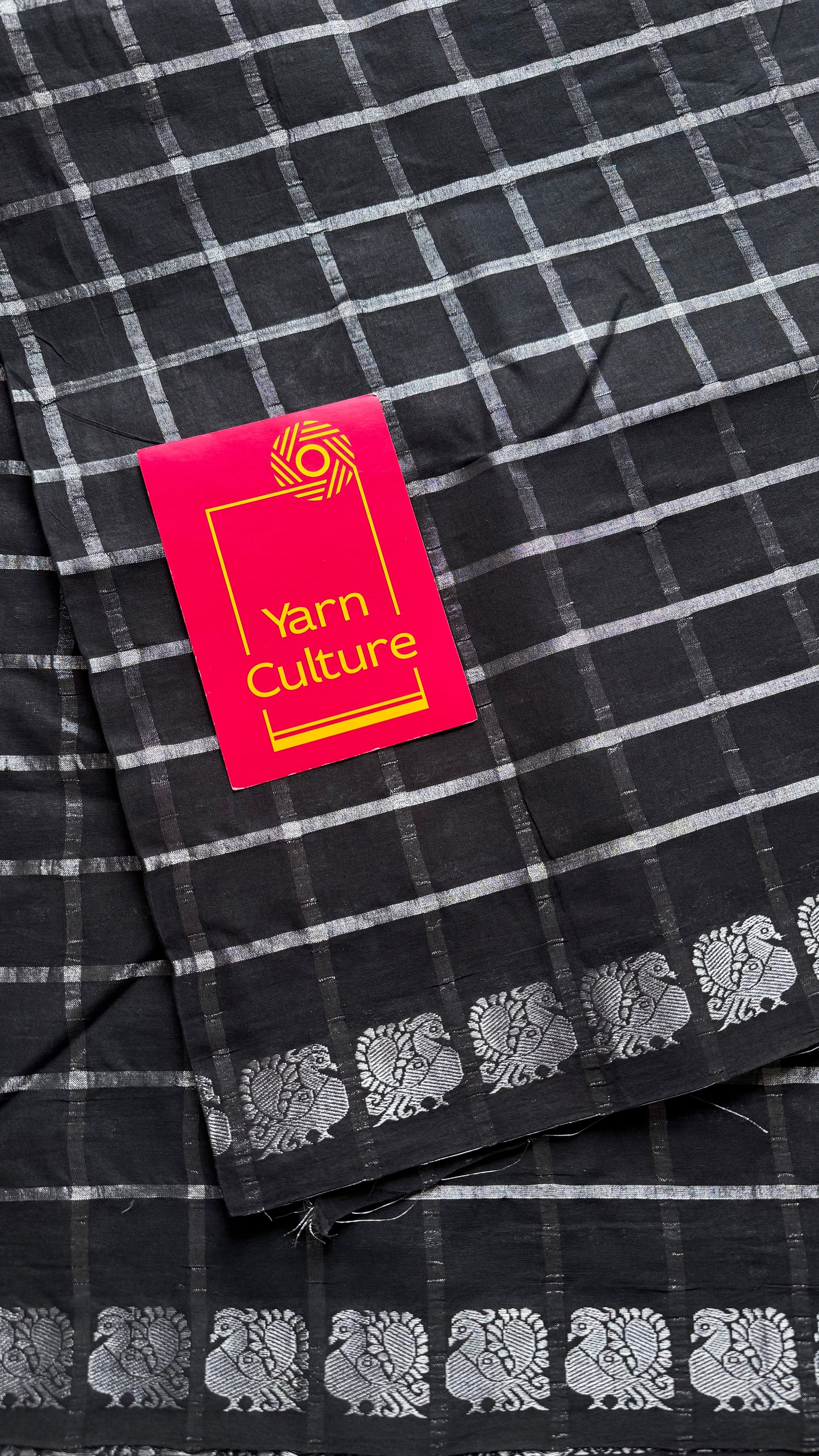 Black silver pavithra kattam sungudi, madurai cotton - YCCOTNSEMS13
