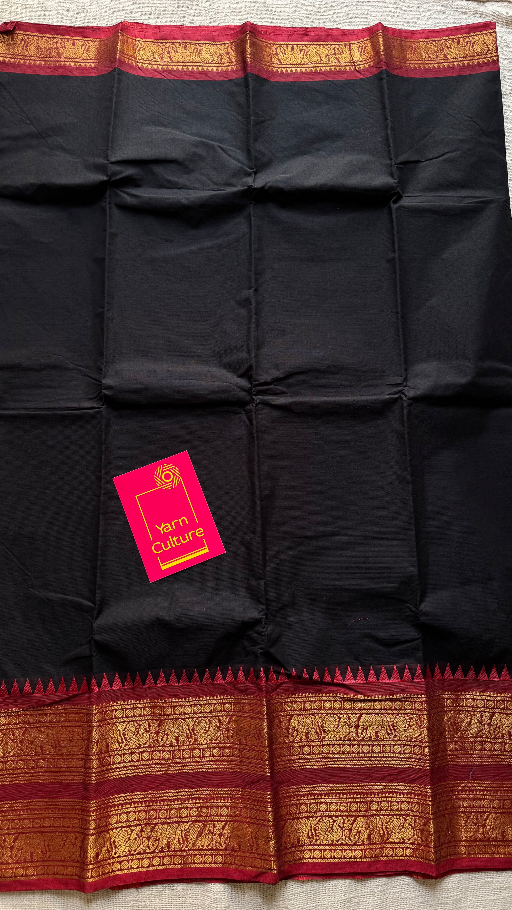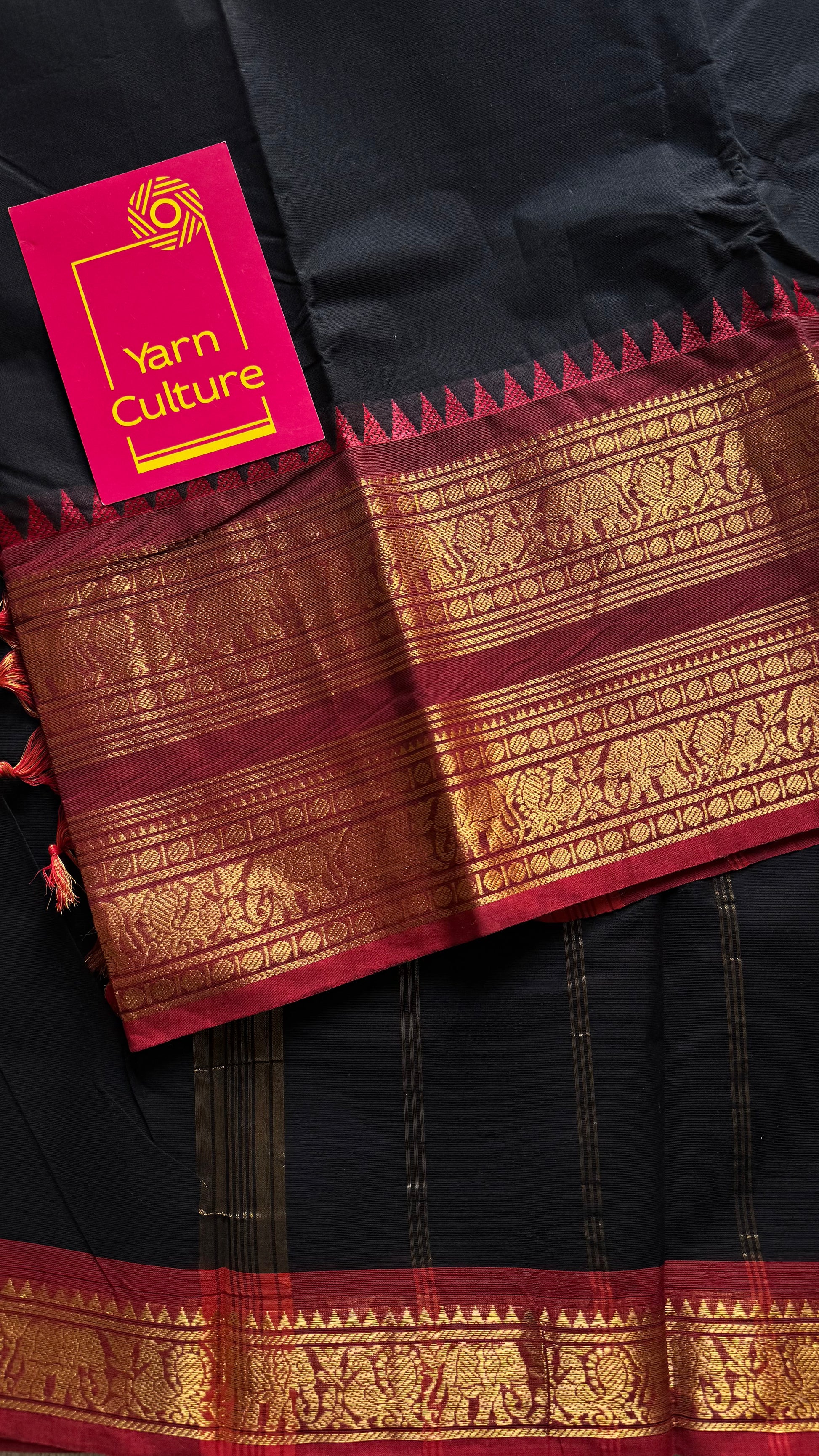 Black with dark red contrast, wide zari border, kanchi cotton - YCCOTNKCJA213