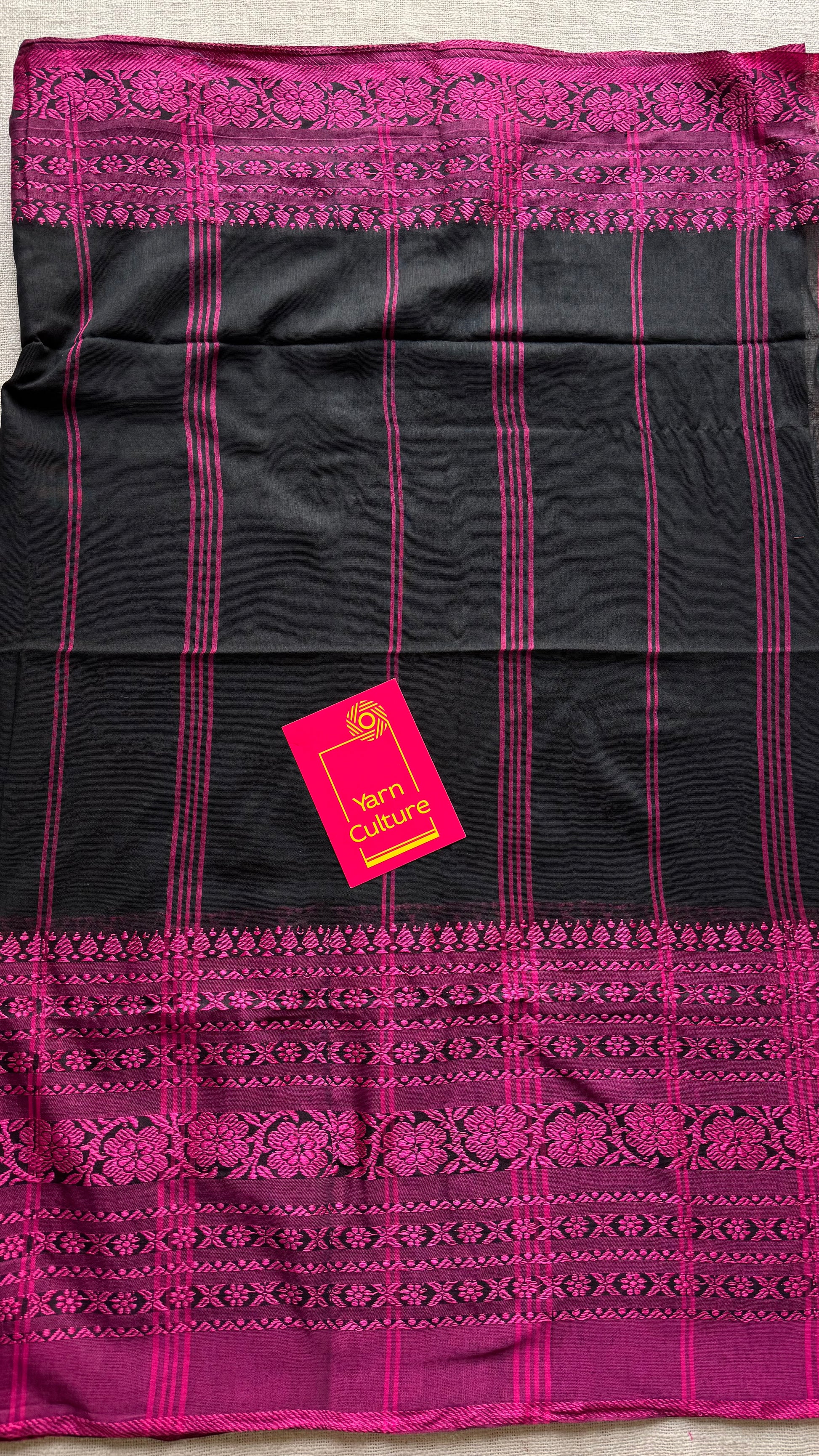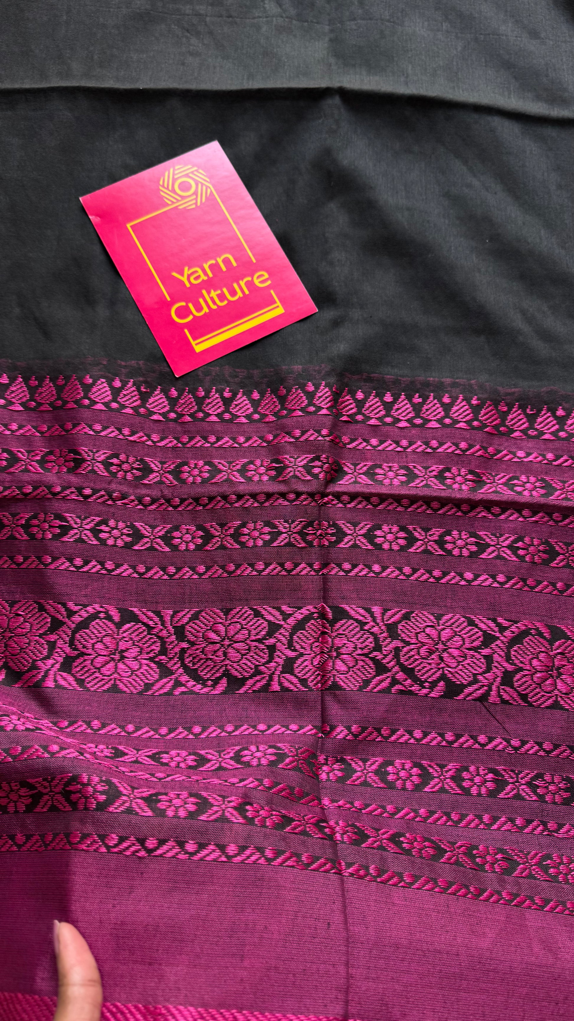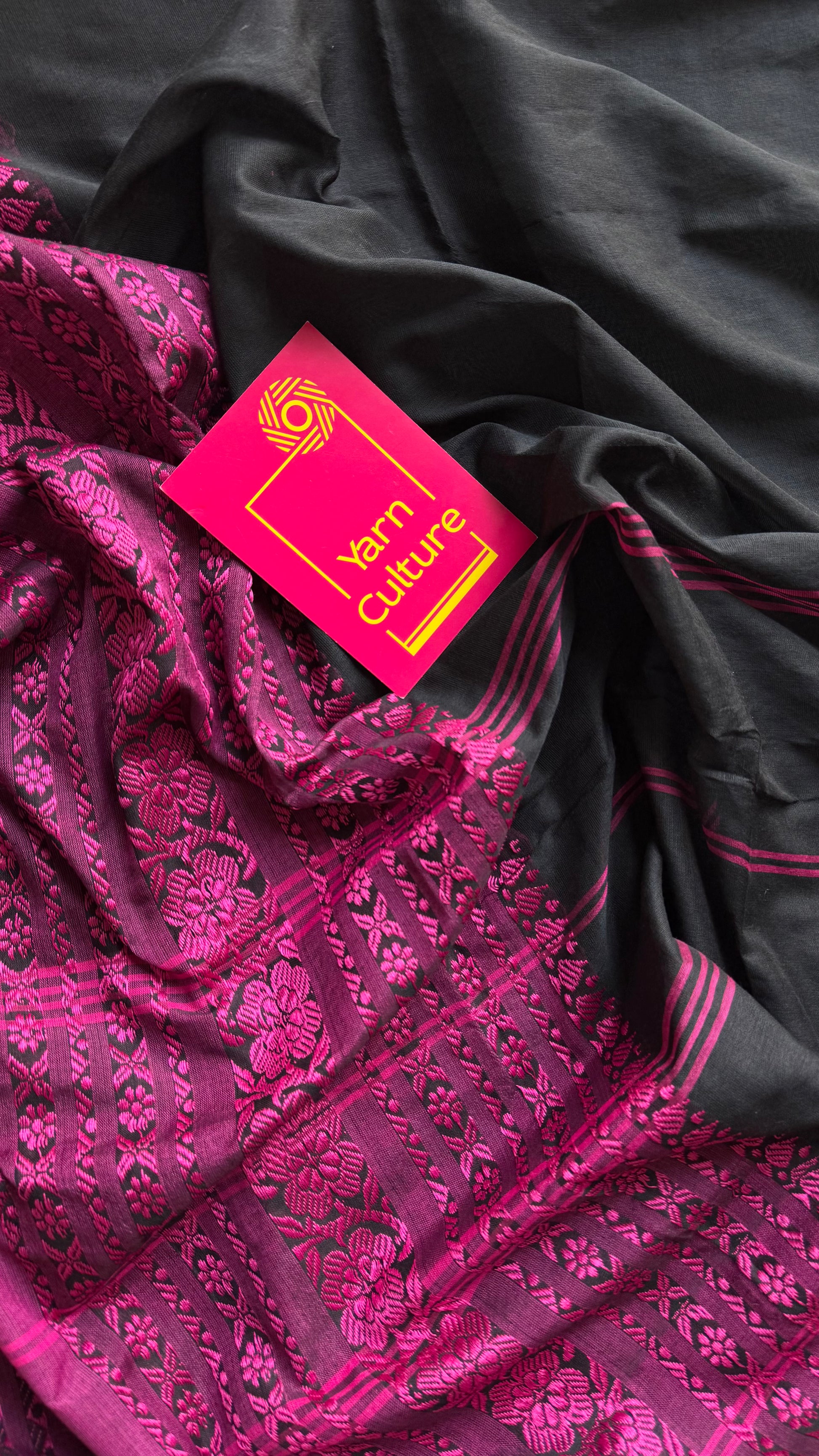 Black with magenta threadwork, begampuri soft cotton. Soft, easy to drape.
