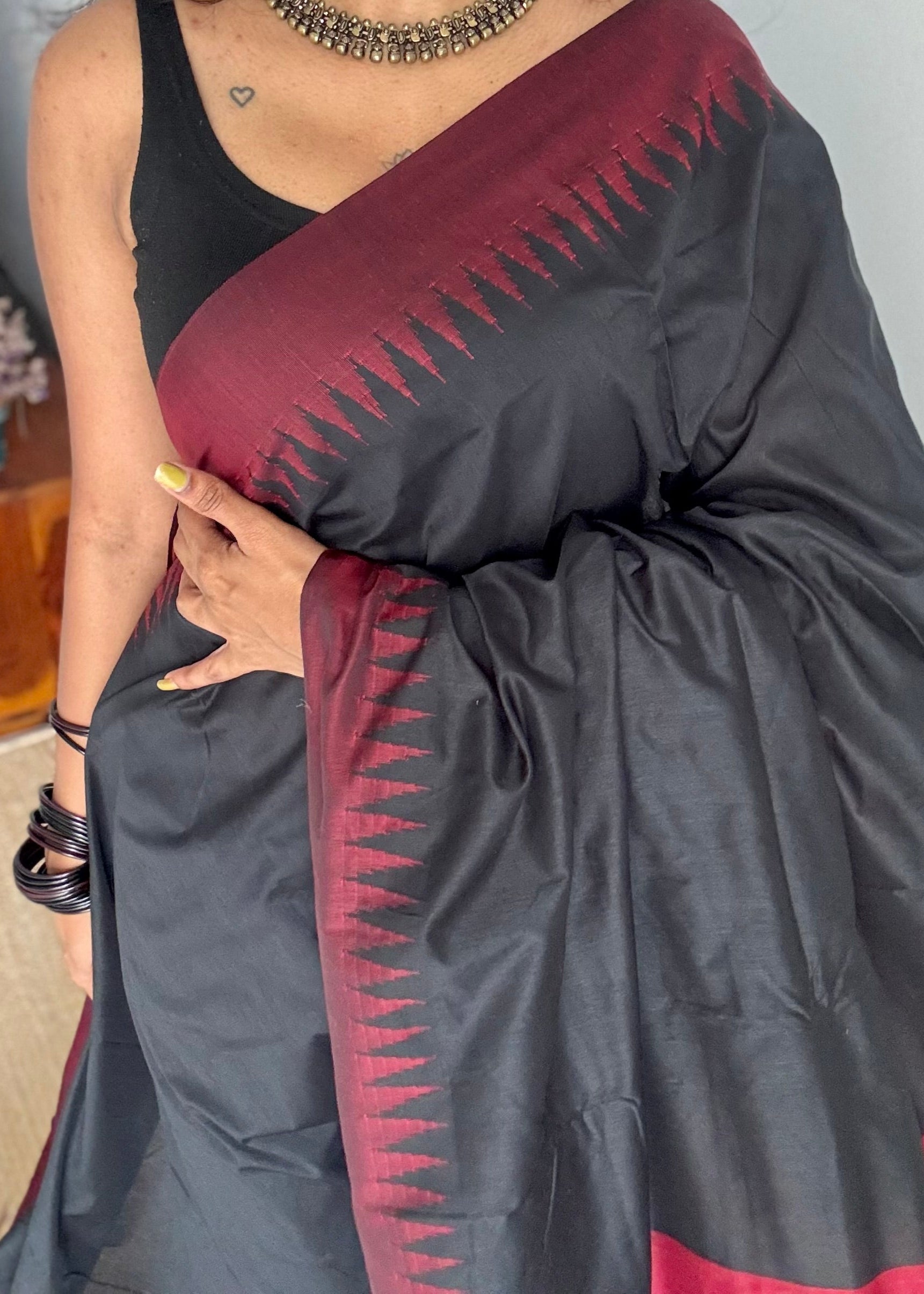 Black with maroon temple border - cotton silk - YCCOTNSEKCS16