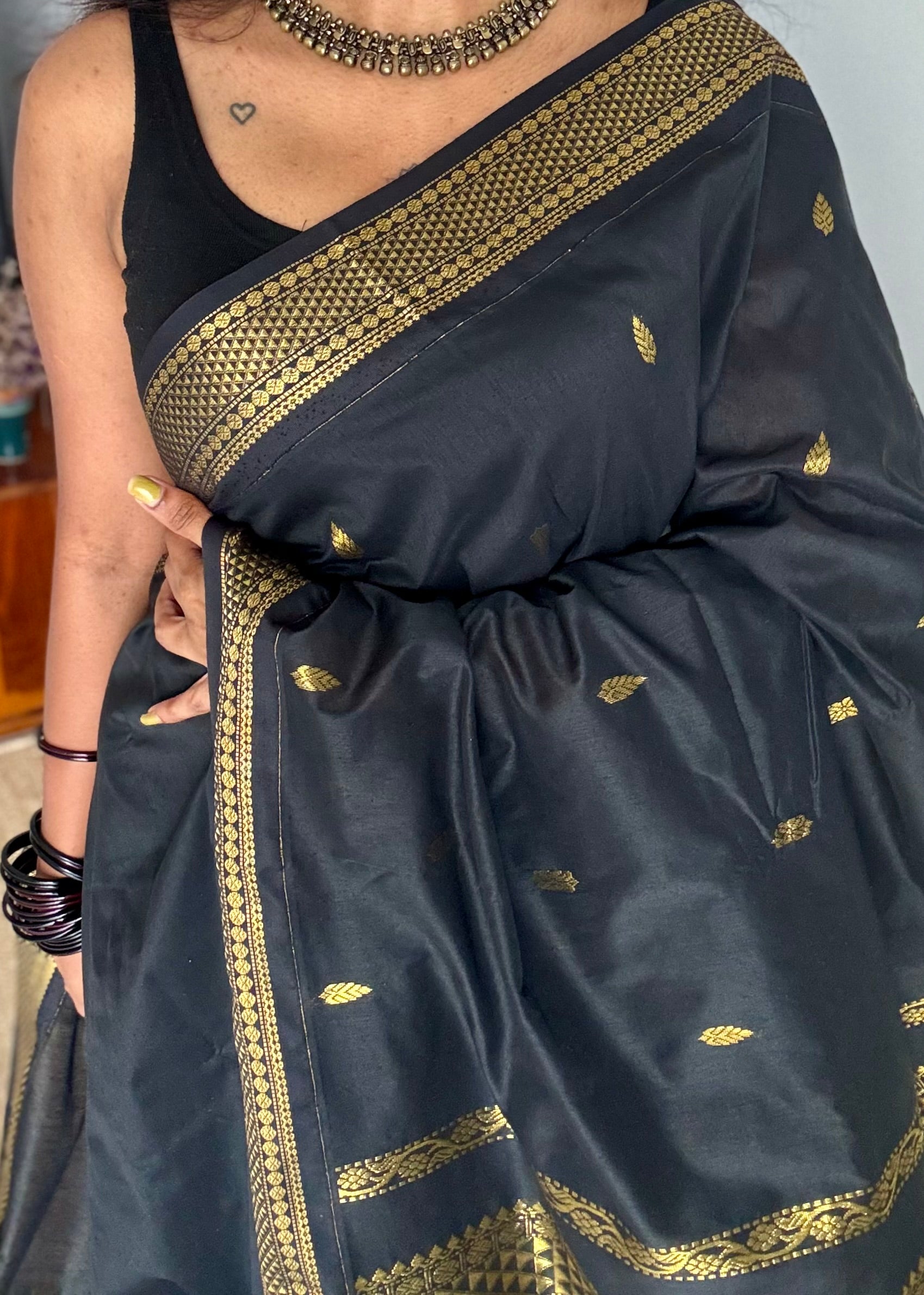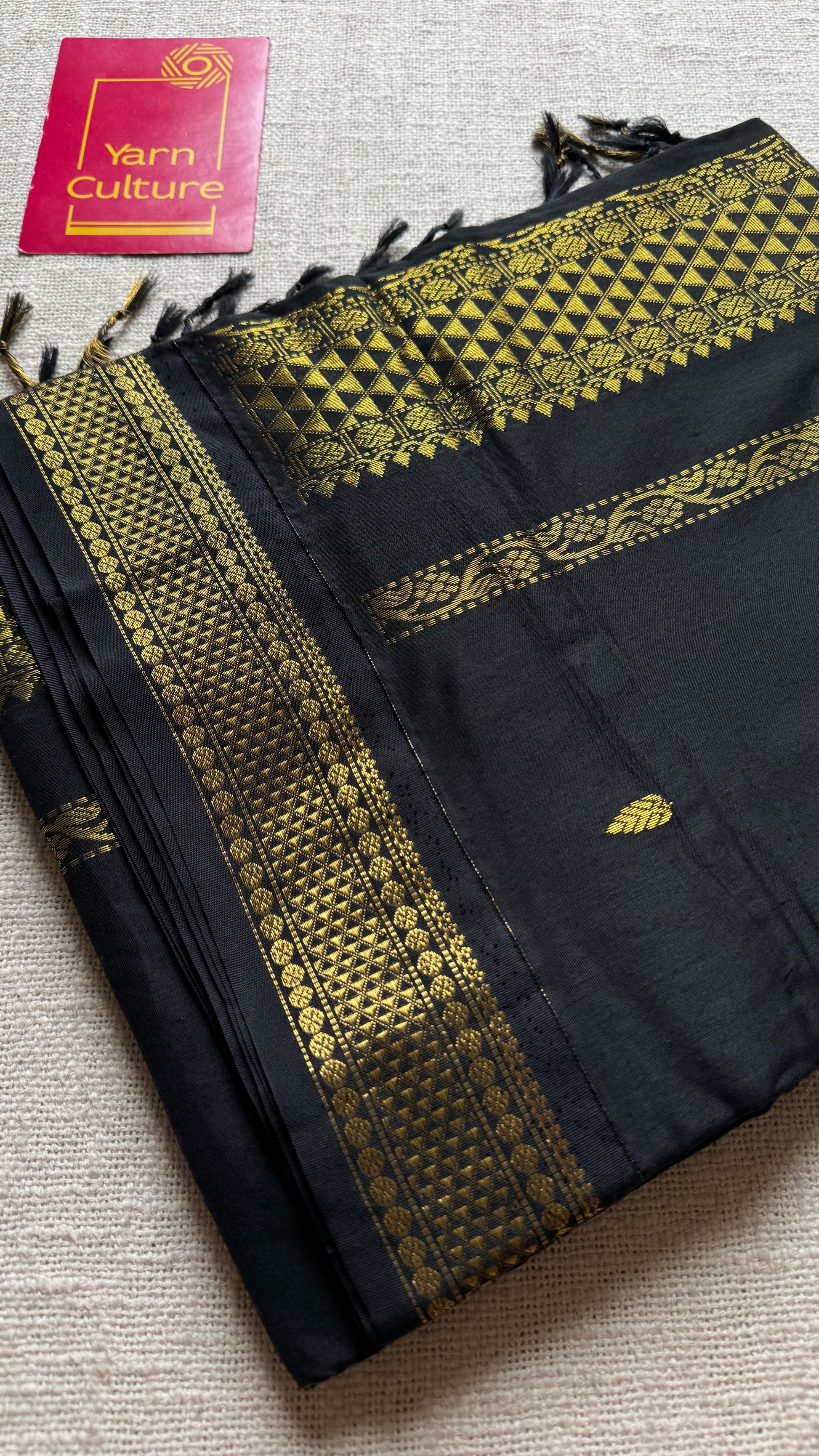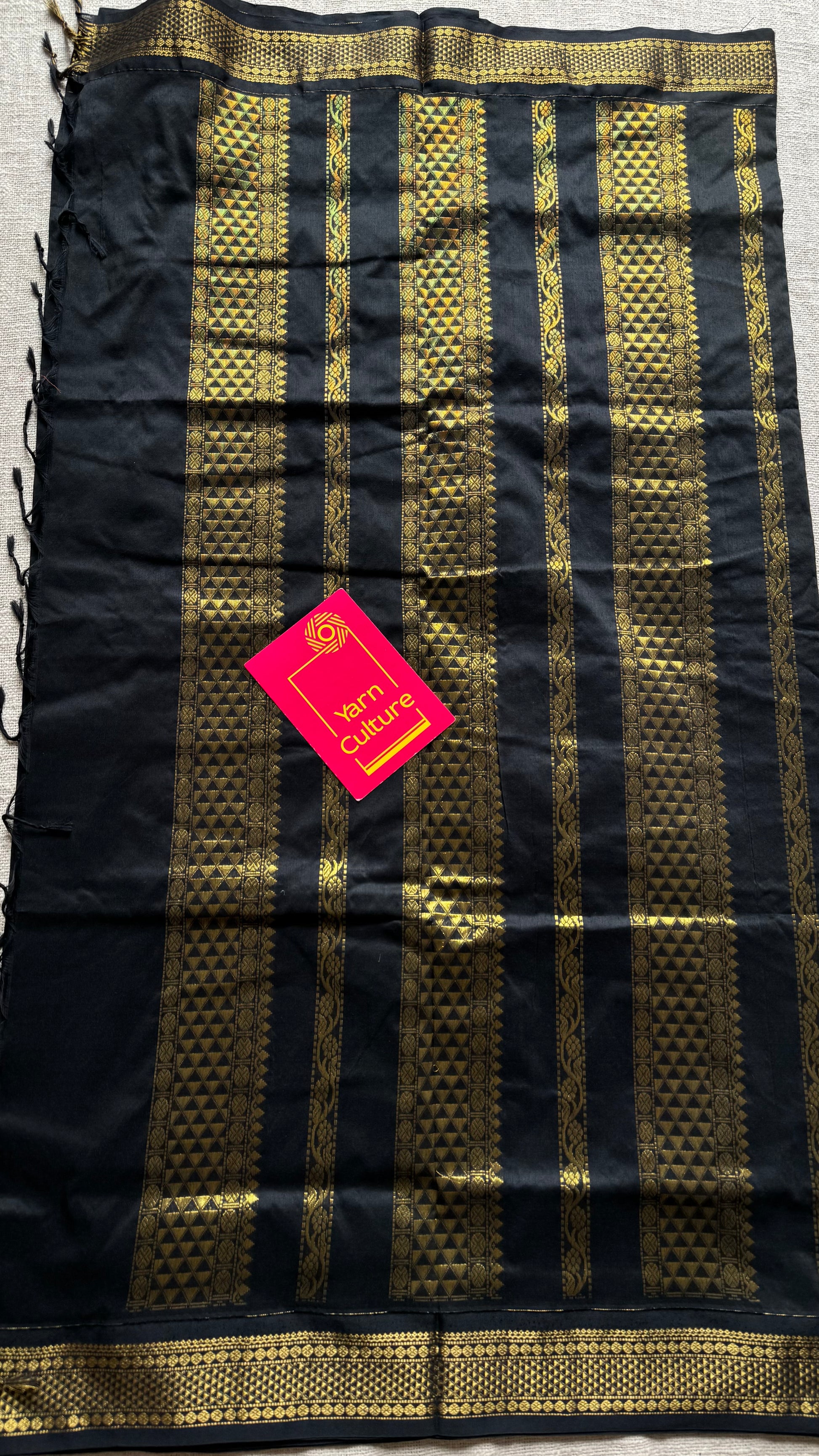 Black with motif border - cotton silk - YCCOTNSEKCS18