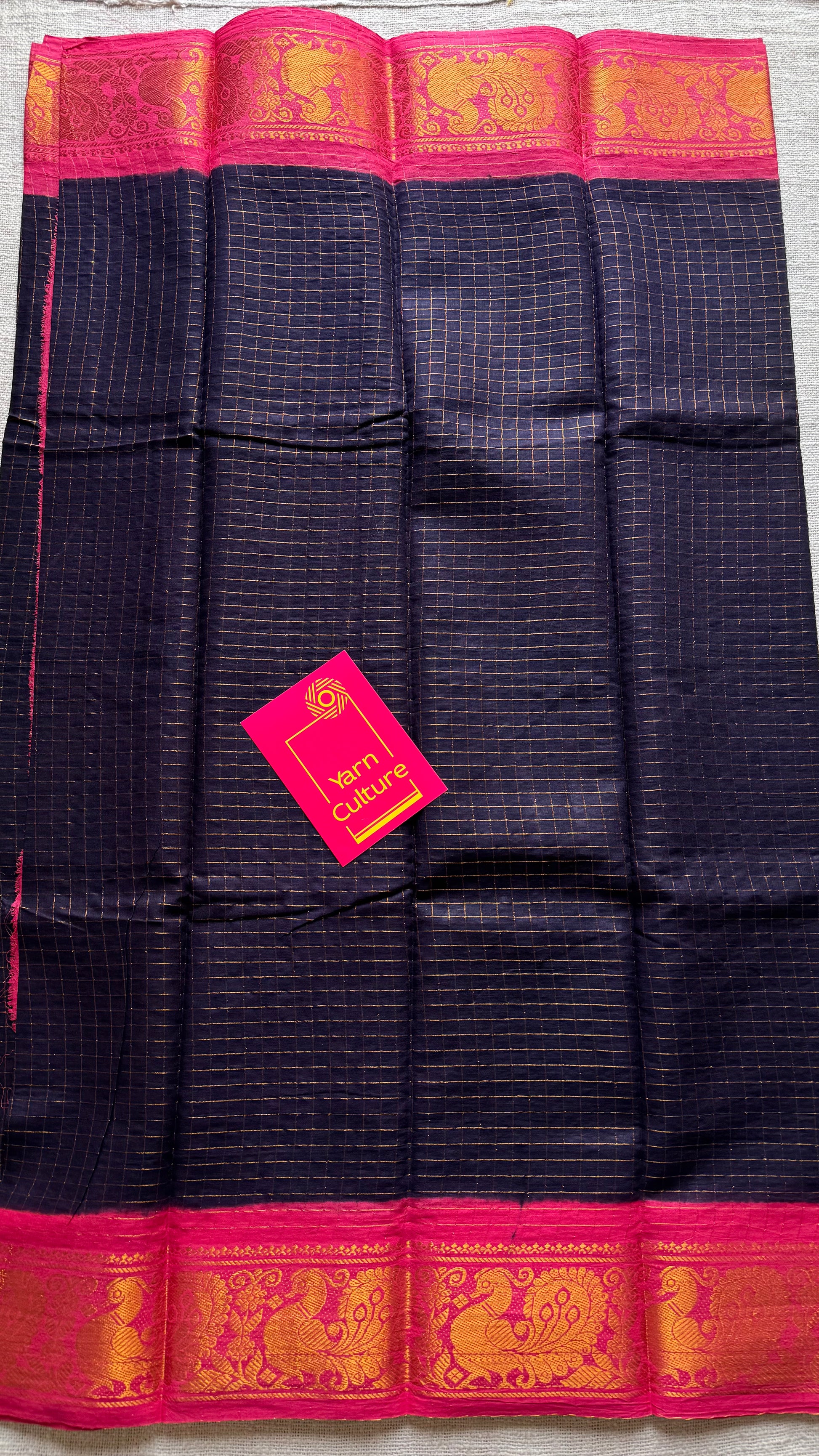 Black with pinkish red checkered sungudi, madurai cotton - YCCOTNOCSC23