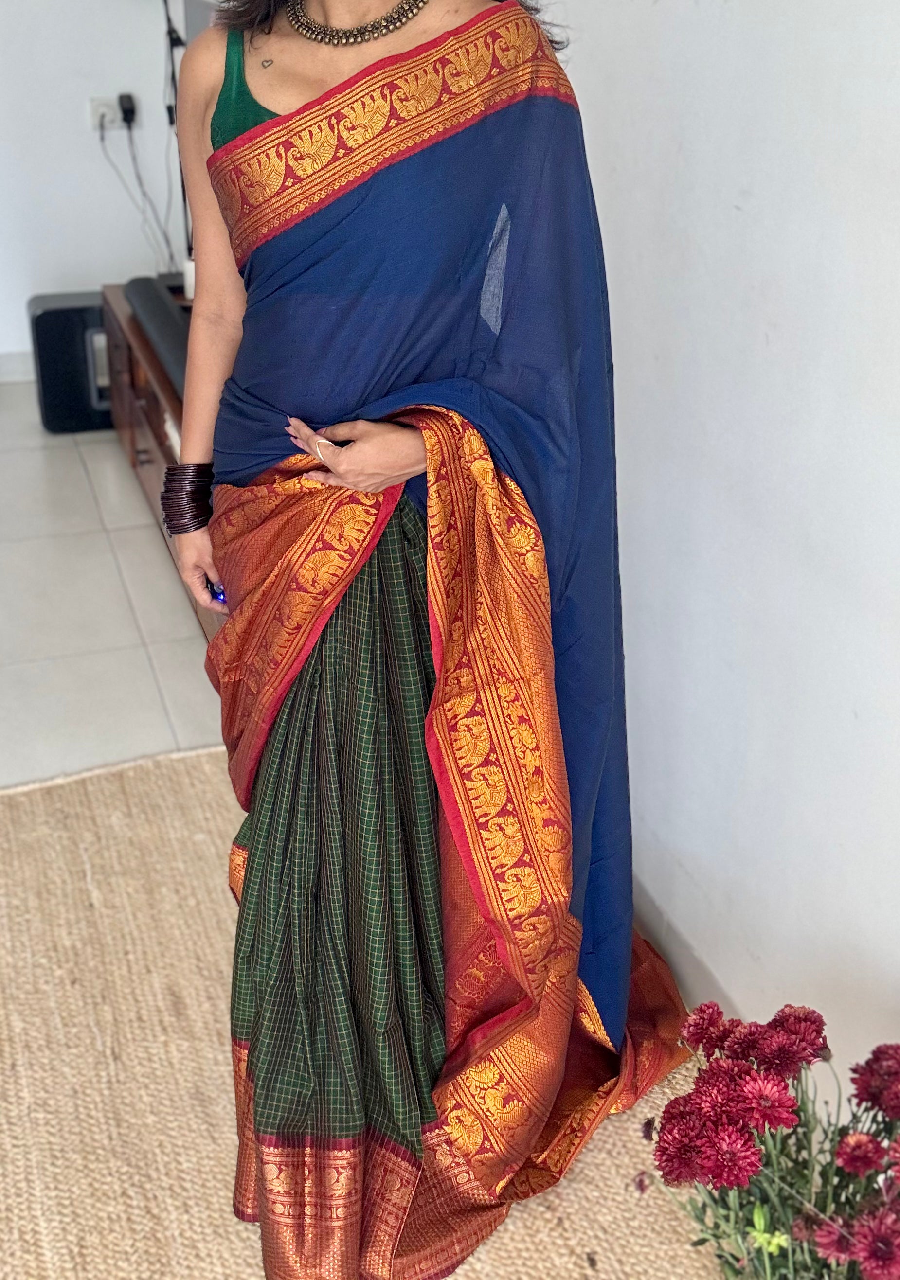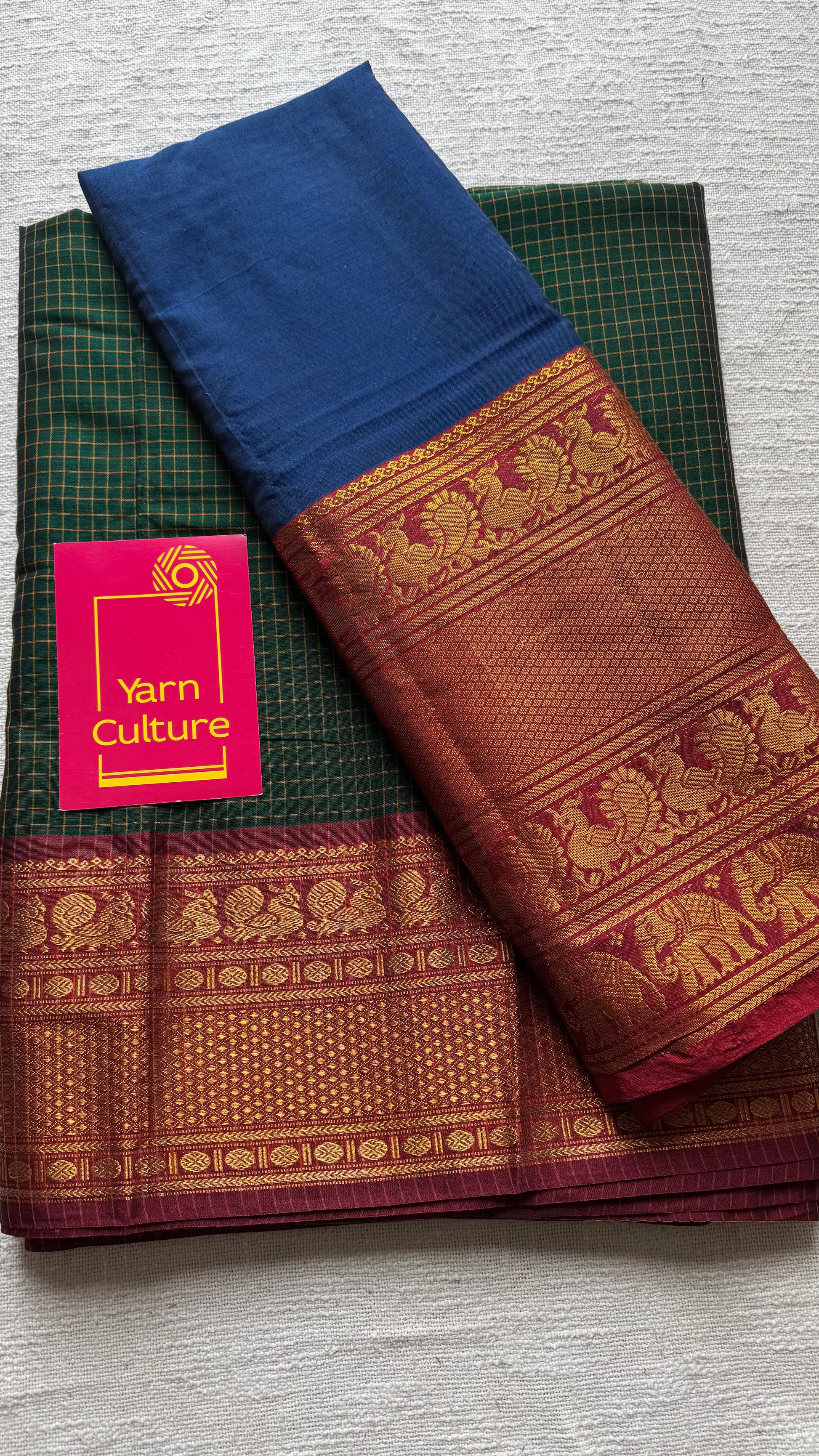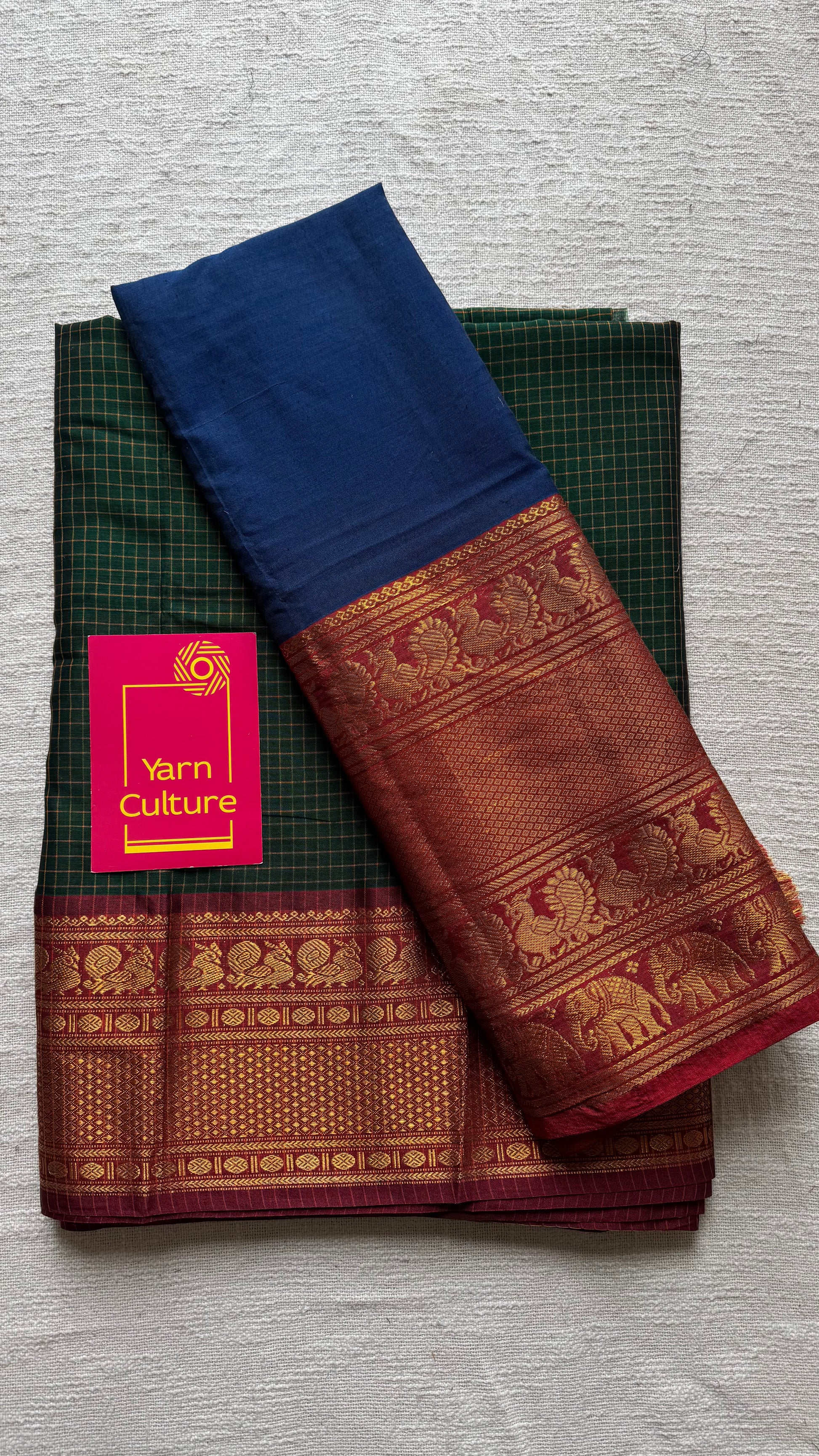 Blue - Green Checks half saree (dhavani), unstitched material, soft cotton - YCAHSN21
