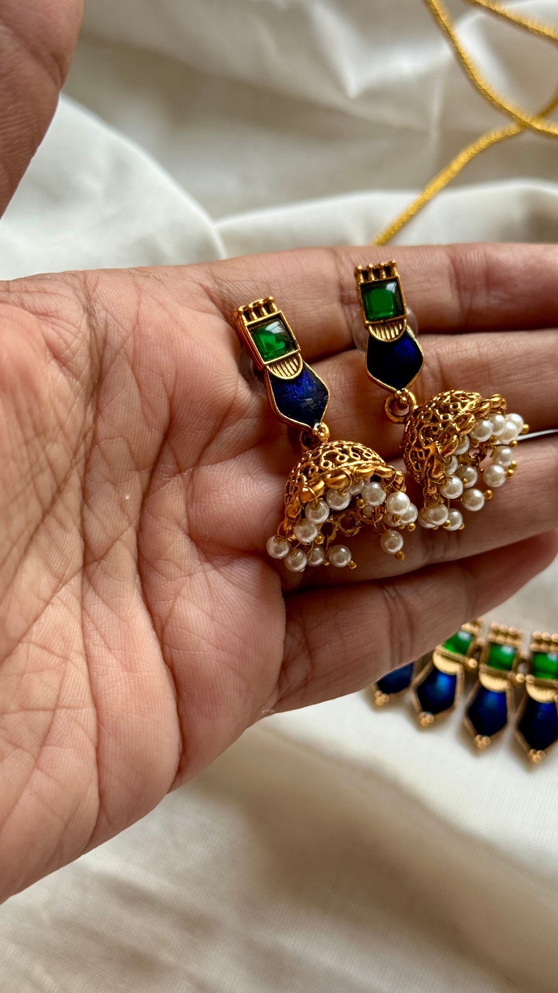 Blue nagapadam neckpiece, with earrings - YCGPNP614