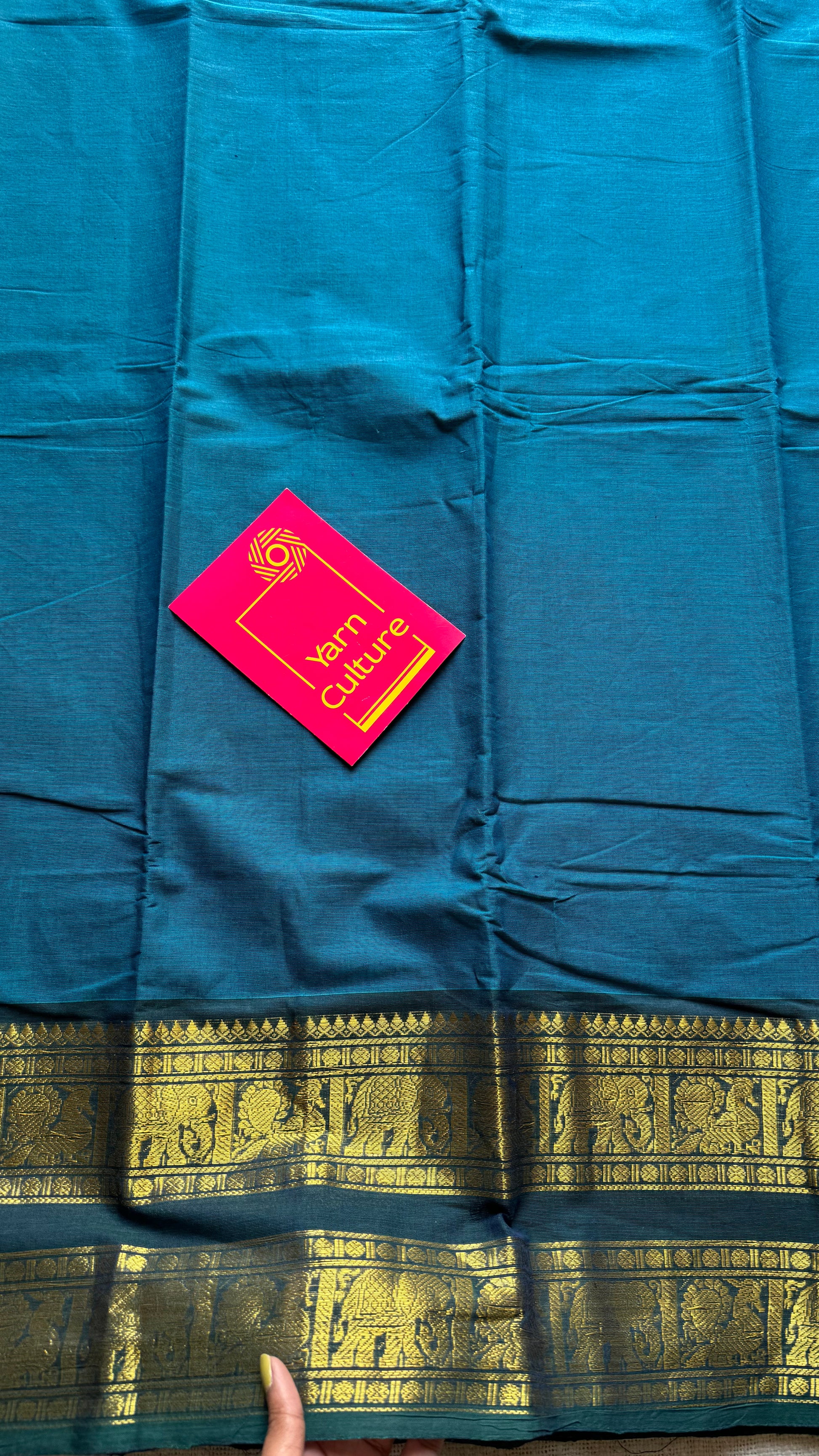 Blue with green wide contrast border, kanchi cotton - YCCOTNKCDE83