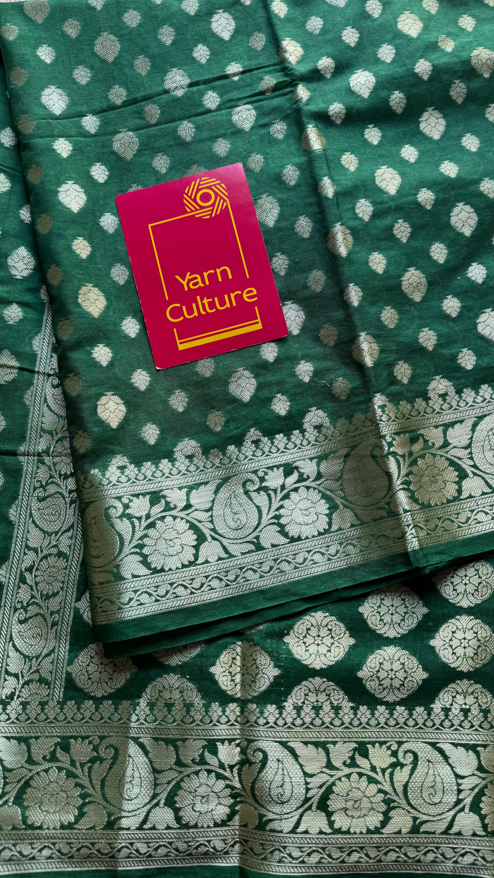 Bottle green, silver buttas and zari, Banarasi semi-silk - YCDESE40