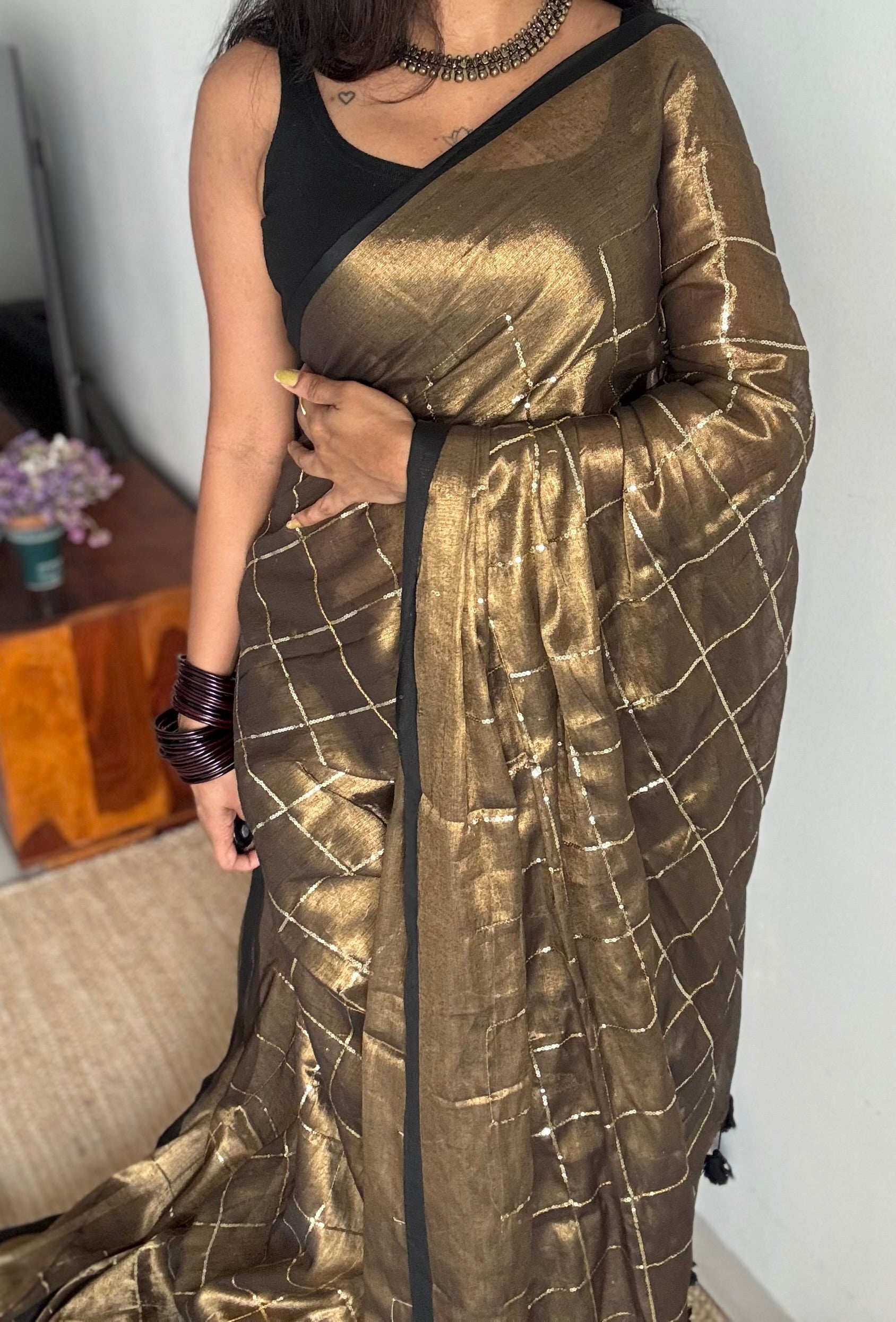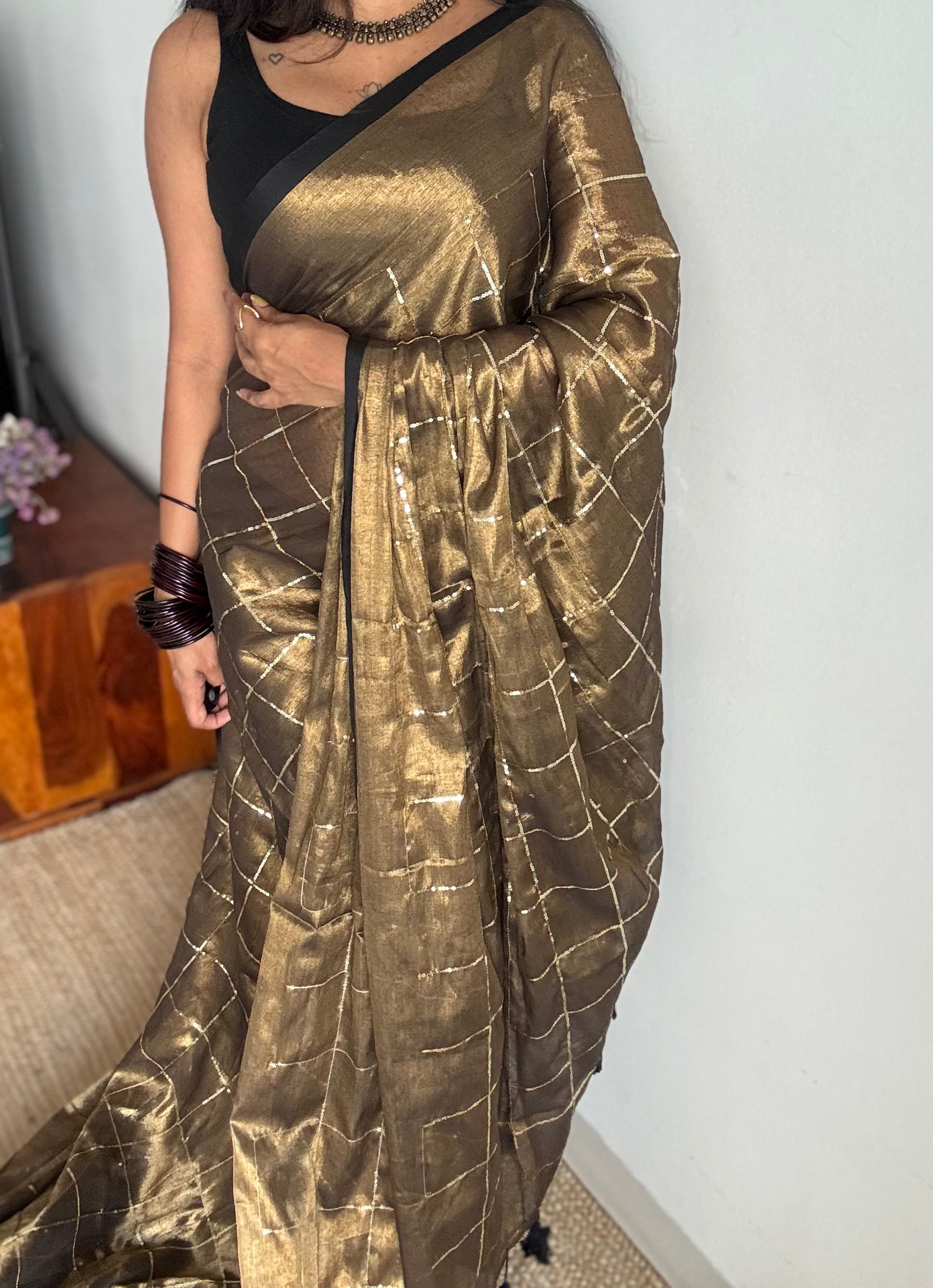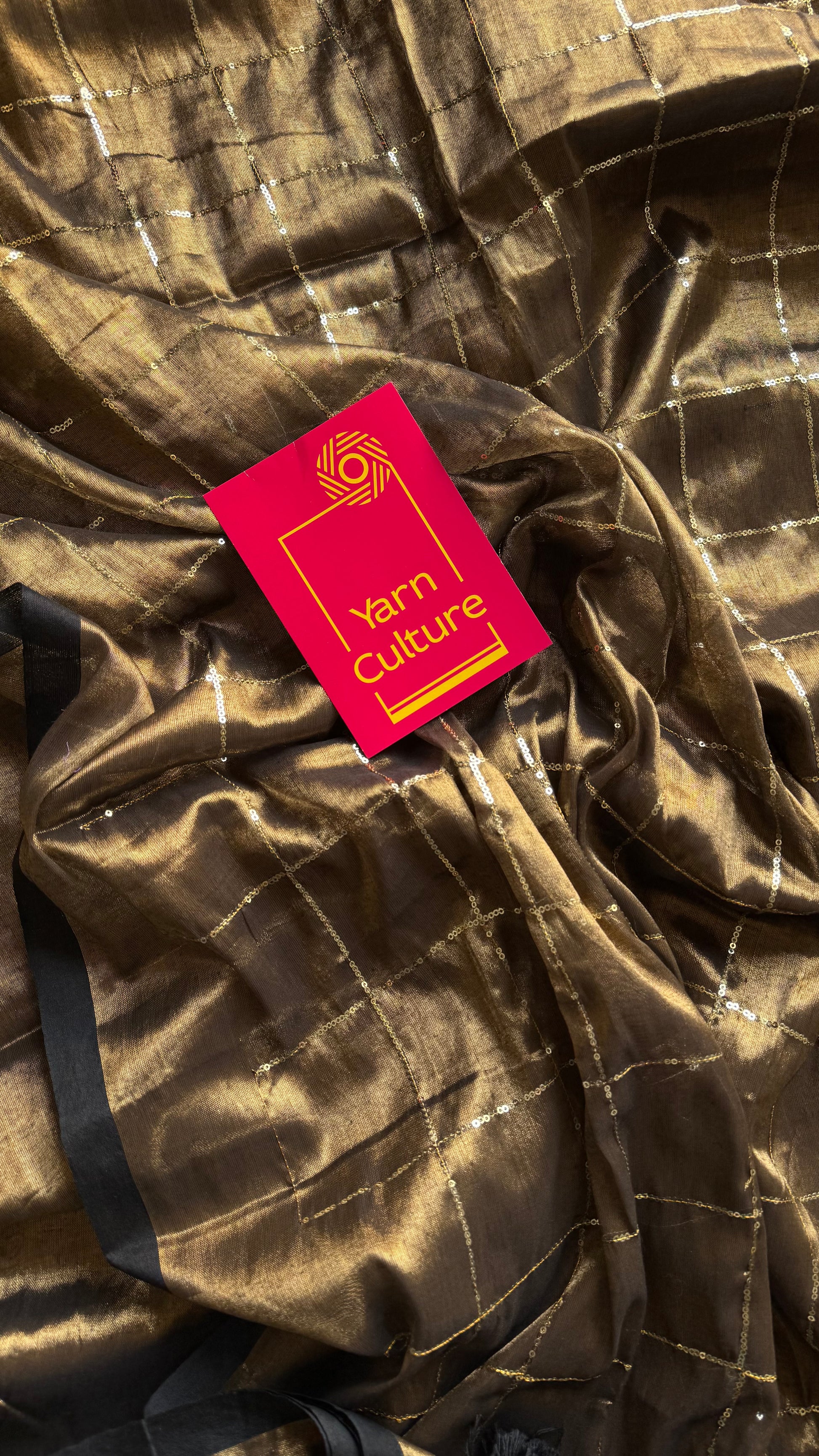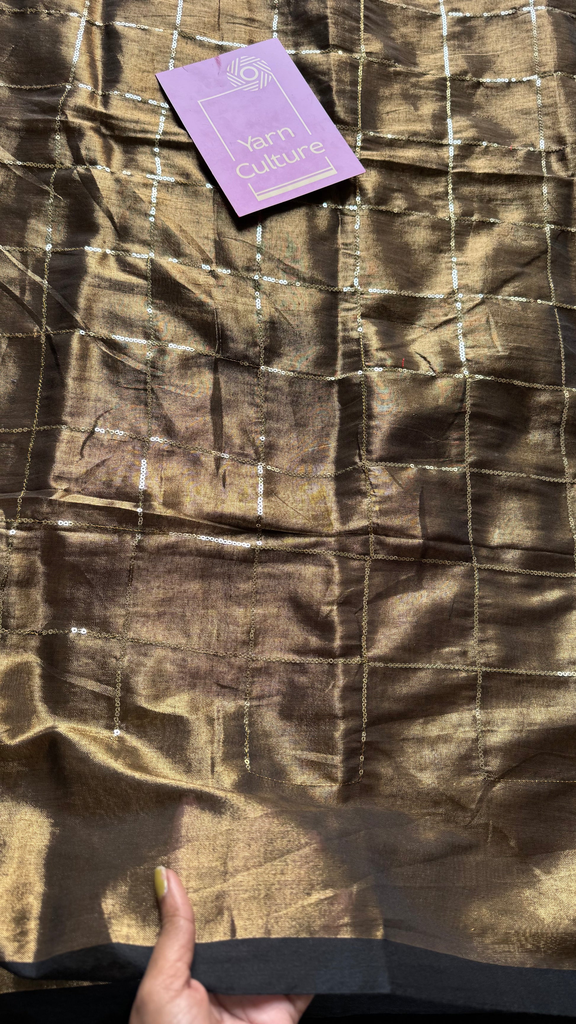 Bronze with black border, checkered sequins work, mul tissue - YCBCMCJA08