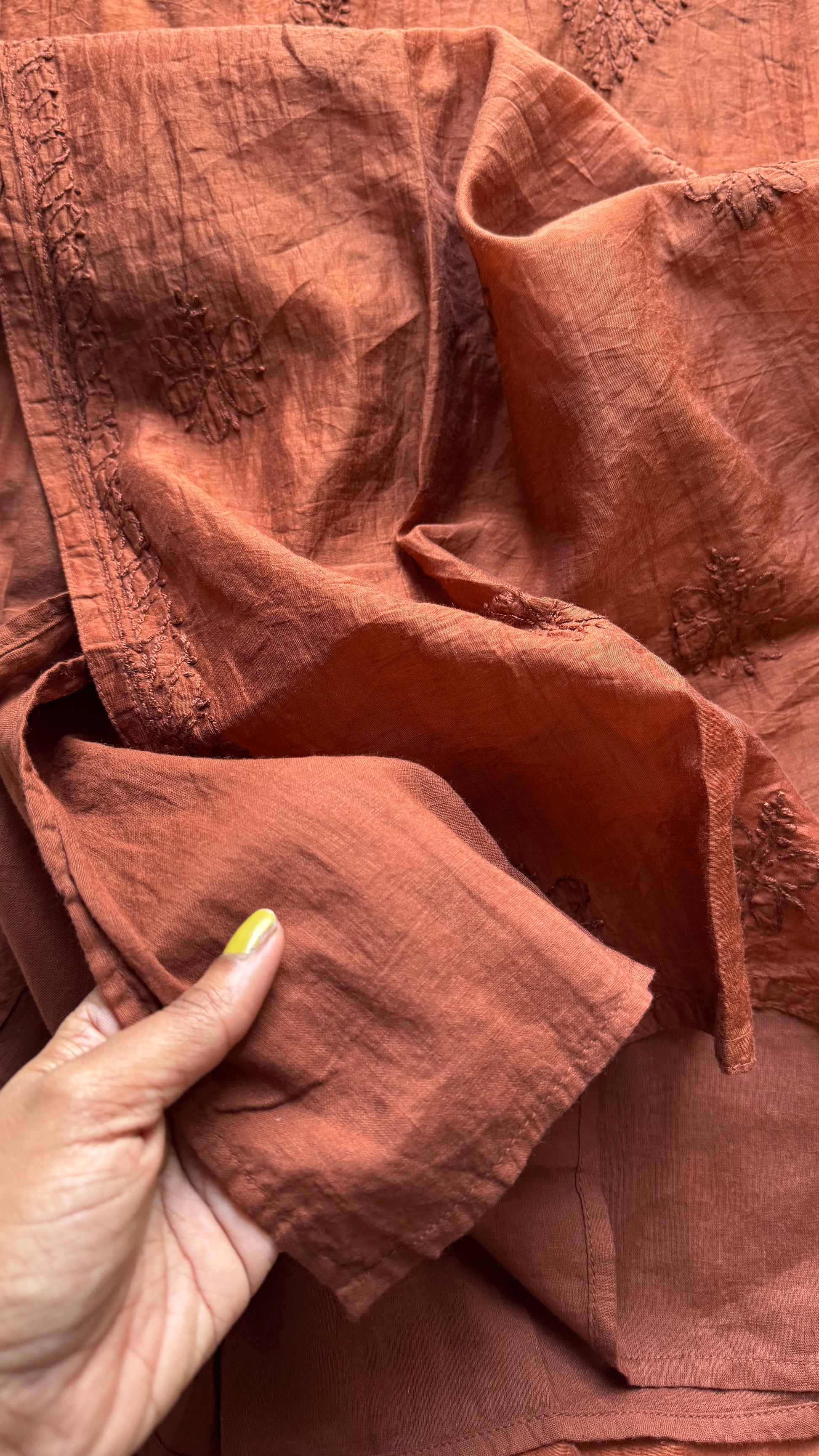 Separate Colors: To avoid color bleeding, wash your Chikankari clothes separately from other garments, especially if they are brightly colored.