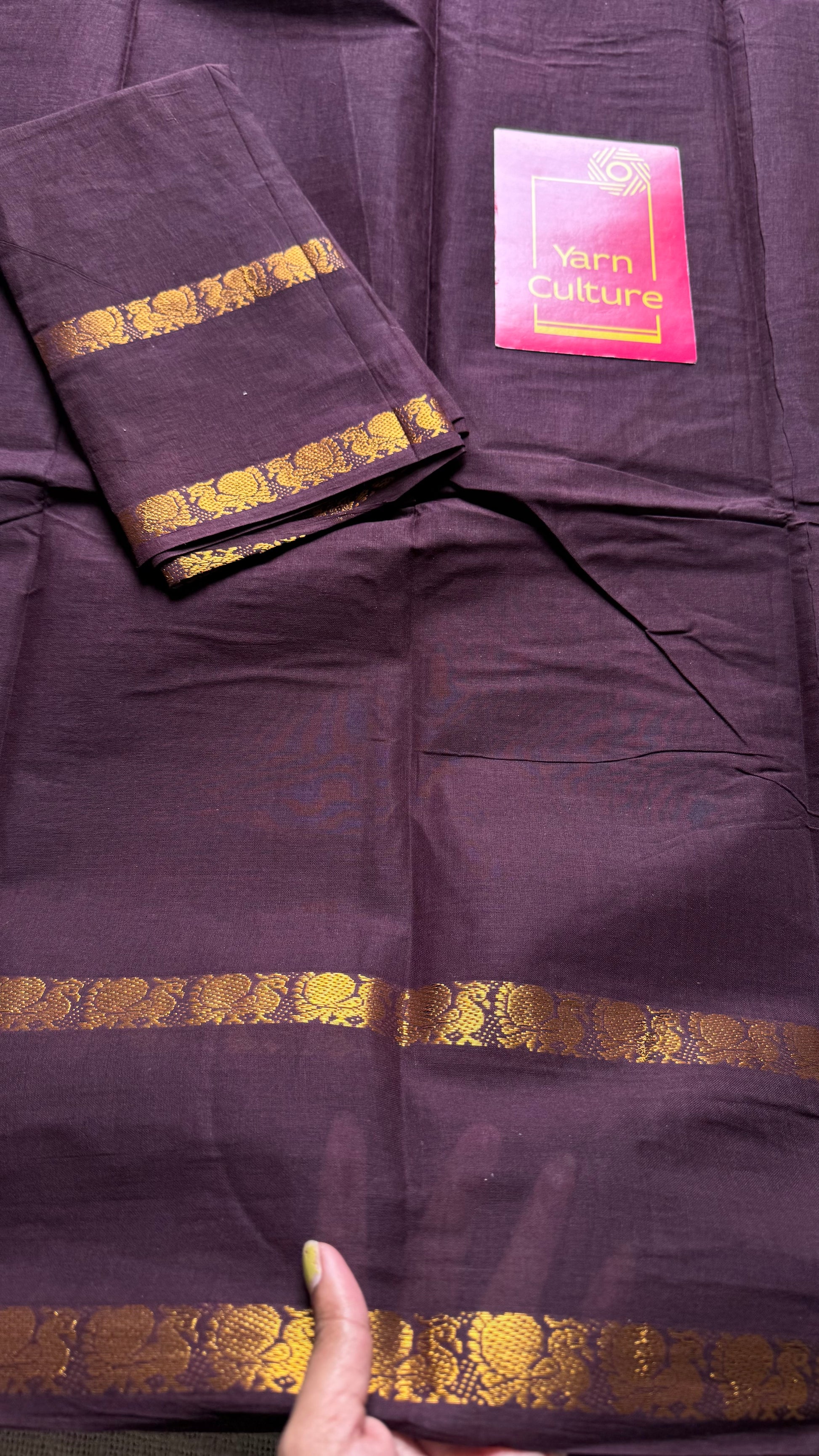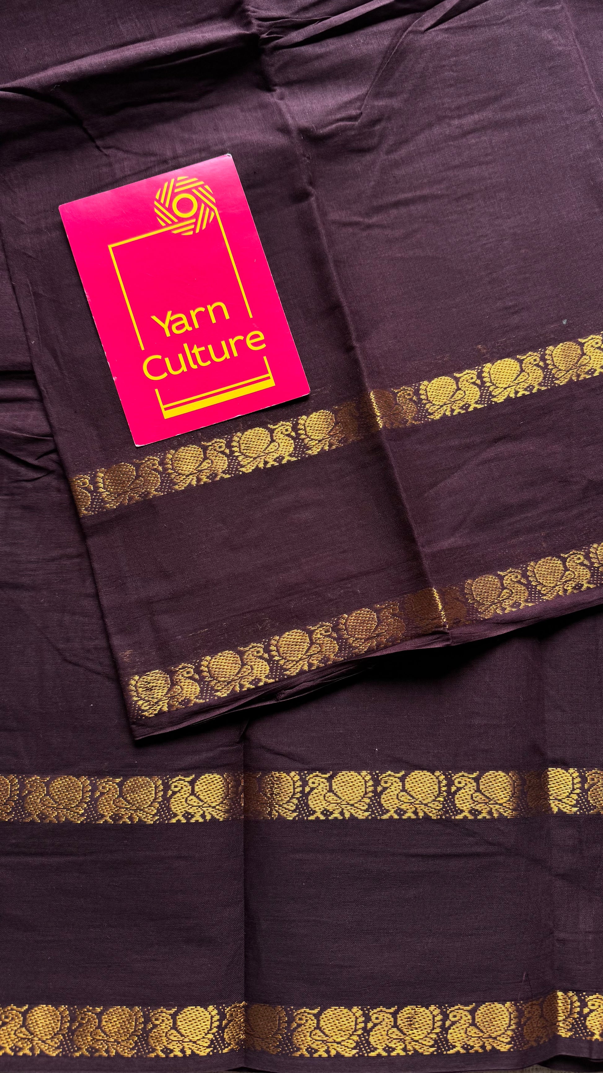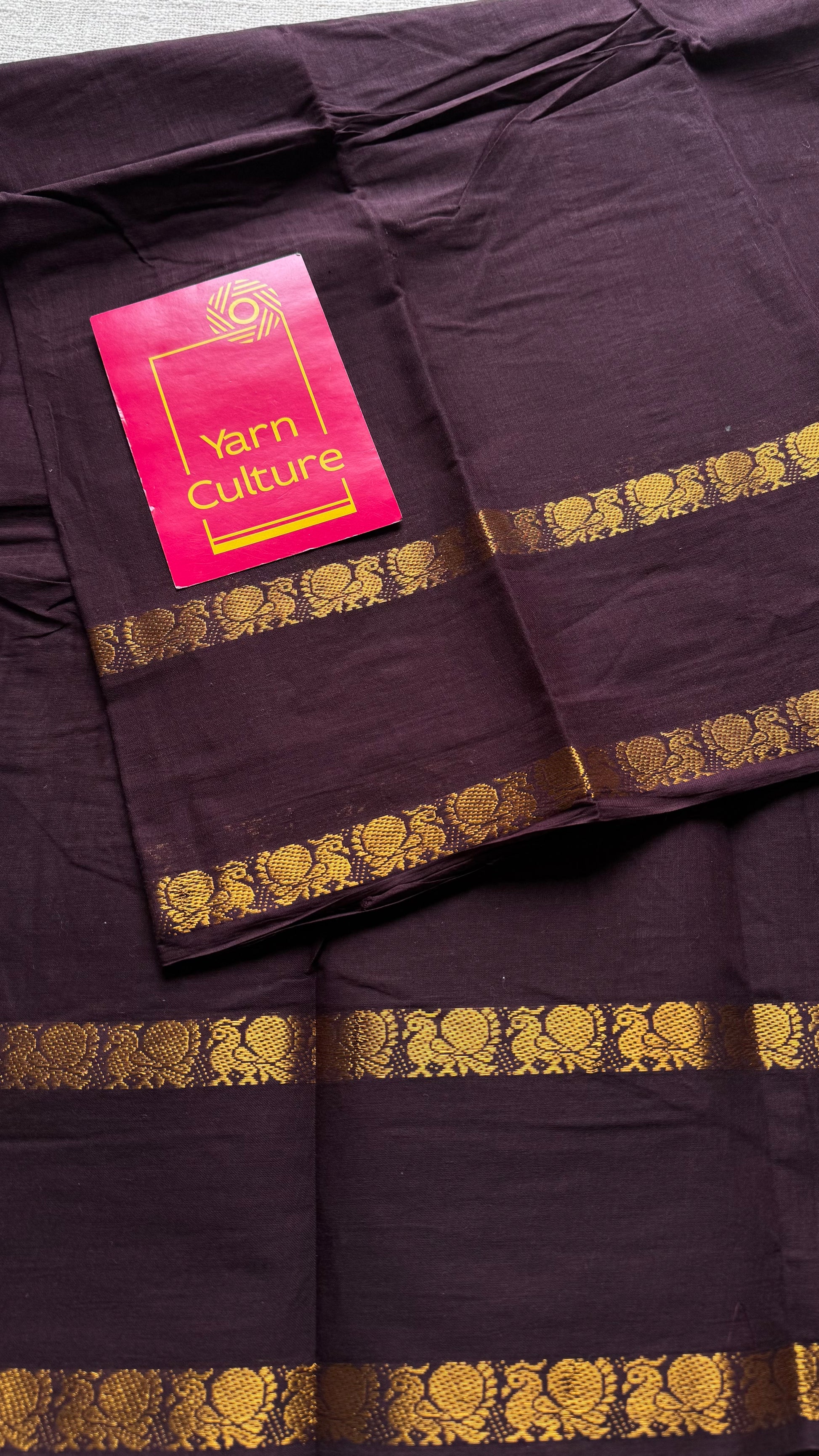 Brown rettaipettu peacock double border - madurai kattuchayam - YCCOTNSEMS36