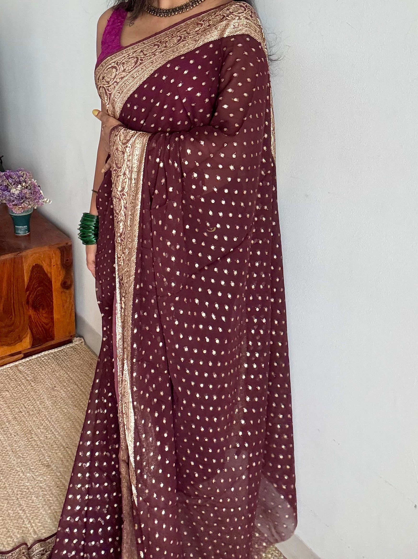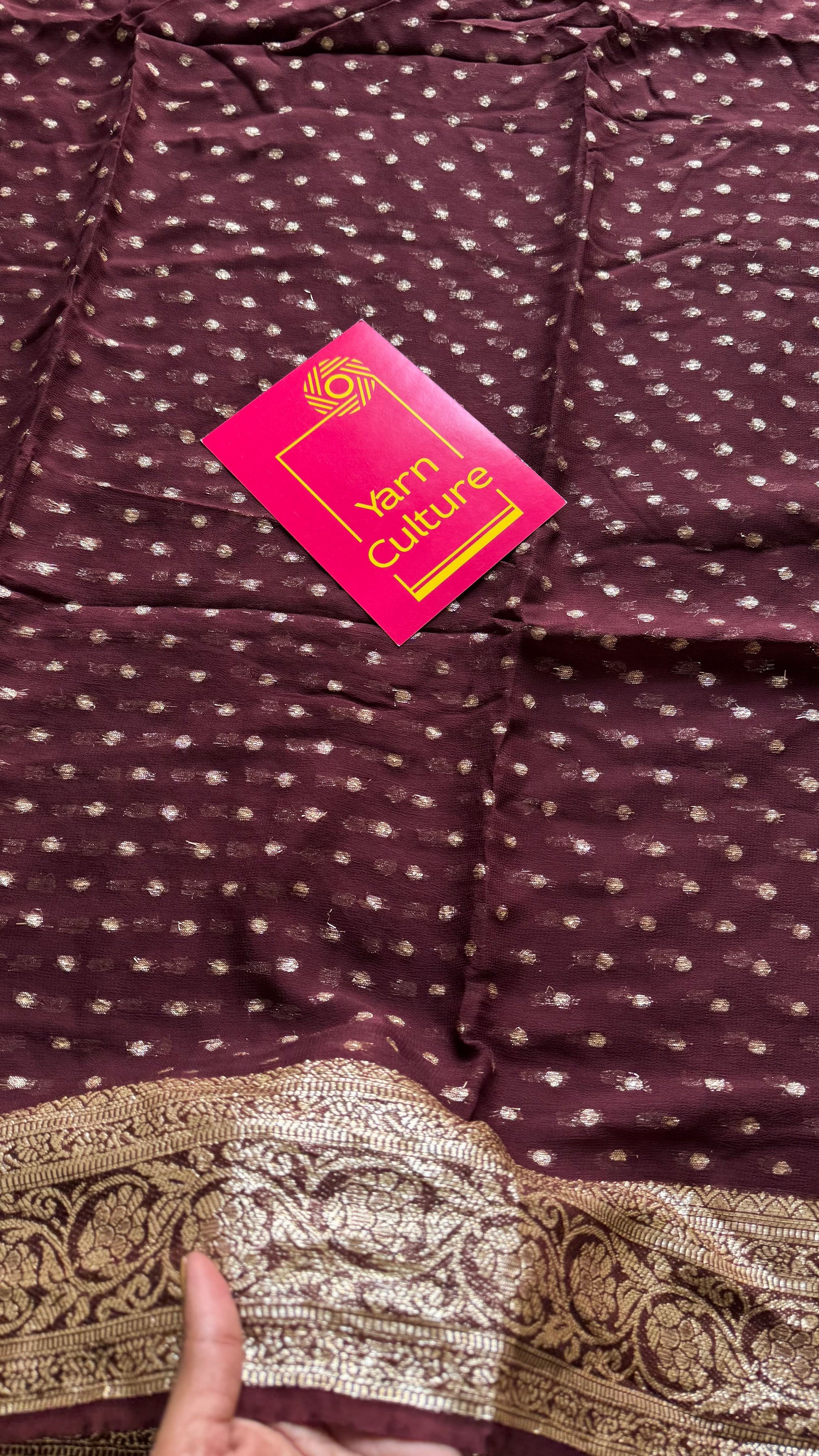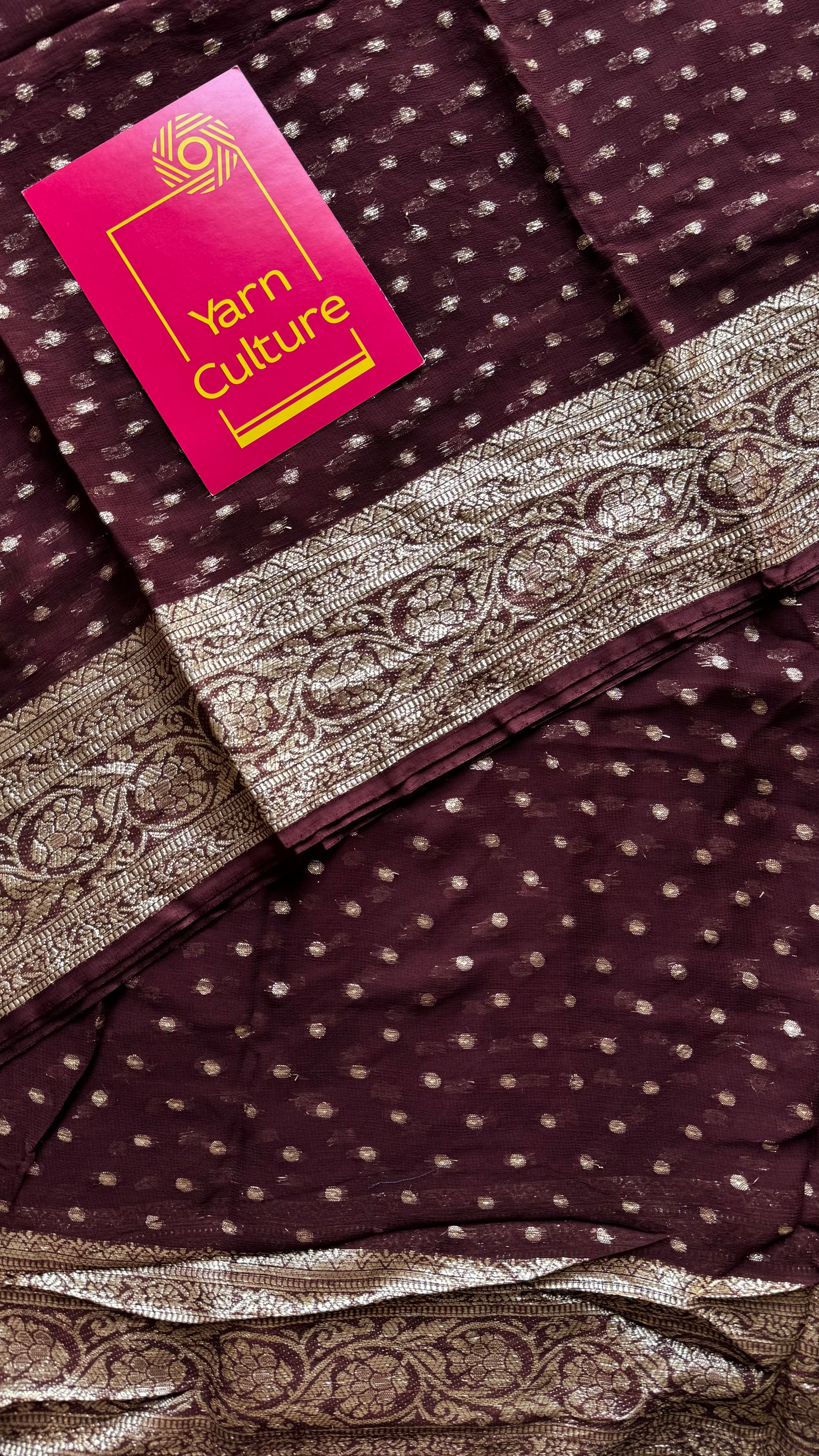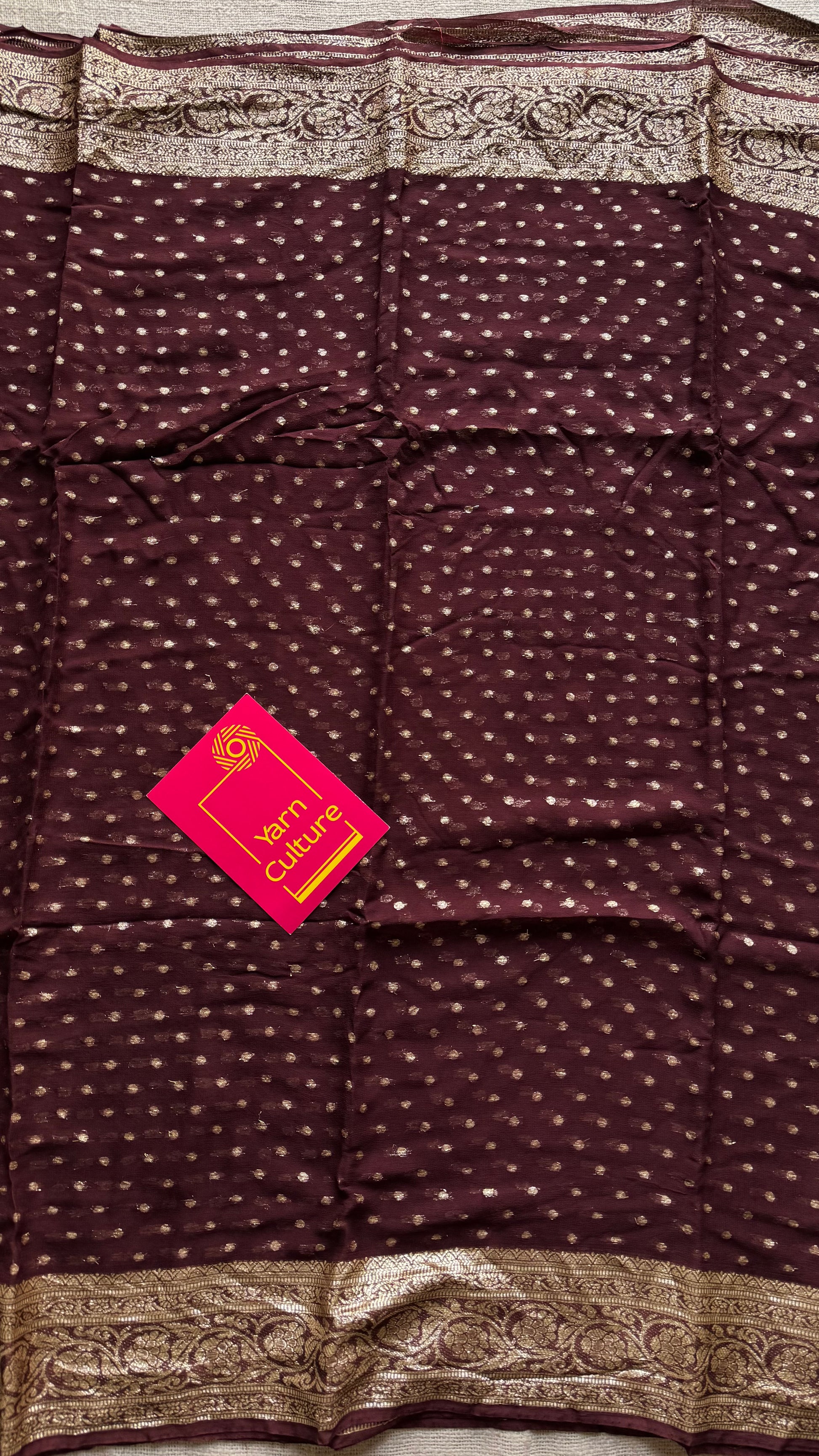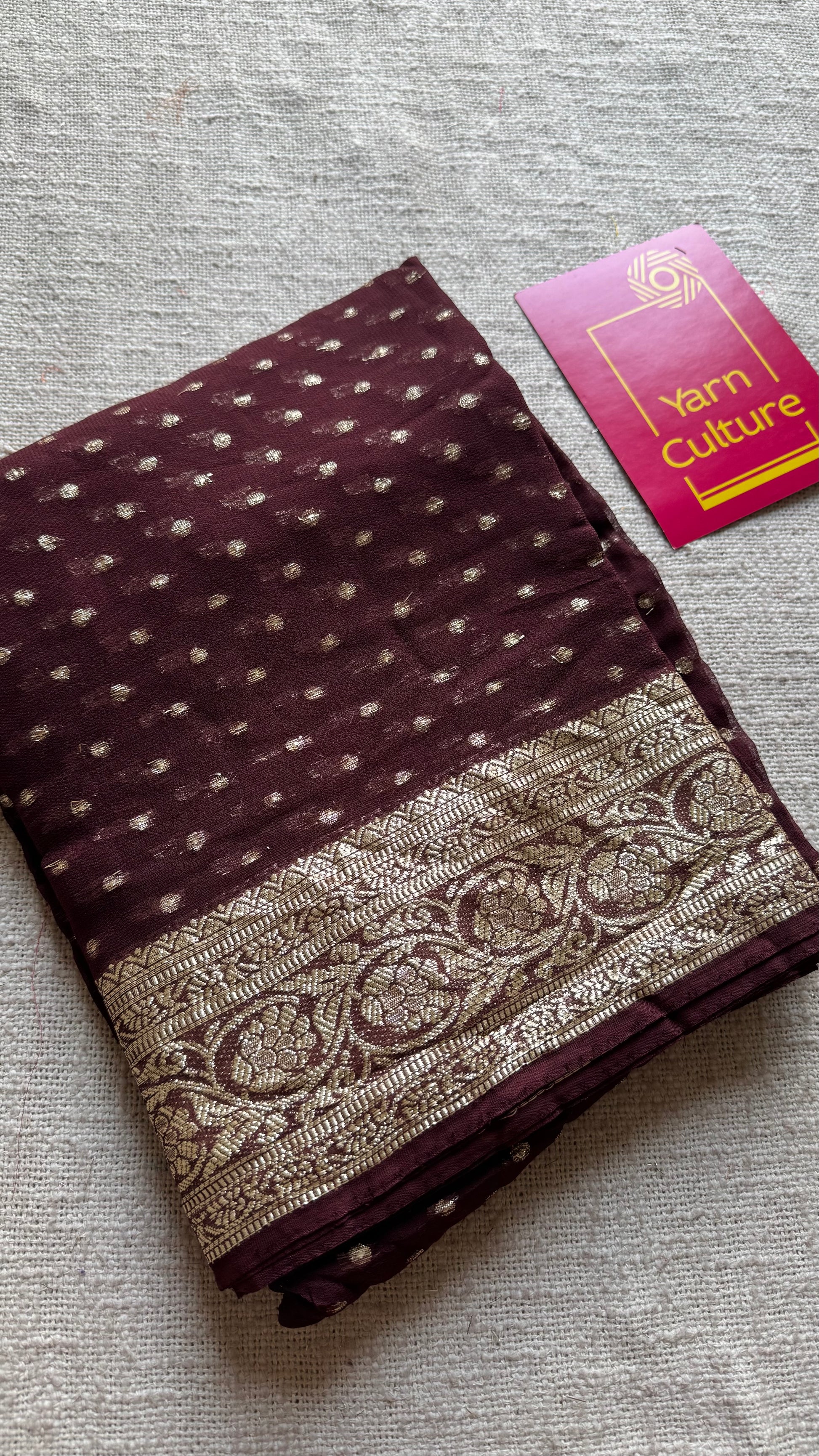 Brown viscose georgette saree with zari motifs - YCDOSFE207
