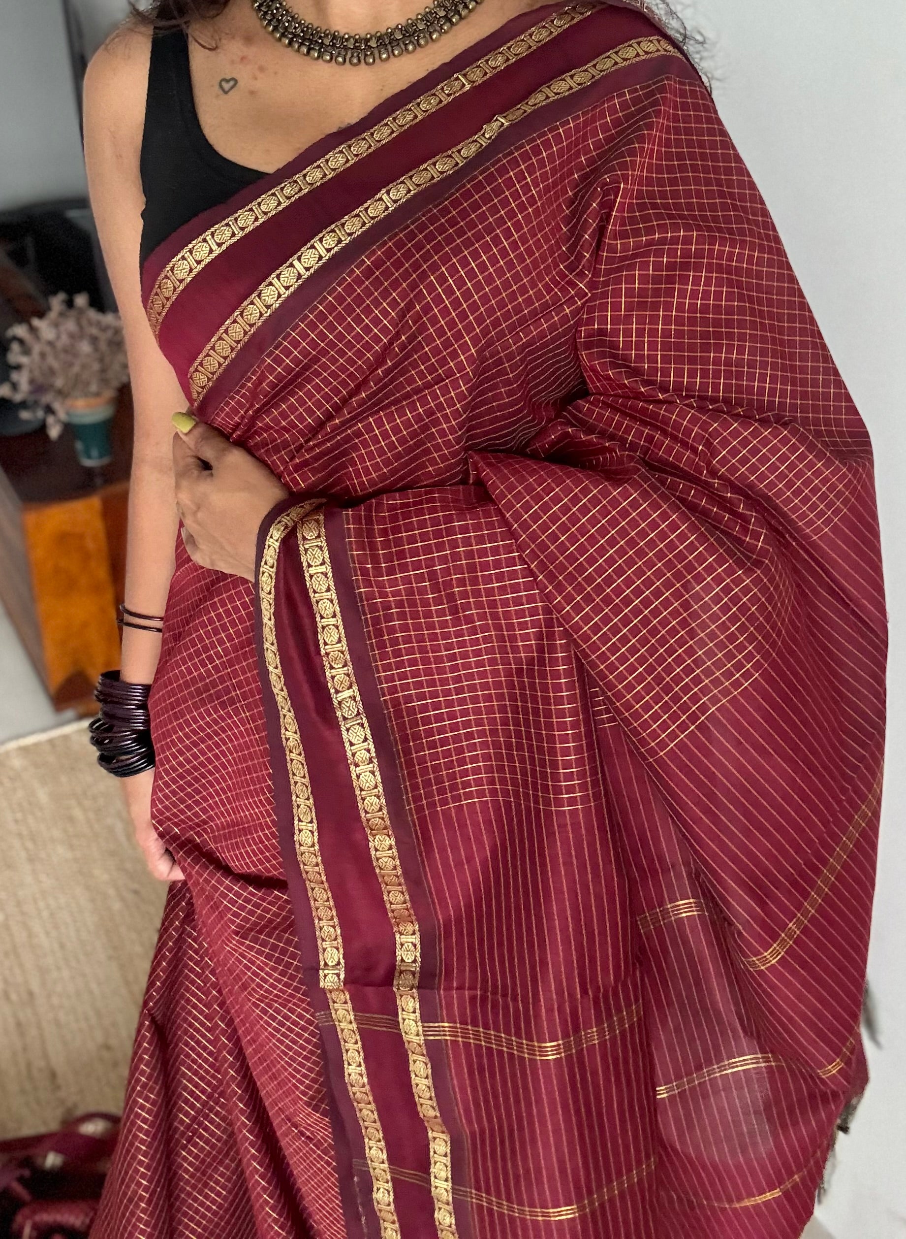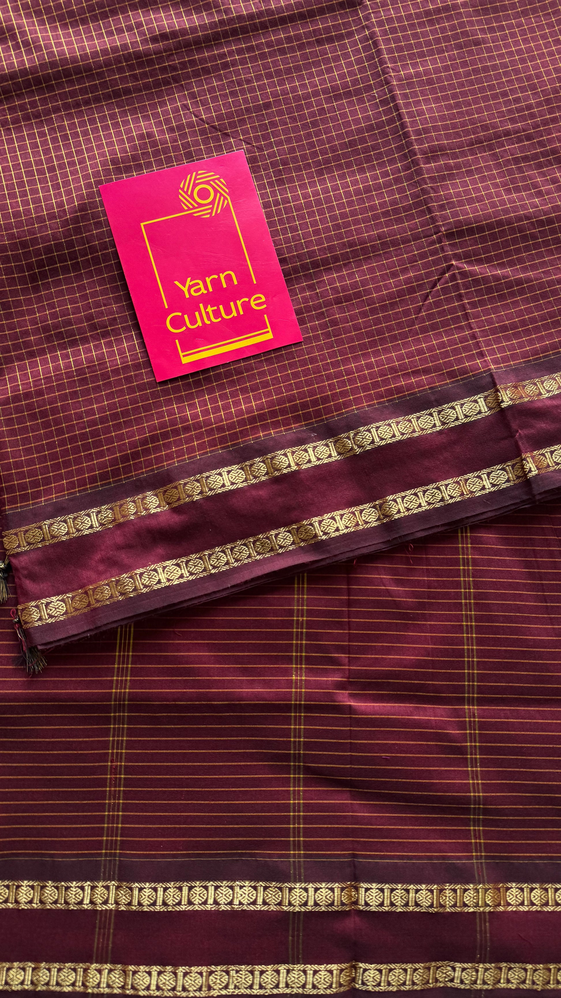 Maroonish brown, zari arani checks, cotton silk - YCCOTNOCAR36a