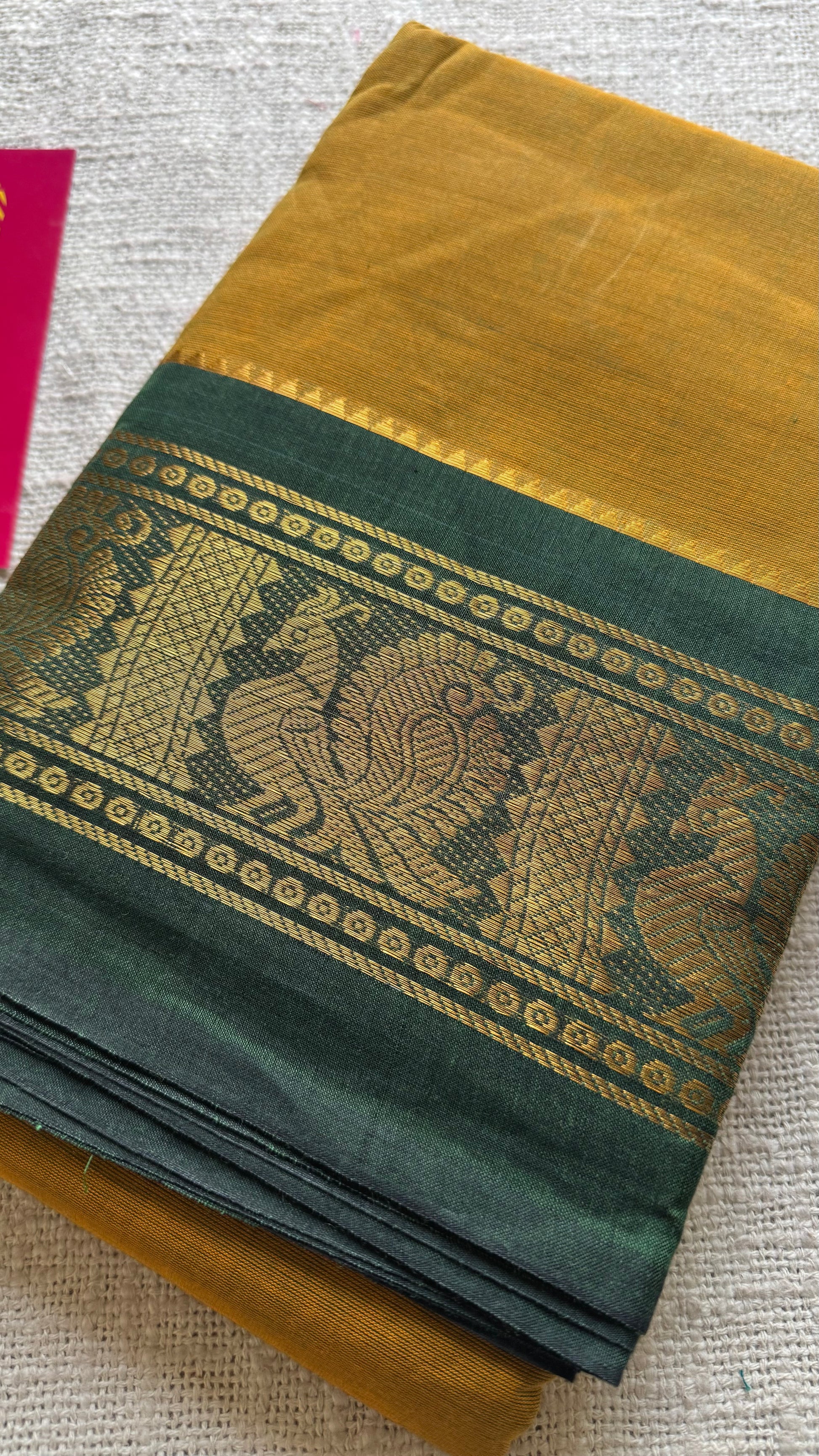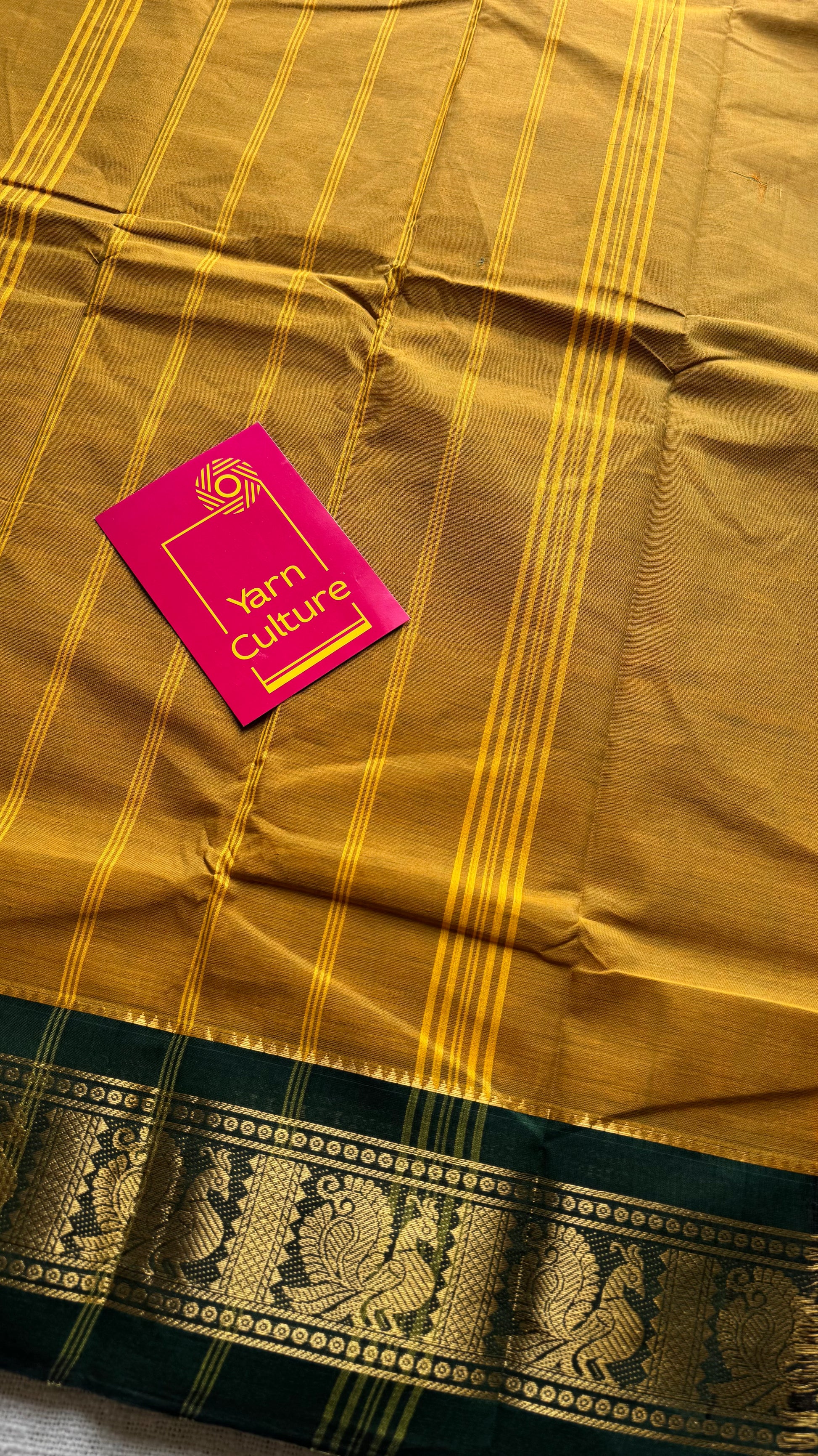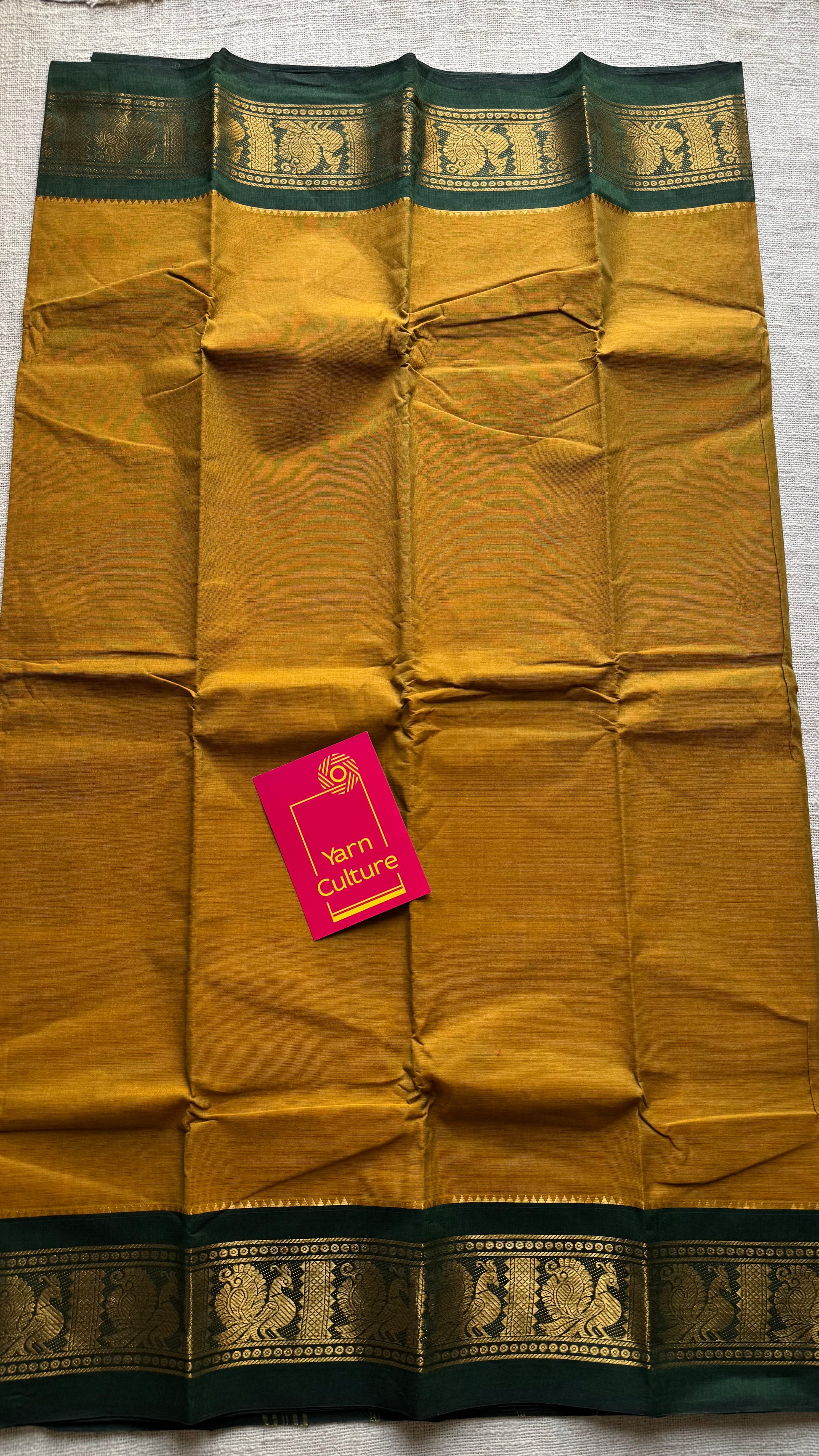 Brownish yellow with green contrast border, chettinad cotton - YCCOTNOCCC01