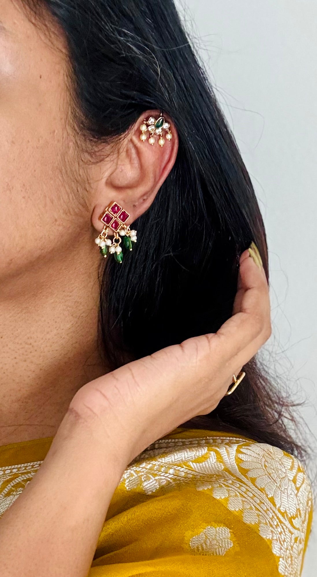 Bugadi clip-on (non pierced), green and white - YCAGEBU273