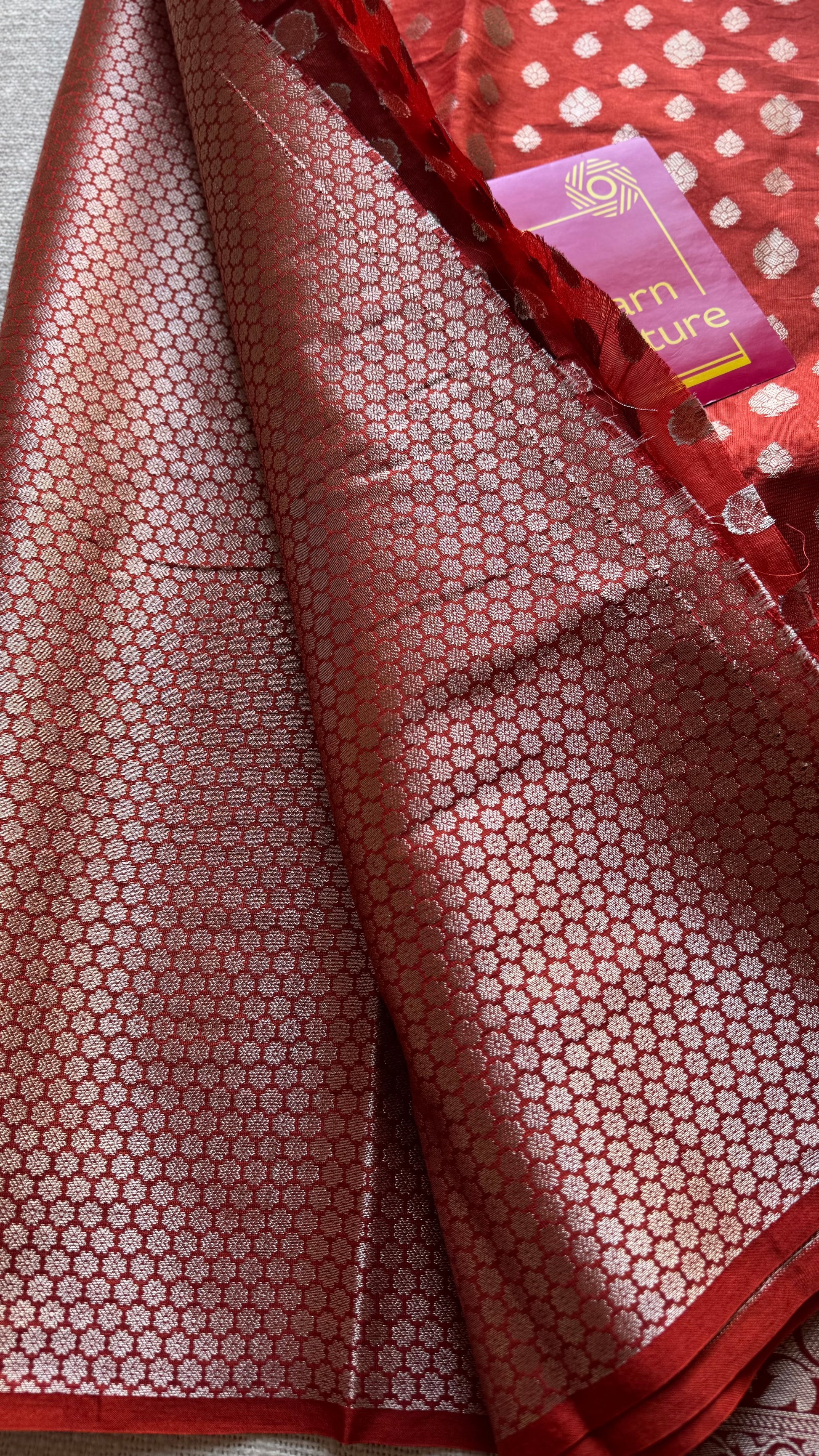 Burnt red, silver buttas and zari, Banarasi semi-silk - YCDESE36
