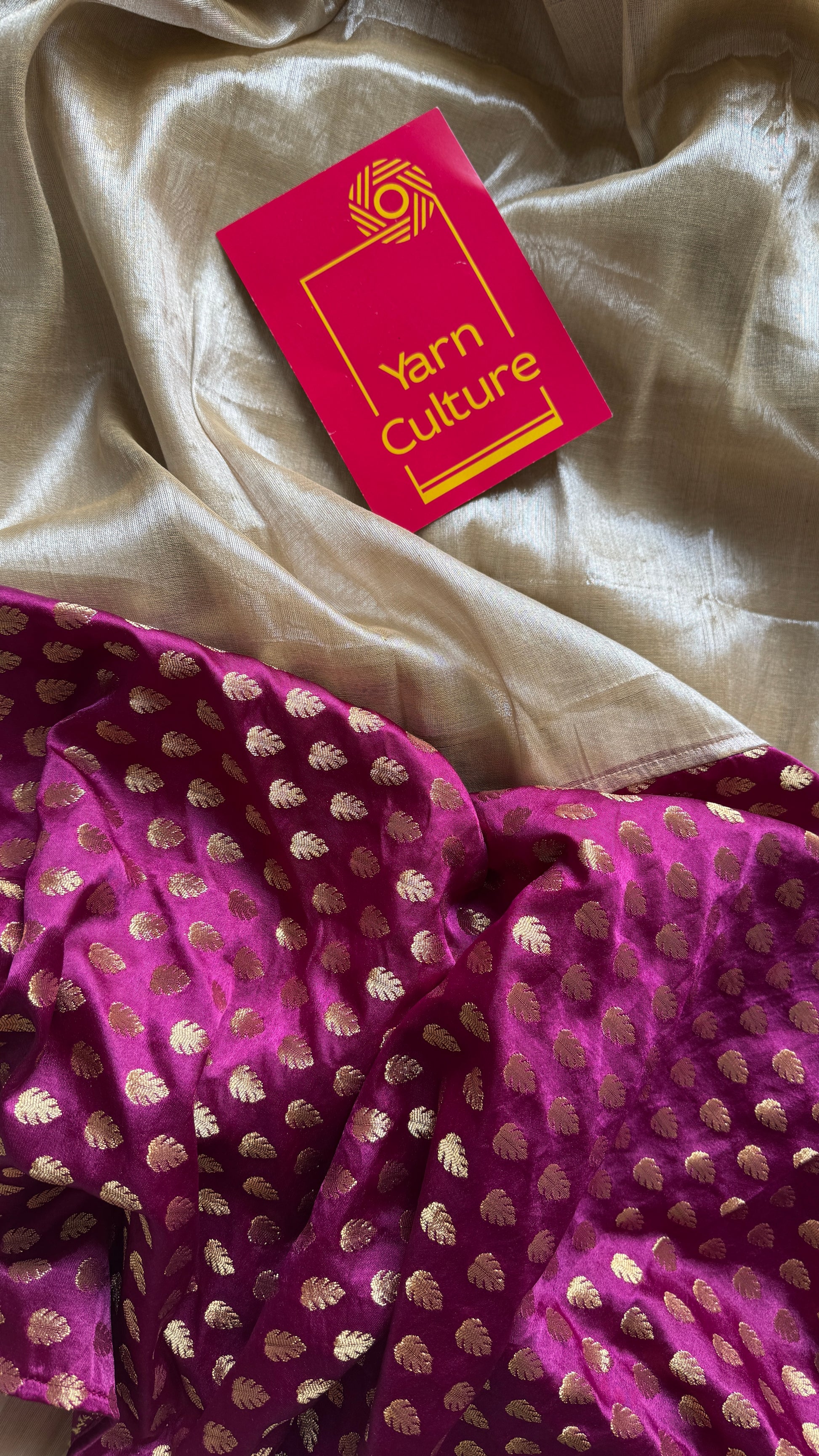 Chaand Phool - Moonflower : Pearl White with Purple Pink Brocade Pallu & Blouse, Mul Tissue - YCTMEMT04