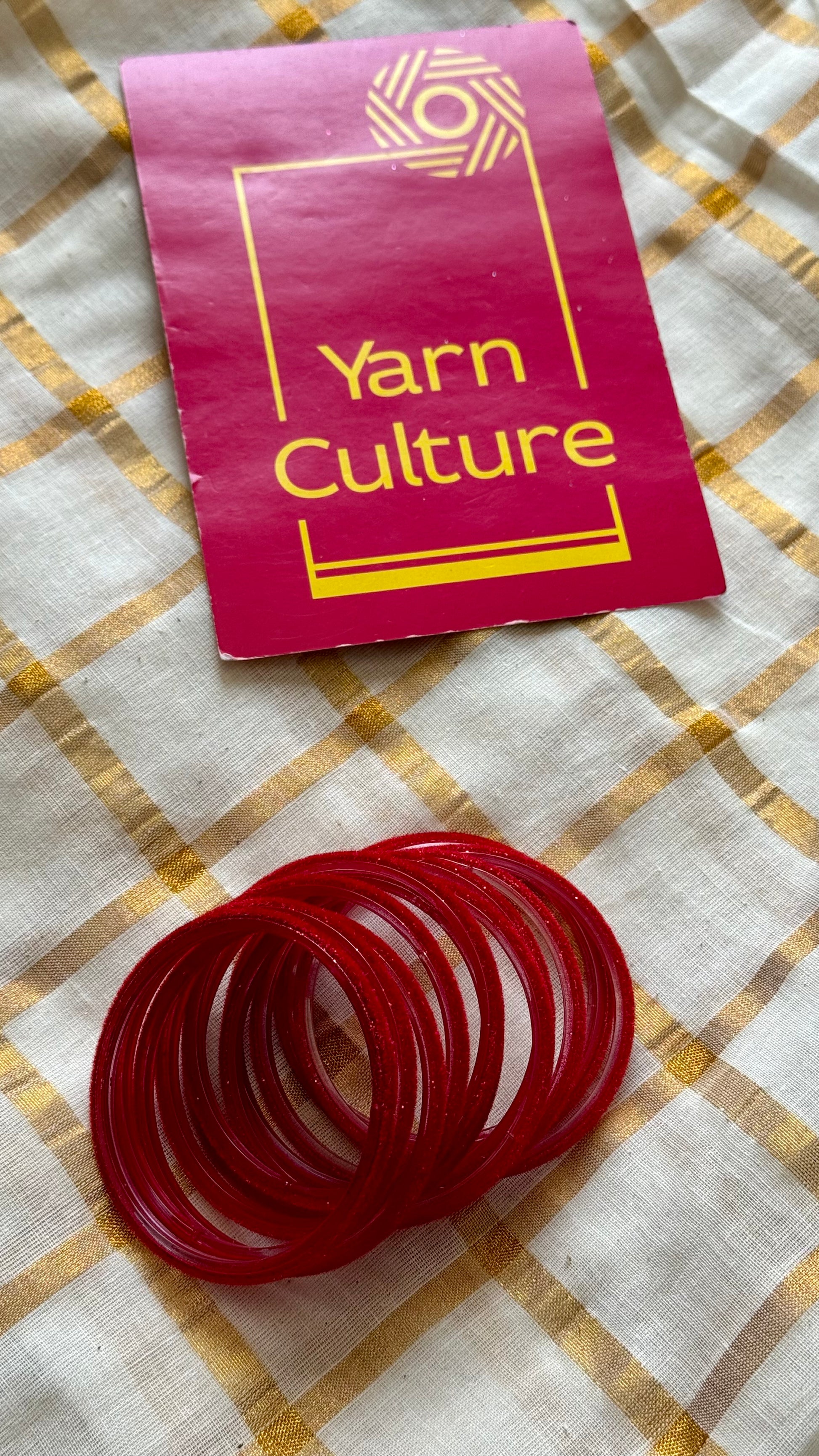 Chilli red velvet glass bangles, set of 12 - YCBANGL365