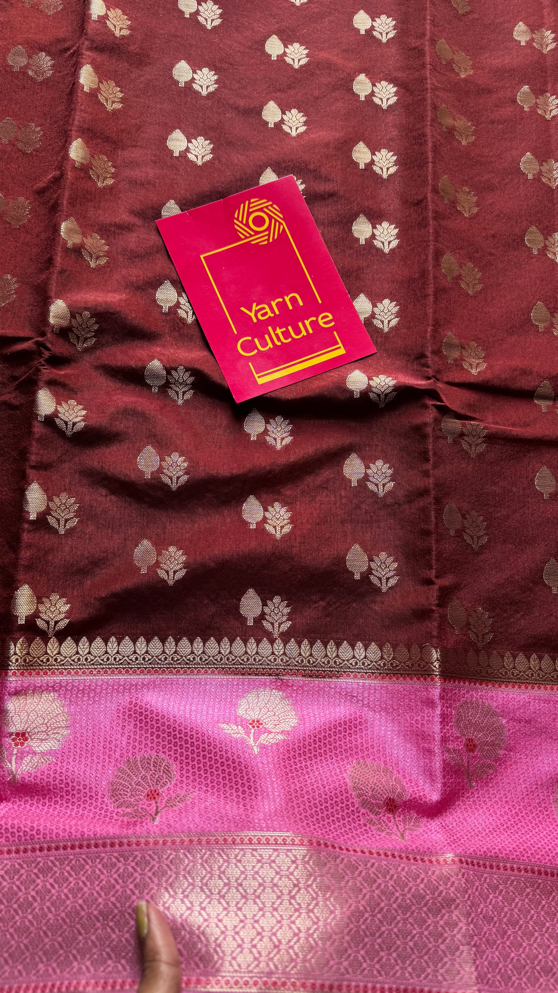Coffee brown with pink border, semi dupion silk - YCBLSSJA23