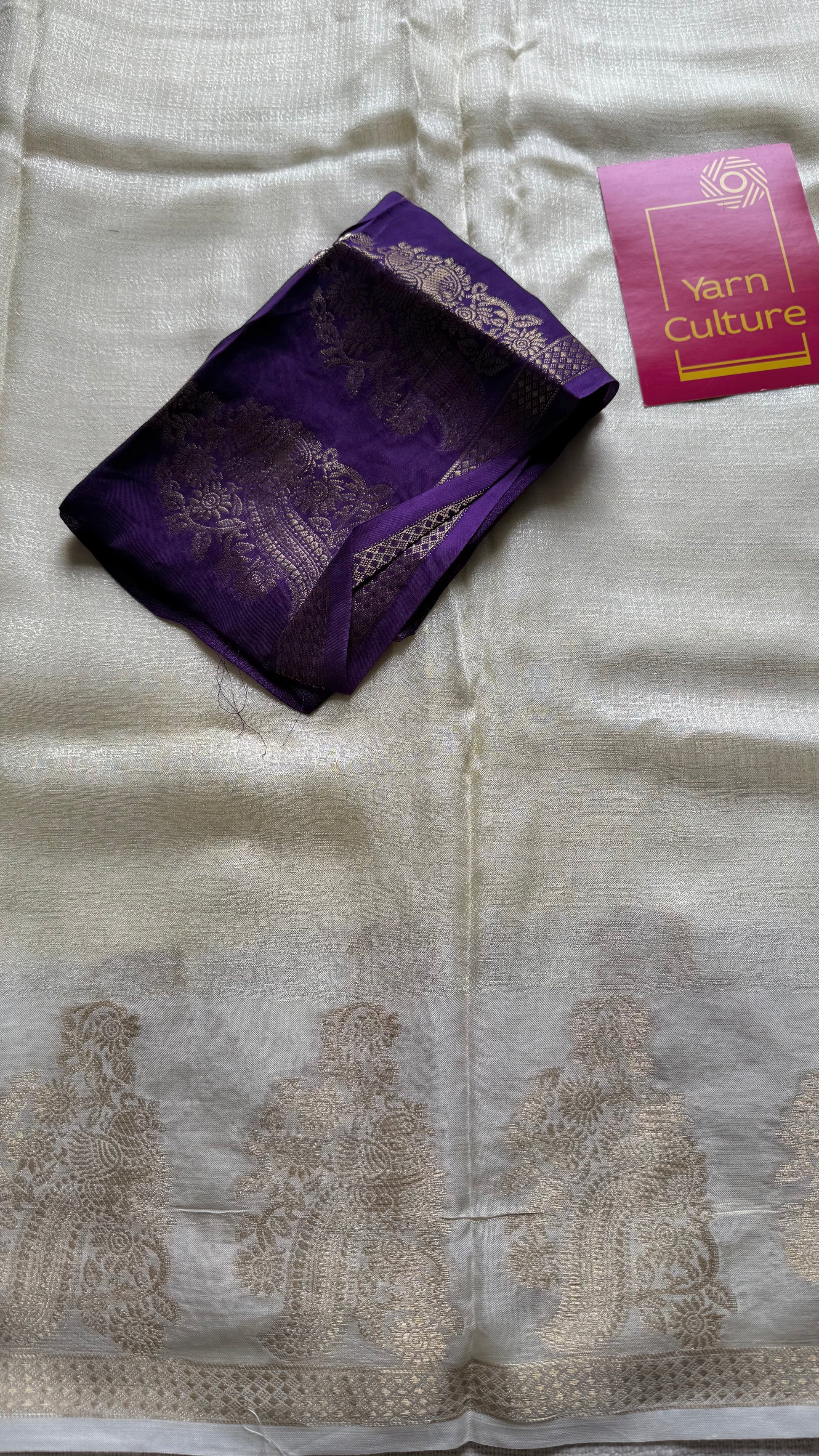Cream & gold viscose khadi silk for those who love flowy fabrics. This one oomes with a violet blouse fabric.