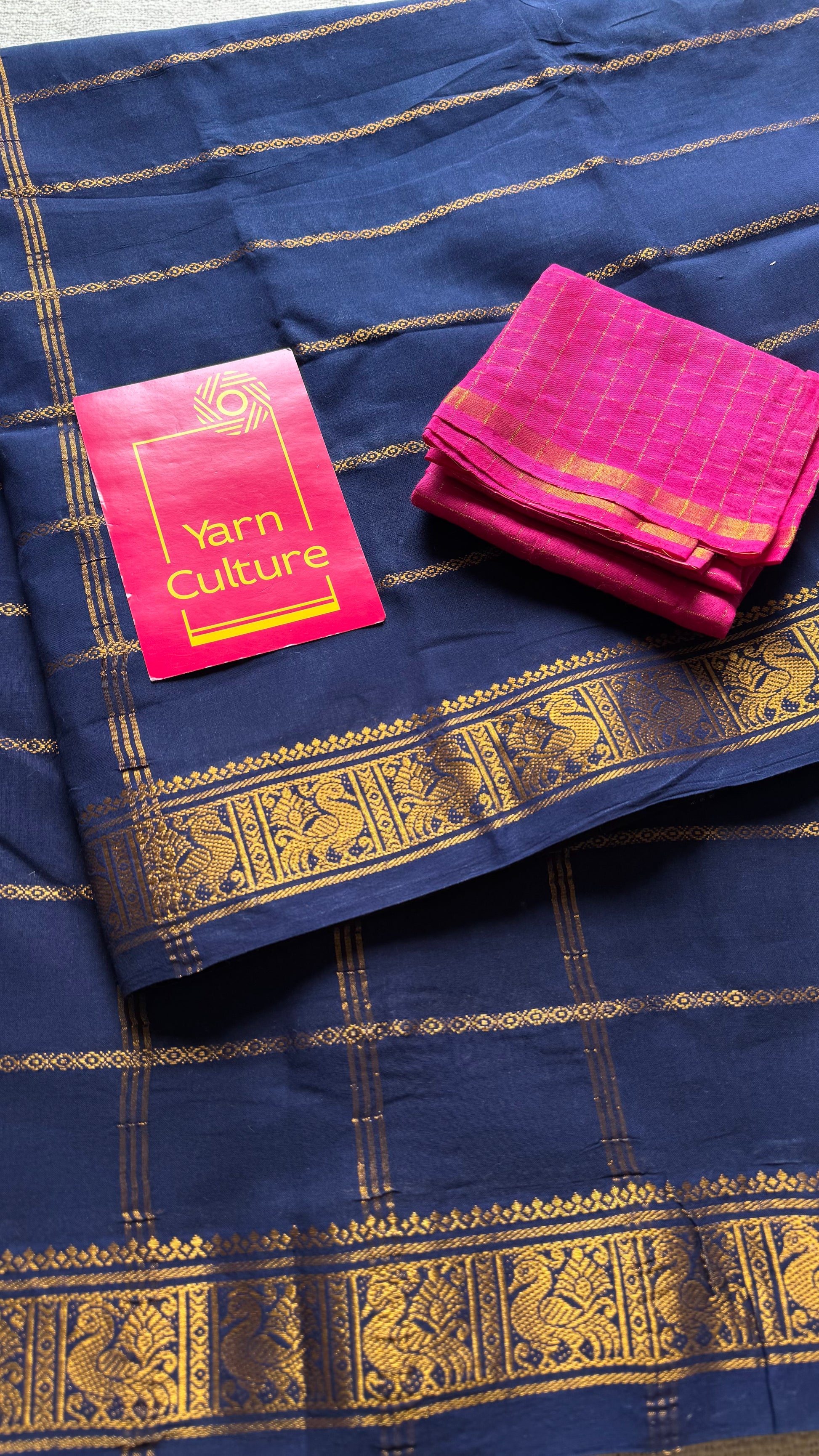 Dark blue veldhaari, kattuchayam dyed, madurai cotton, with contrast blouse fabric 💖