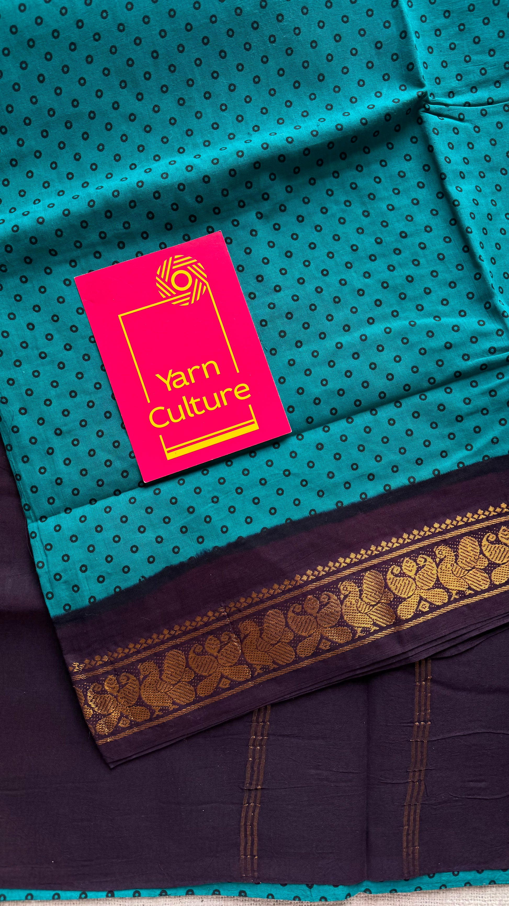 Dark cyan with purple brown, kattuchayam dyed madurai sungudi cotton saree - YCCOTNMSFE07
