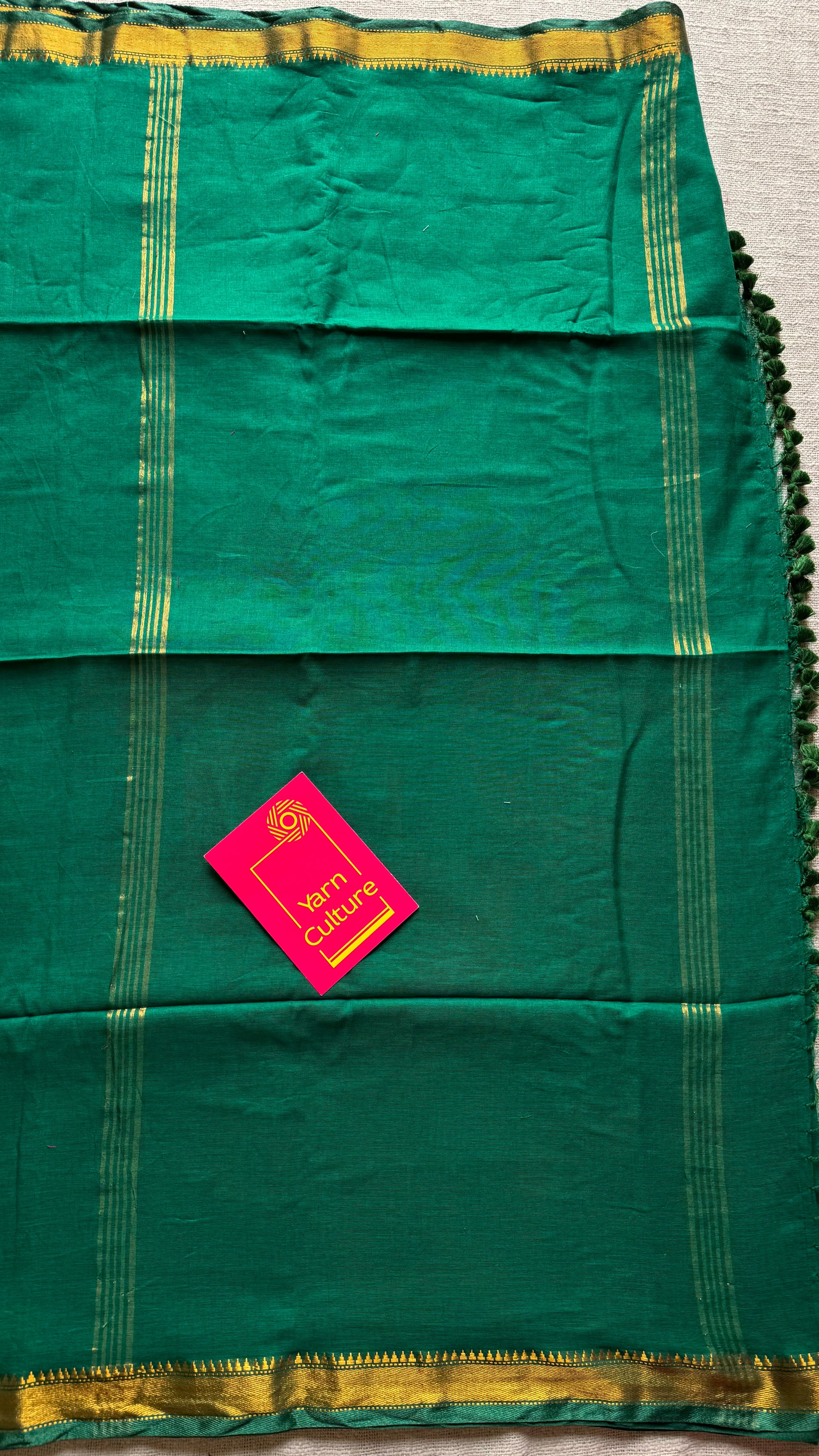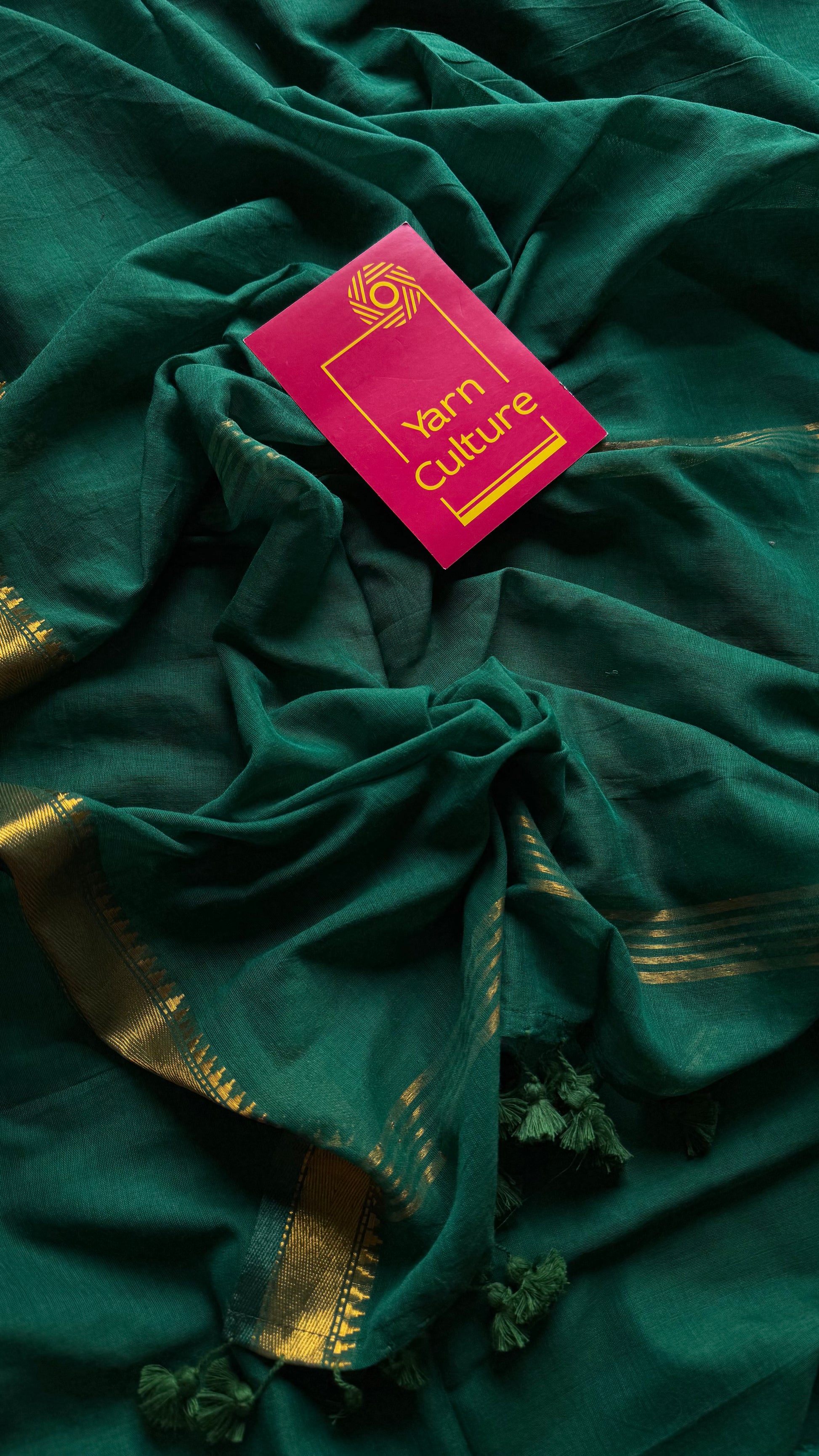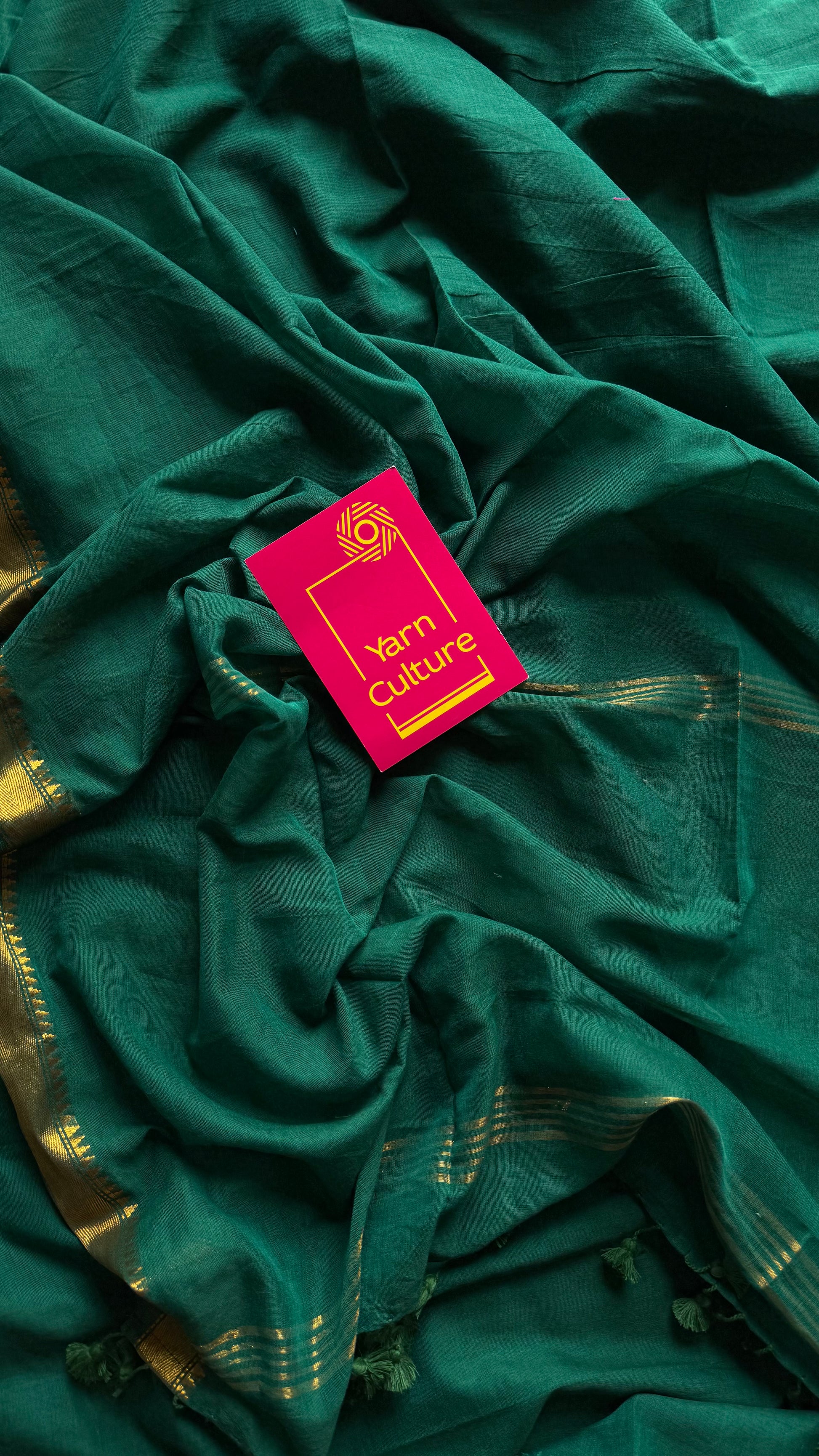 Dark green soft cotton with maheswari gold zari border - YCBCMCFE215