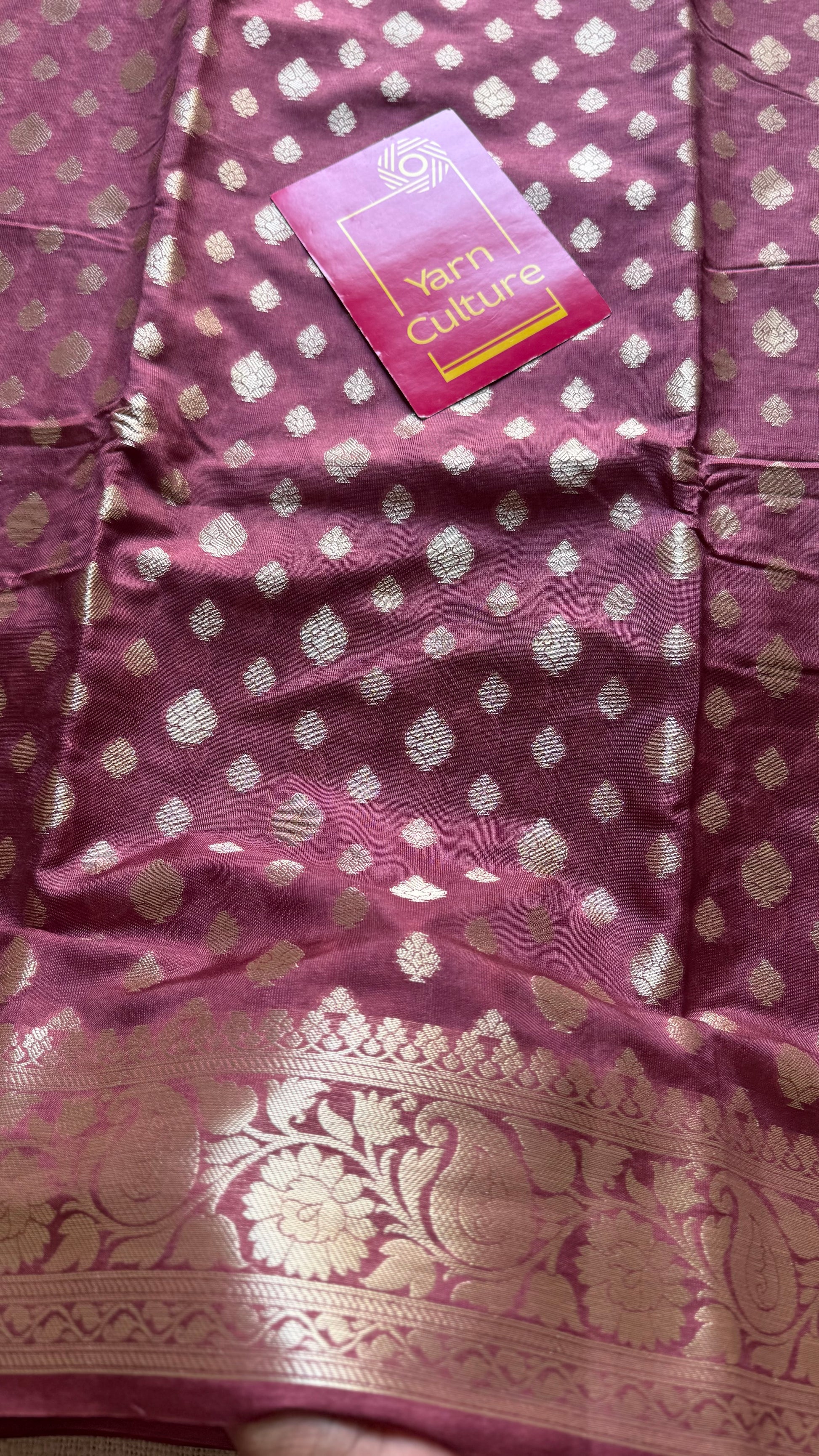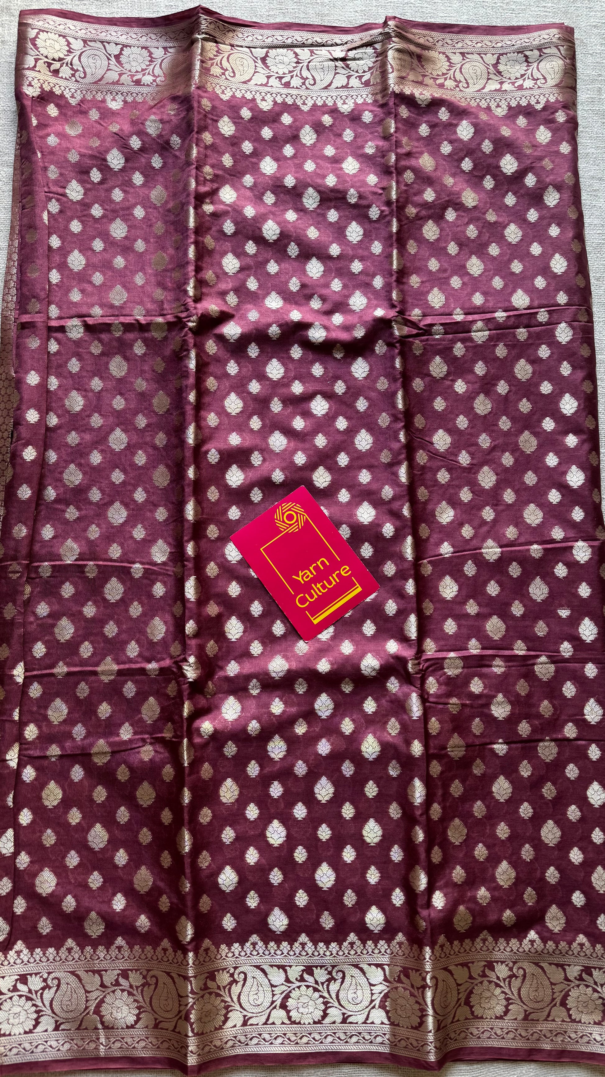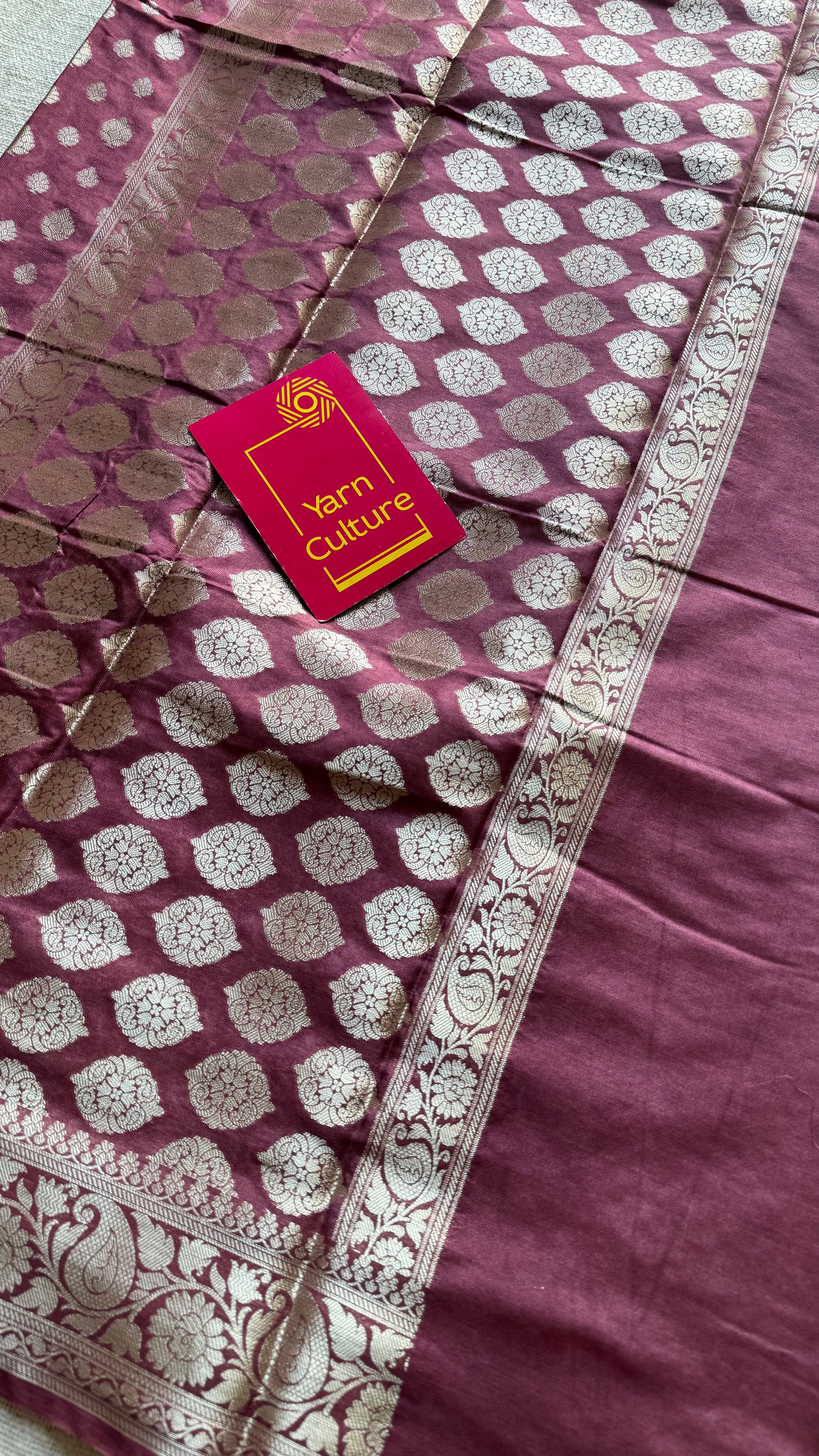 Dark mauve, silver buttas and zari, Banarasi semi-silk - YCDESE38