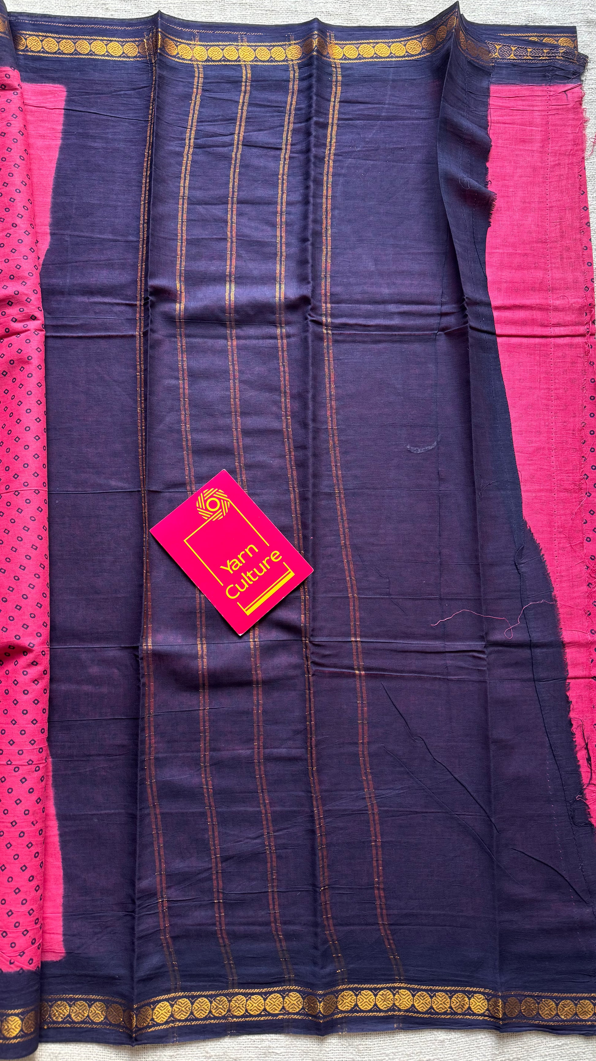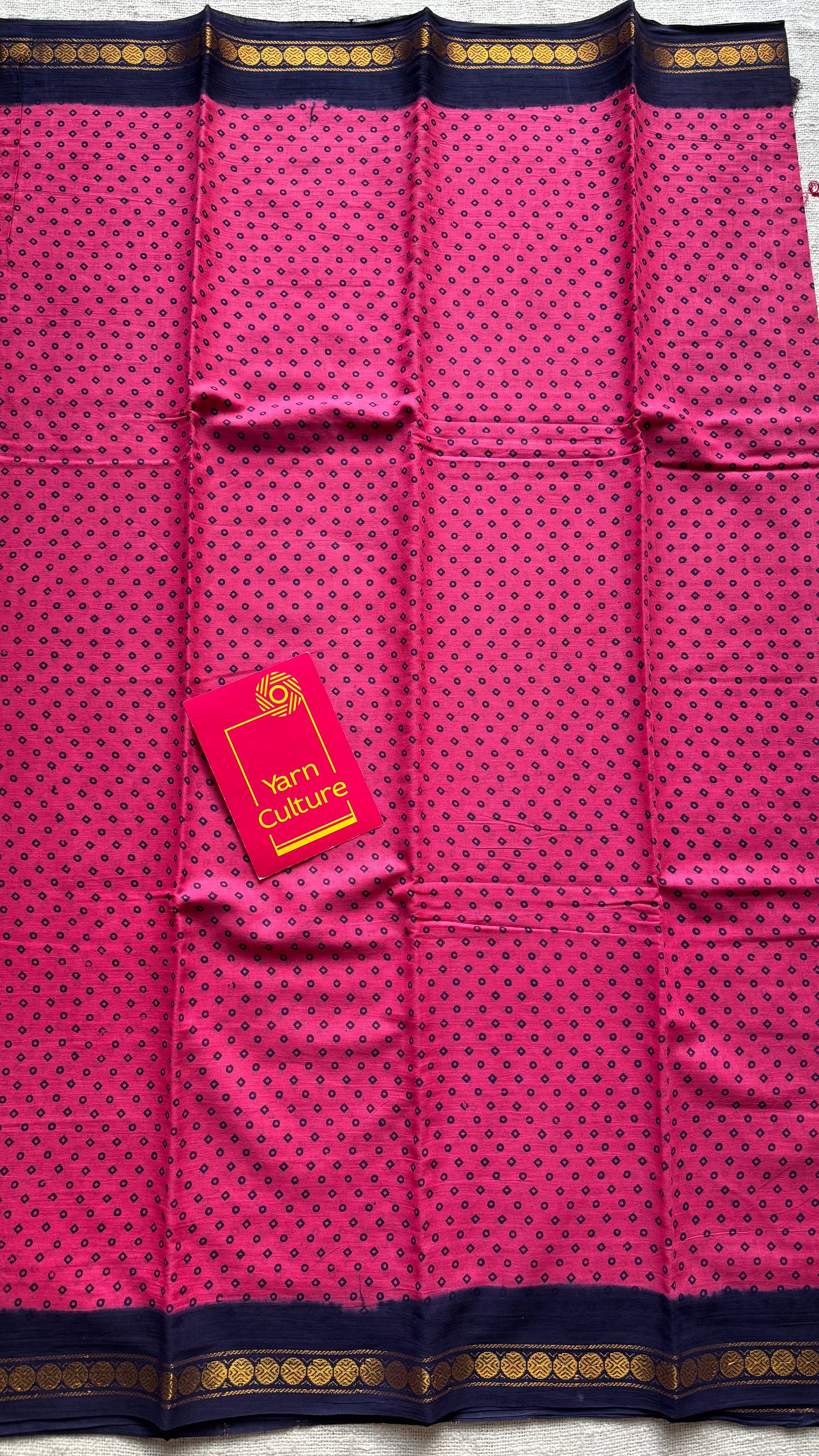 Dark pink with navy blue border sungudi, kattuchayam dyed, madurai cotton, no blouse. Soft, easy to drape.