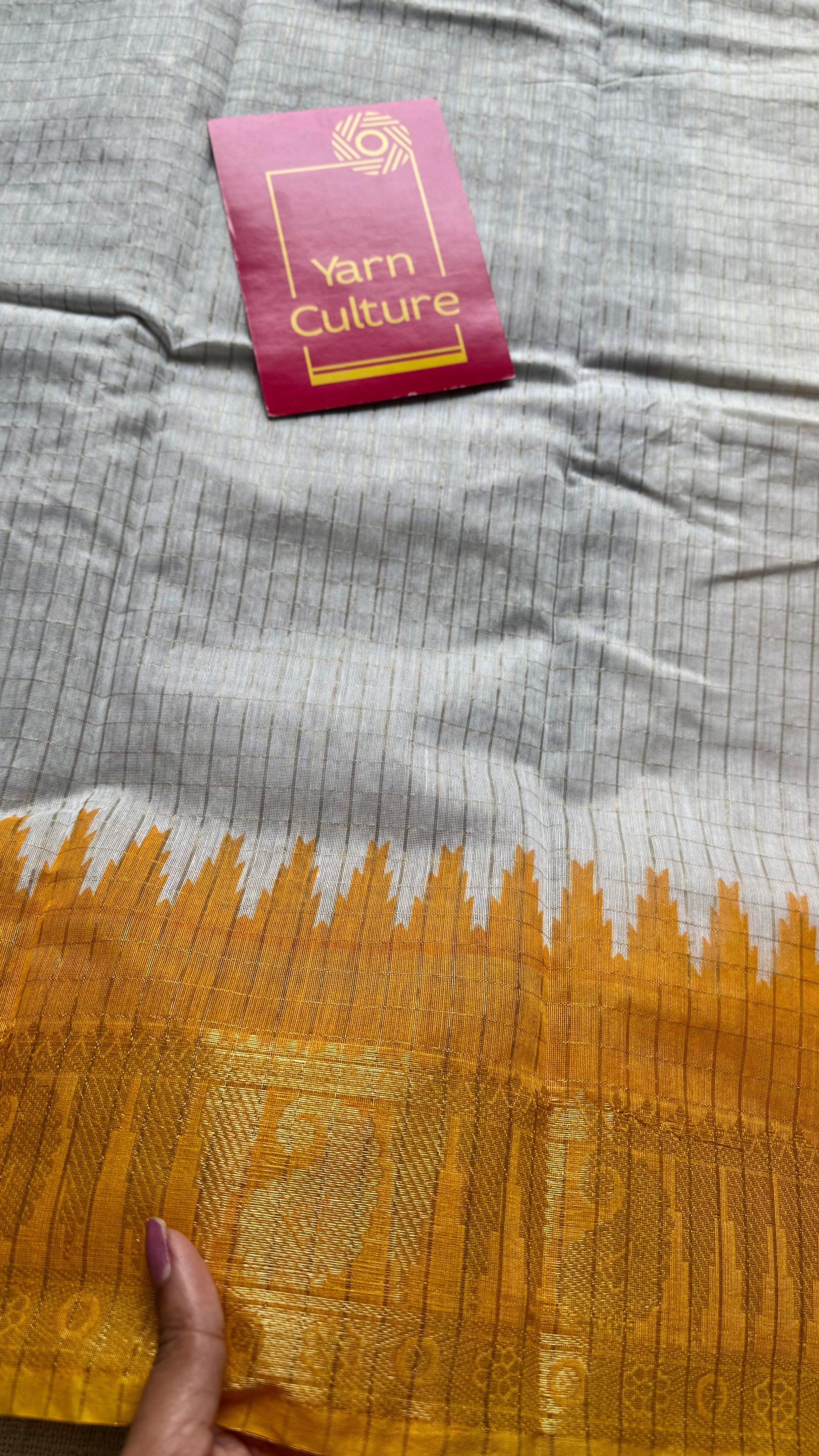 Dark Violet Yellow - sungudi cotton checks, ivory gold base, soft cotton - YCON25COTN95