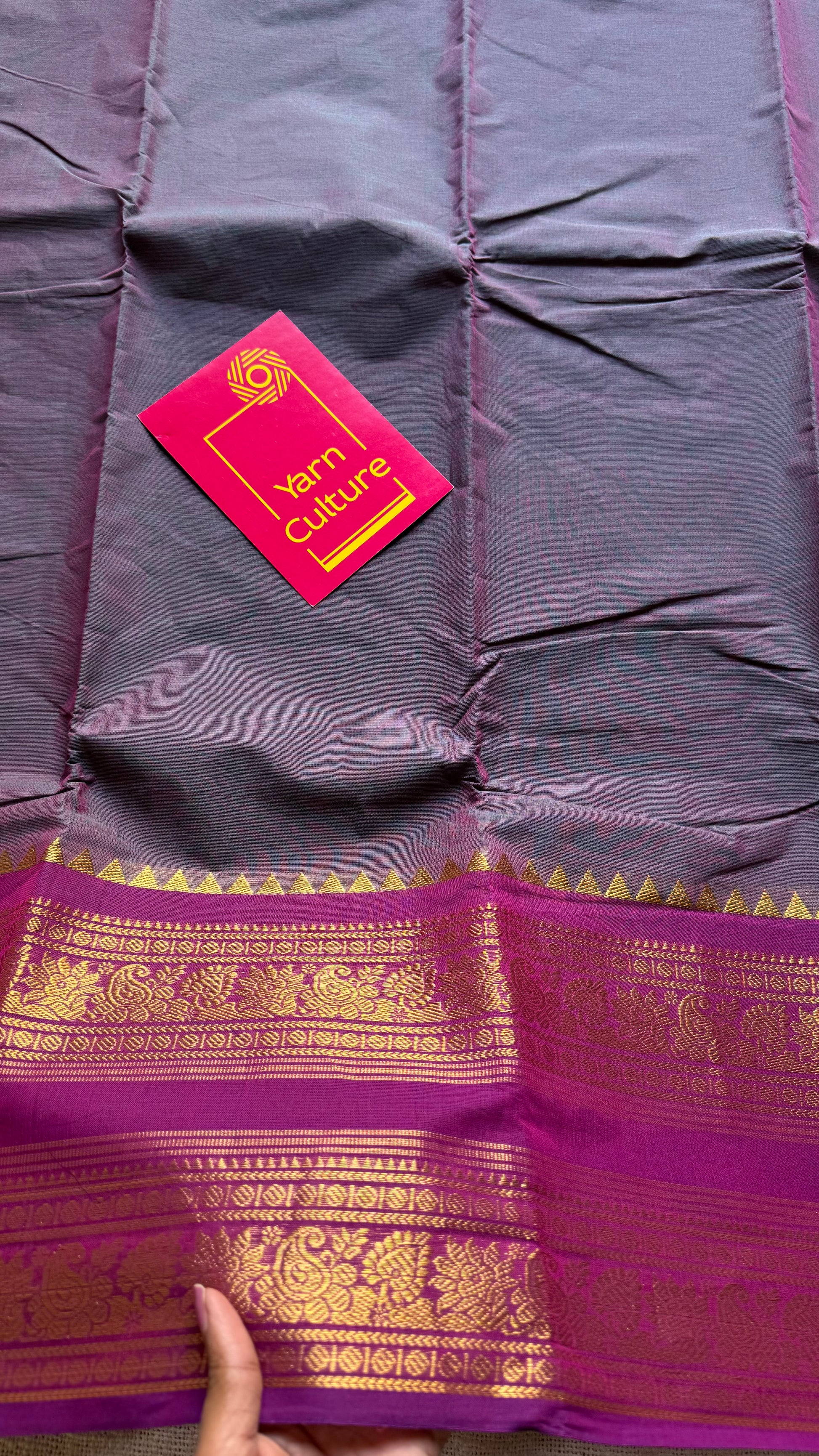 Dual tone grey with magenta, wide zari border, kanchi cotton - YCCOTNKCJA215