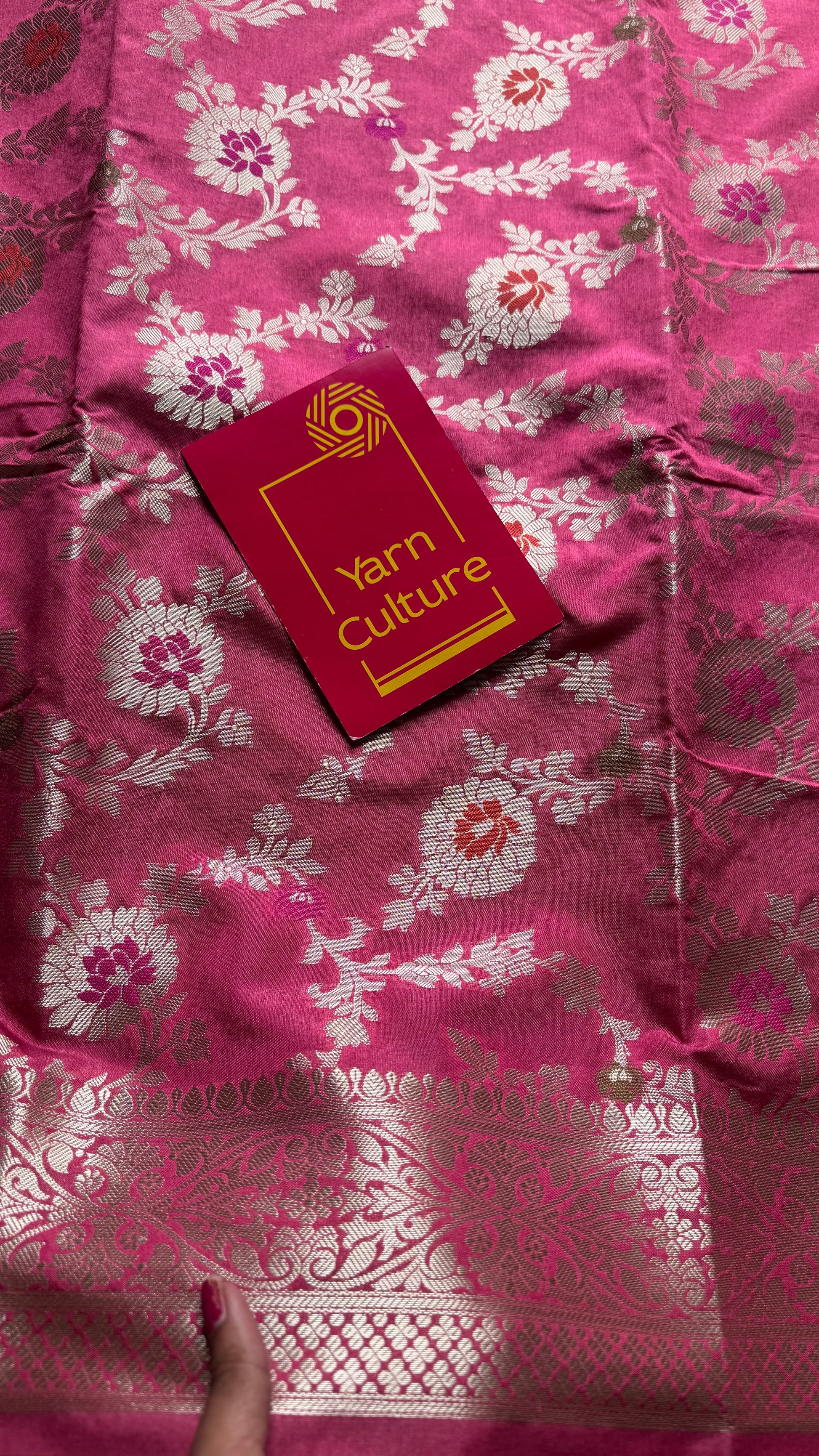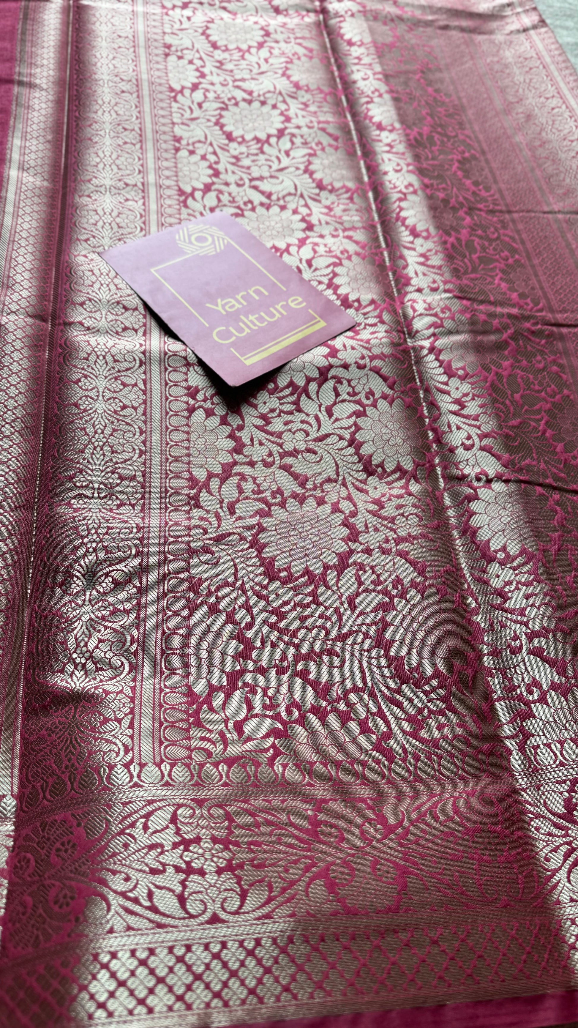 Dusty pink meenakari floral pattern in silver zari, Banarasi katan dupion silk - YCDESE09