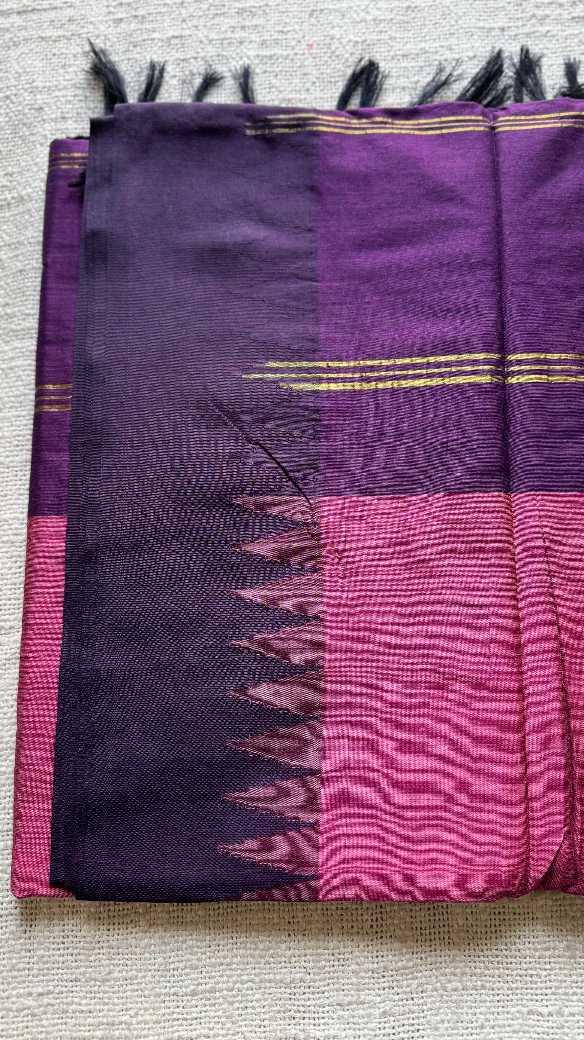 Dusty pink with purple temple border - cotton silk - YCCOTNOCKCS3