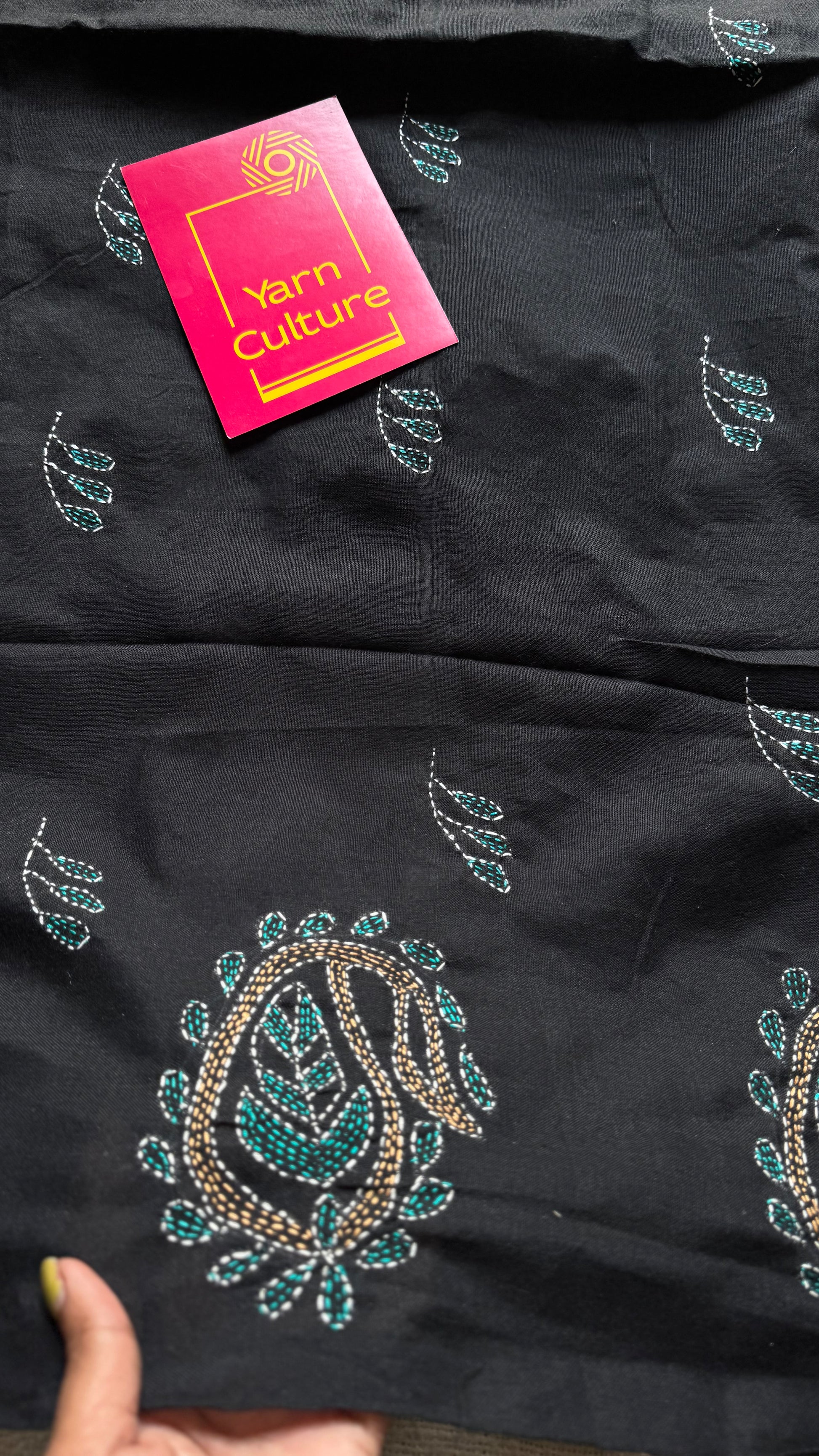 Embroidered black kantha weave in soft cotton - YCBCKKJA146
