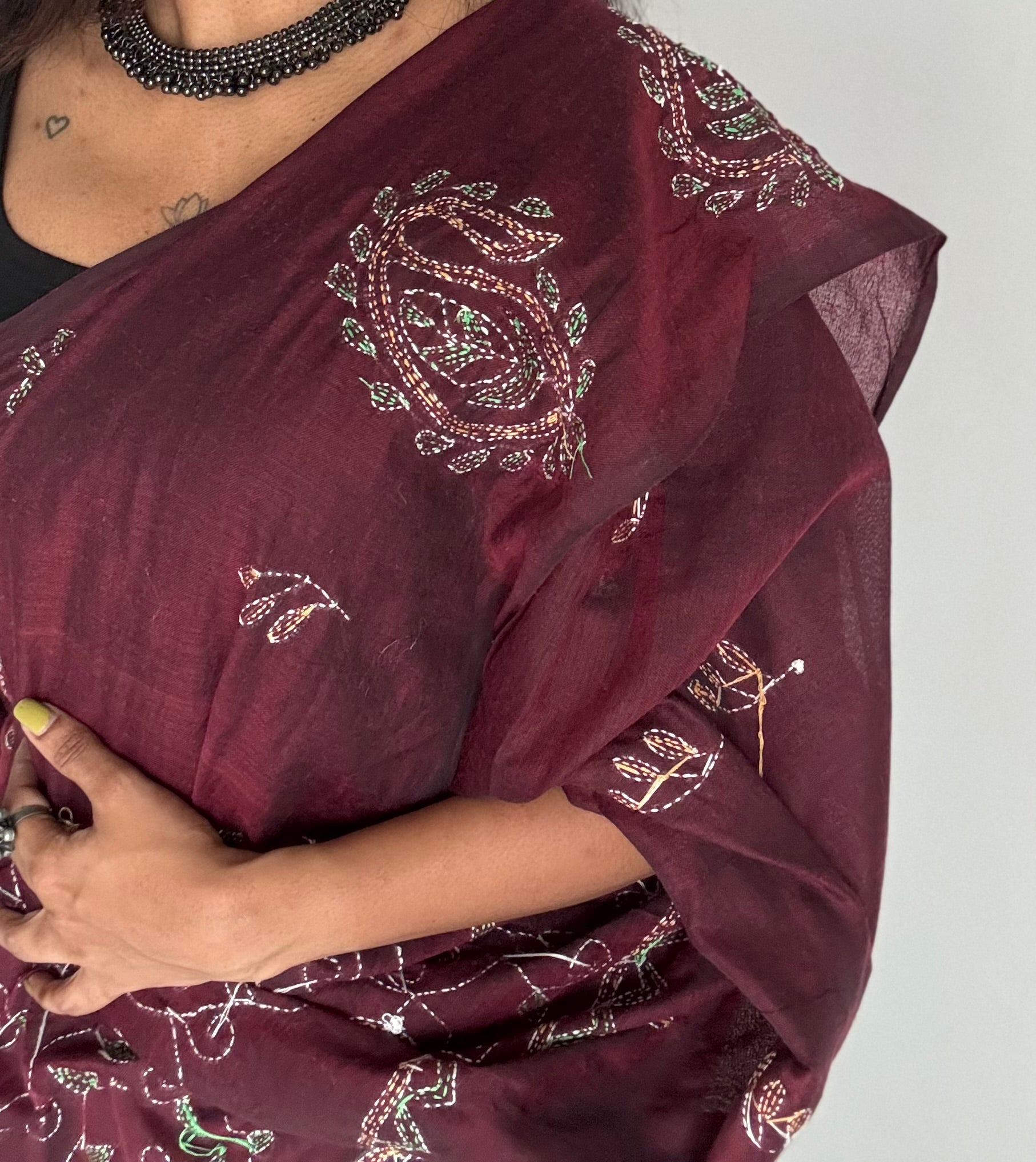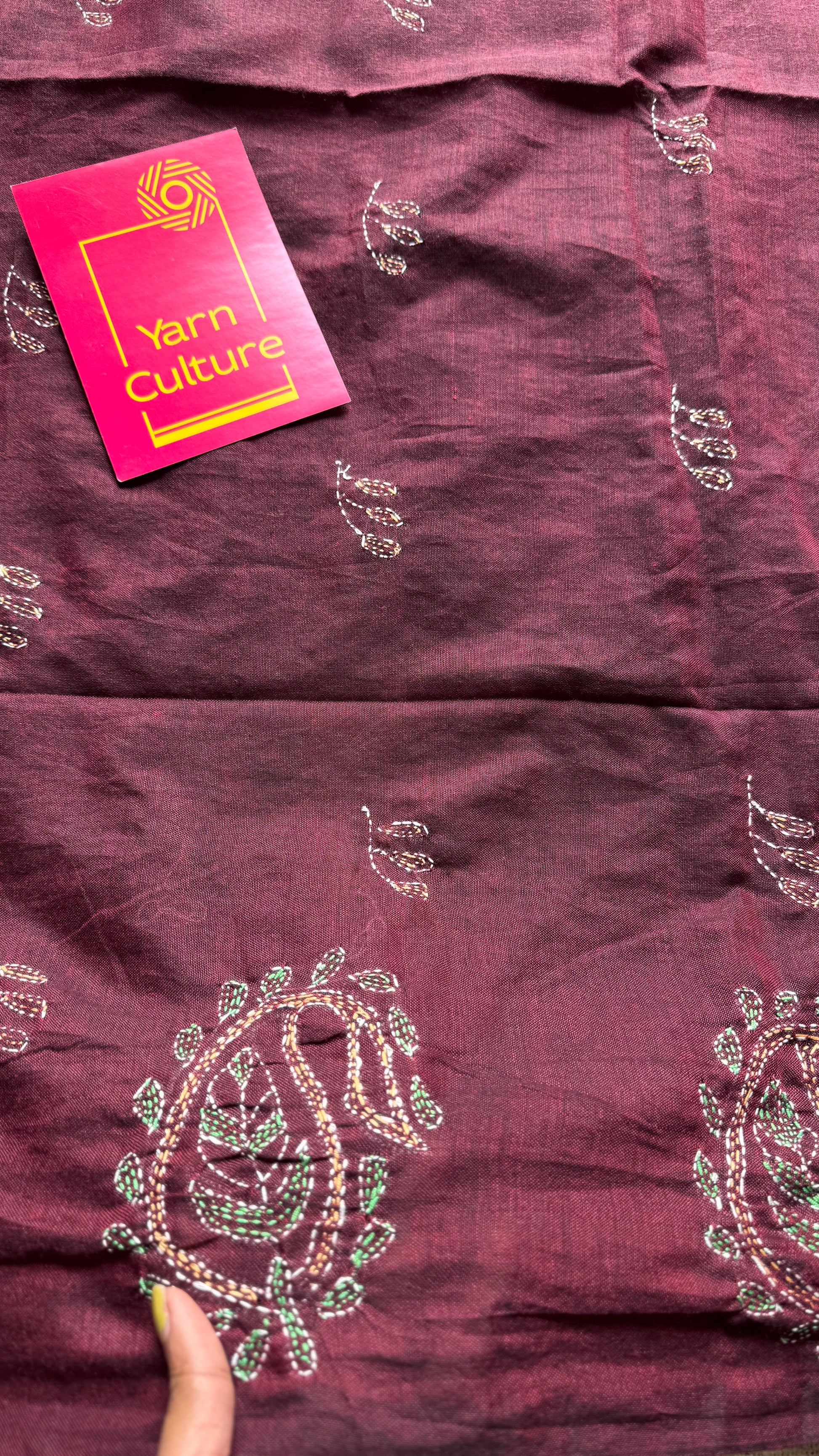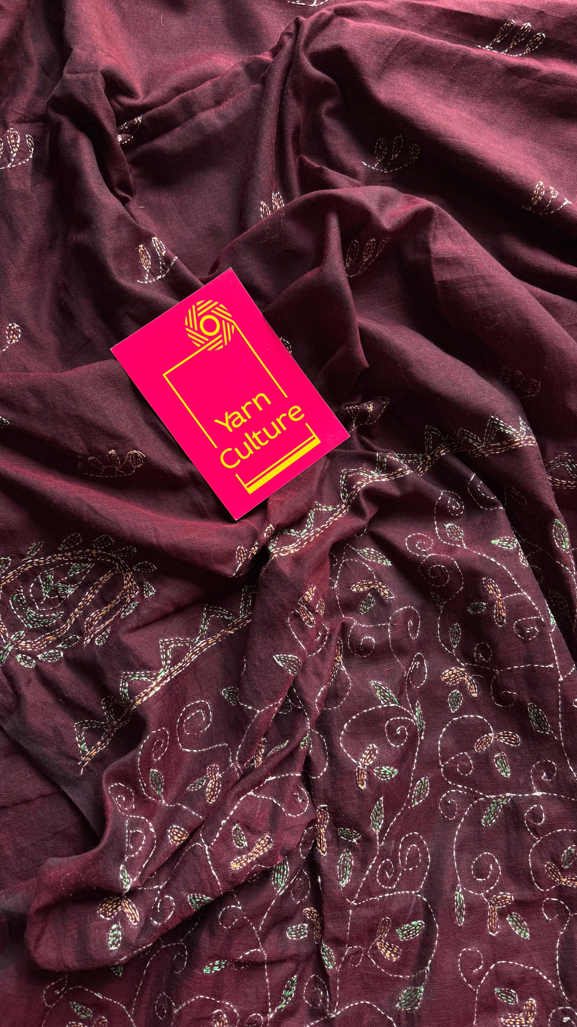 Embroidered maroon kantha weave in soft cotton - YCBCKKJA147