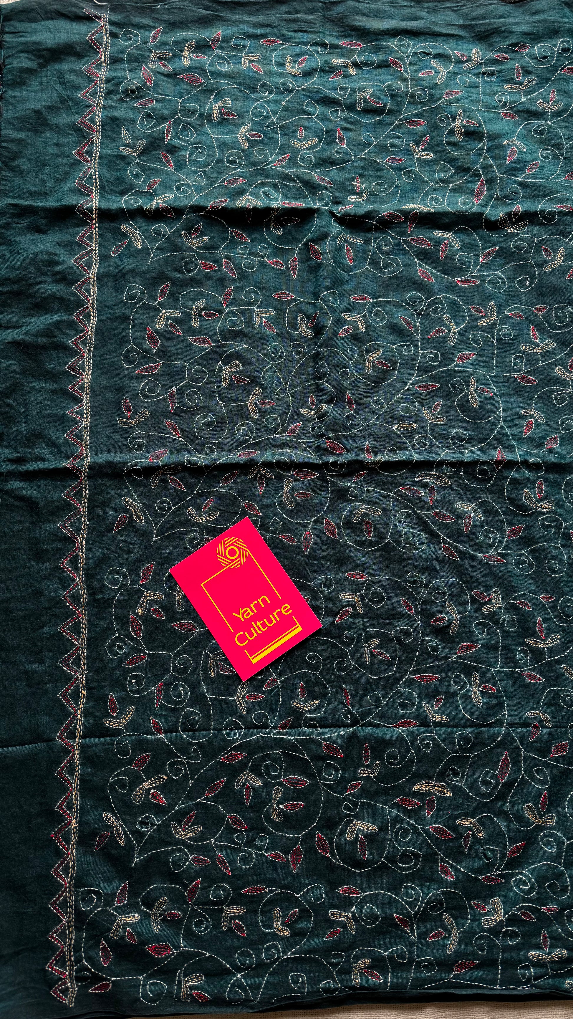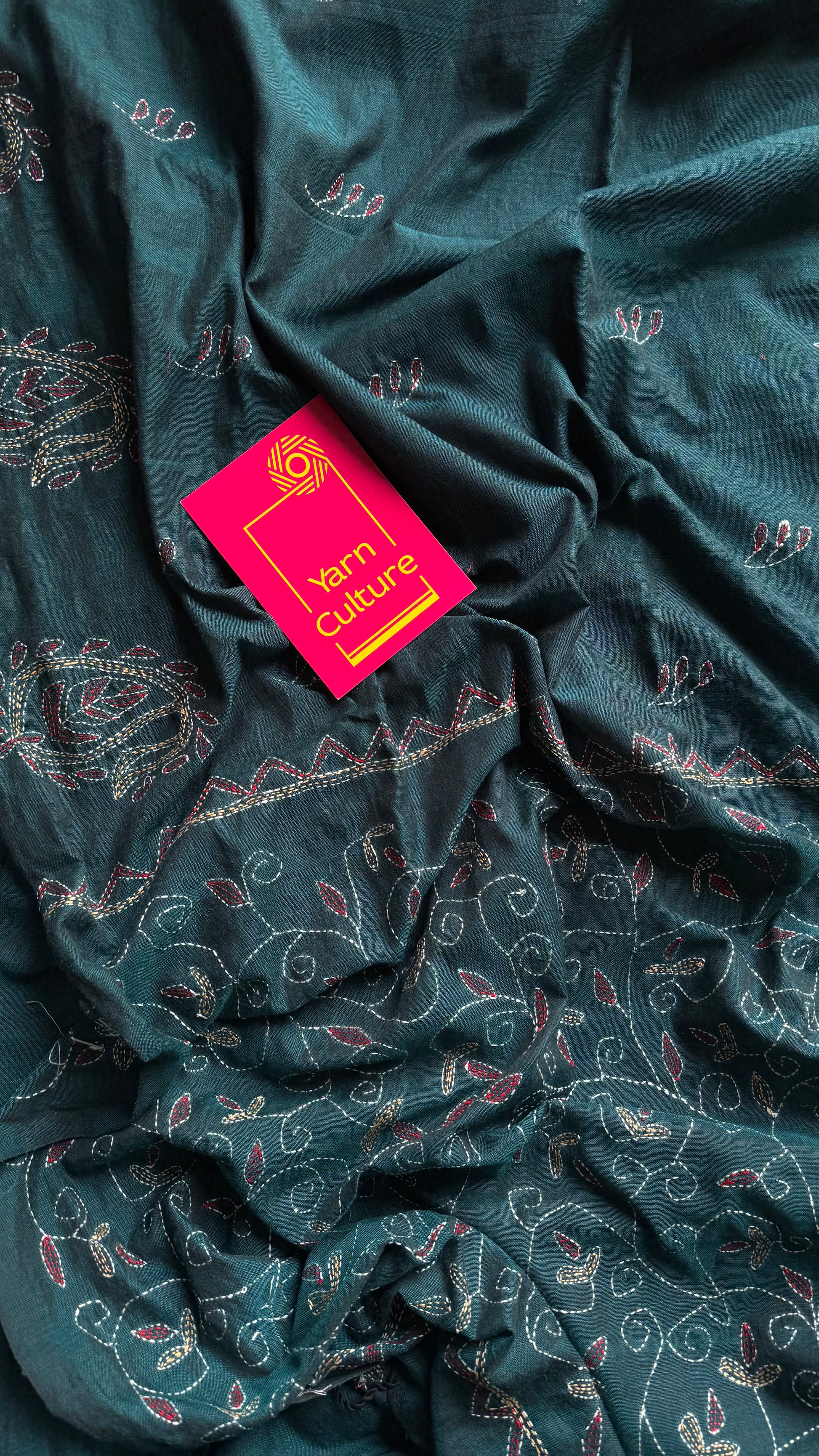 Embroidered peacock blue kantha weave in soft cotton - YCBCKKJA144