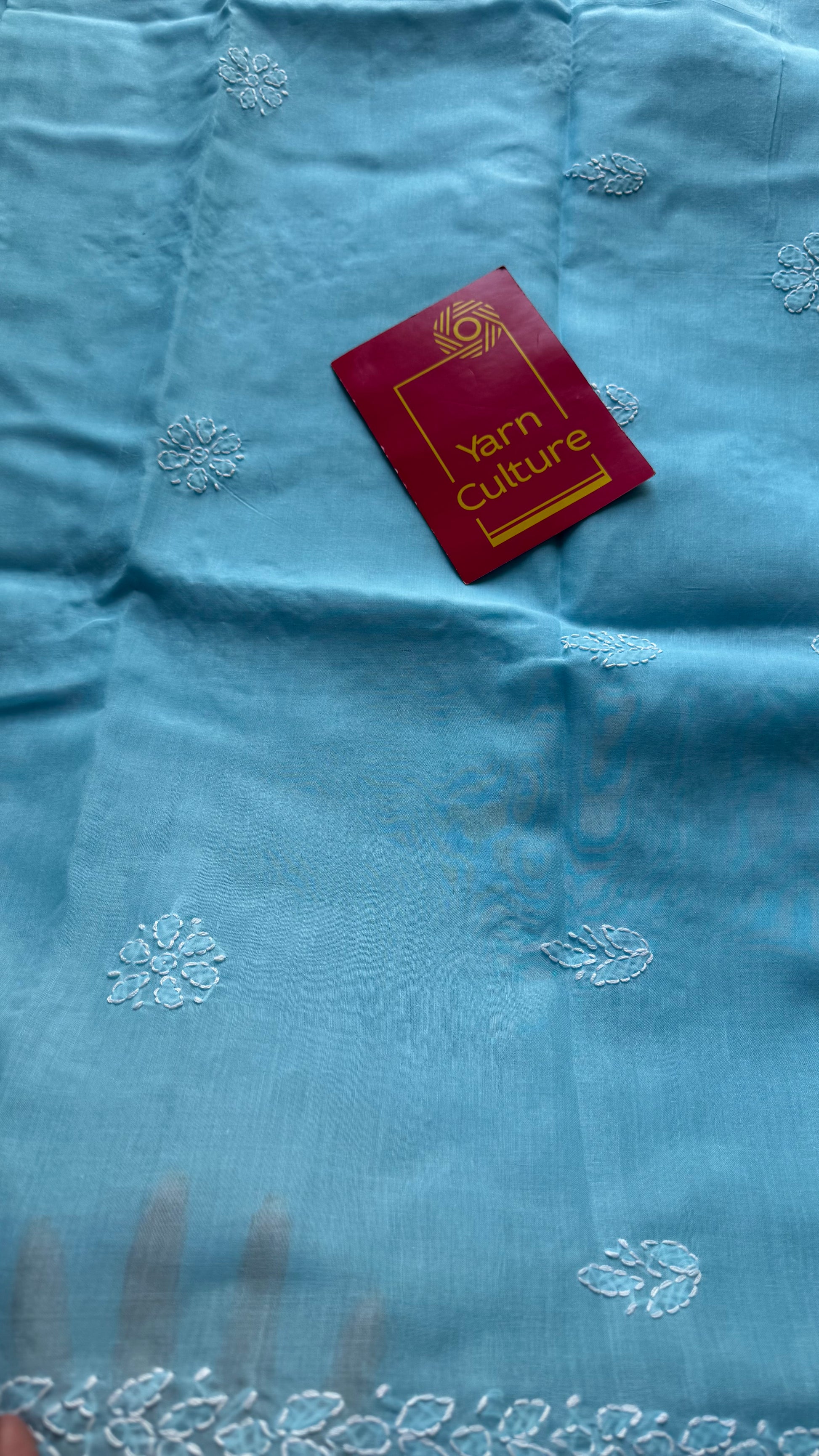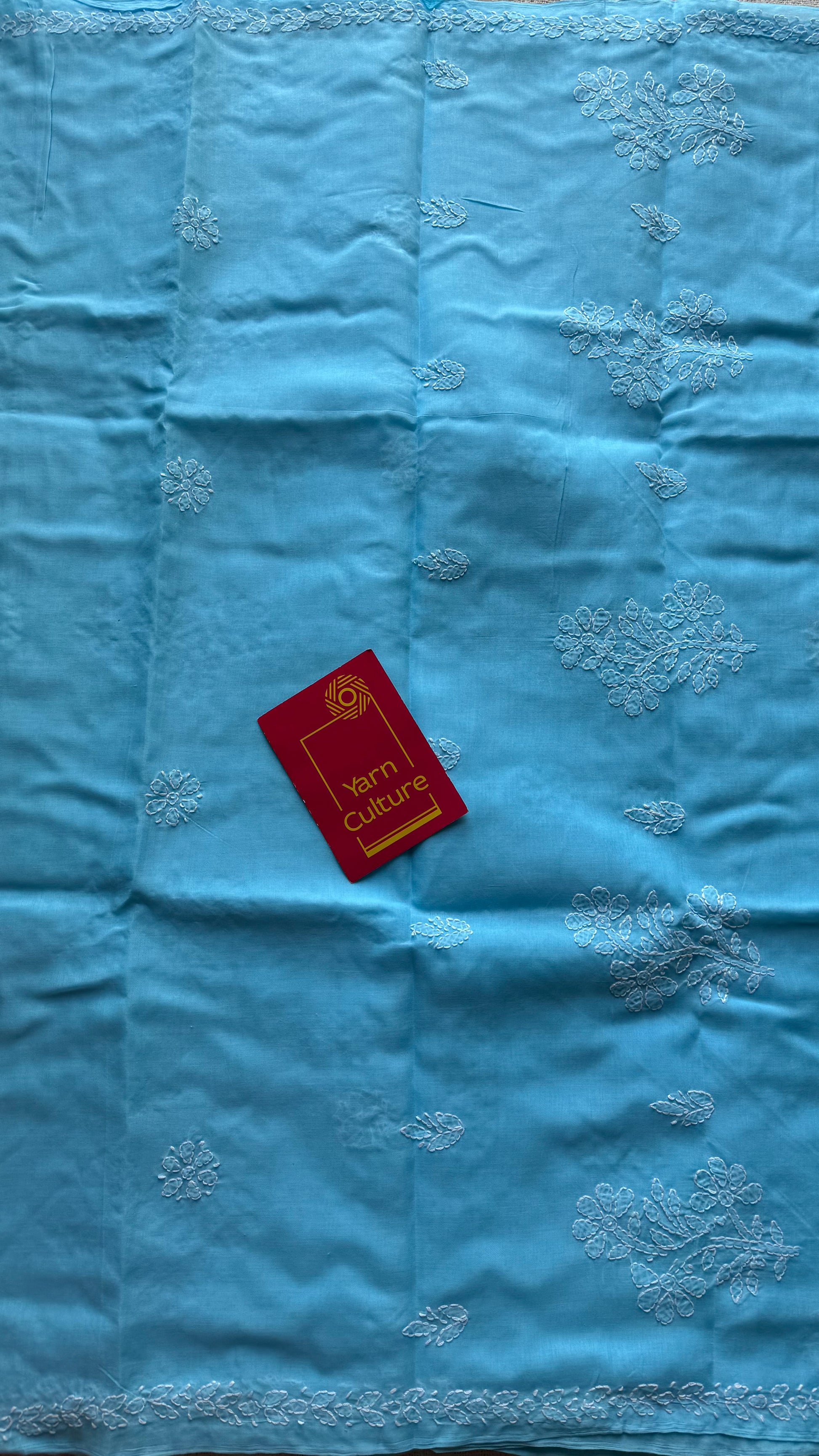 Falak - sky blue hand-embroidered chikankari cotton saree - YCLCKFE424