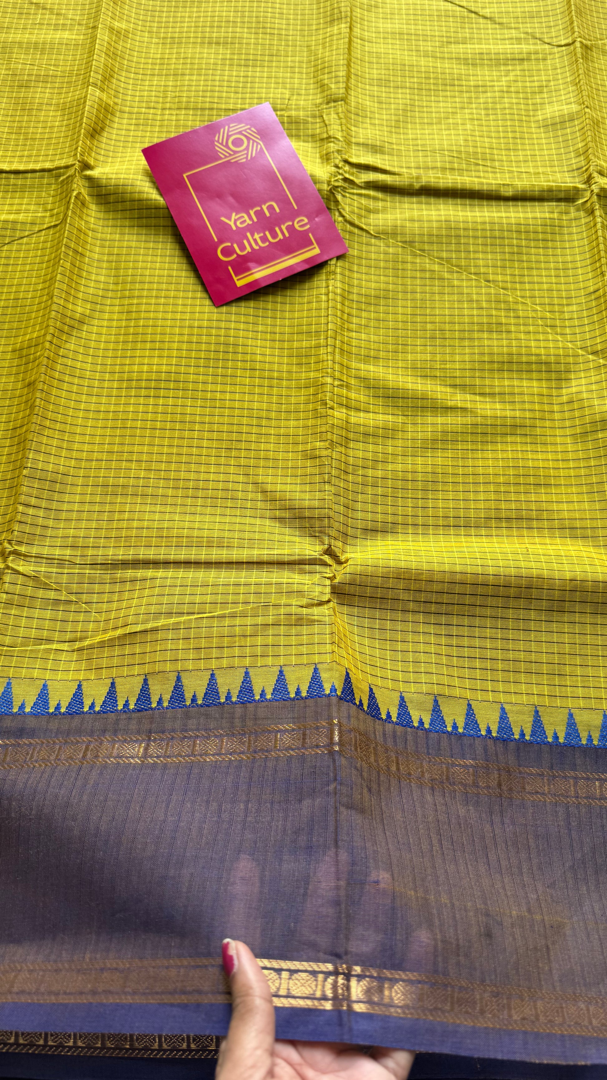 Ginger green with deep purple border, temple motifs, checkered body, kanchi cotton - YCCOTNOCKC28