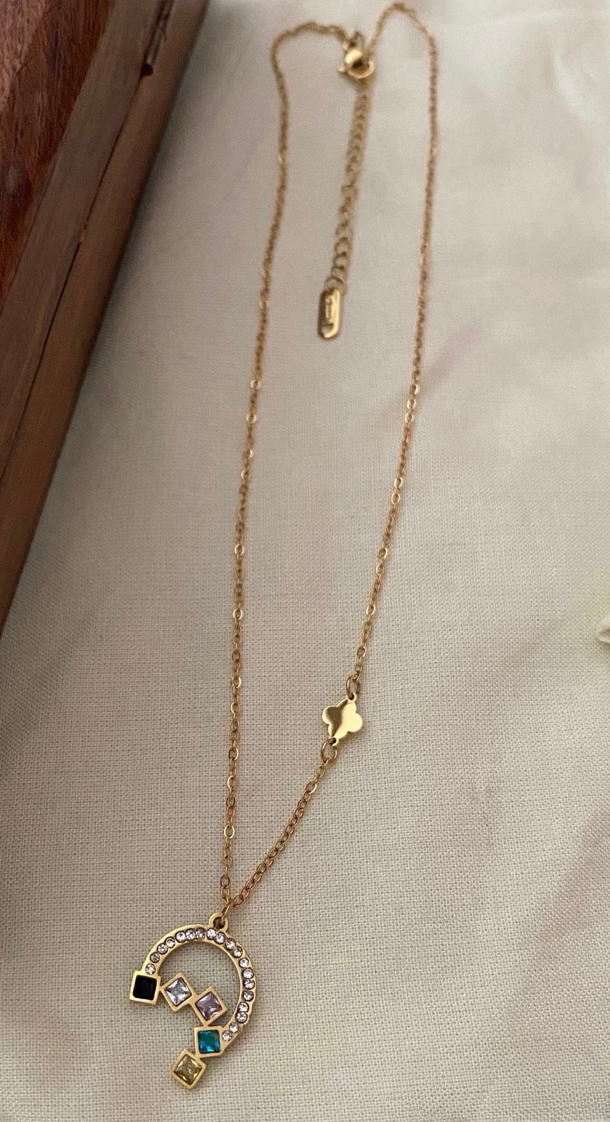 Gold plated chain, multicoloured stone pendant - YCGPC250