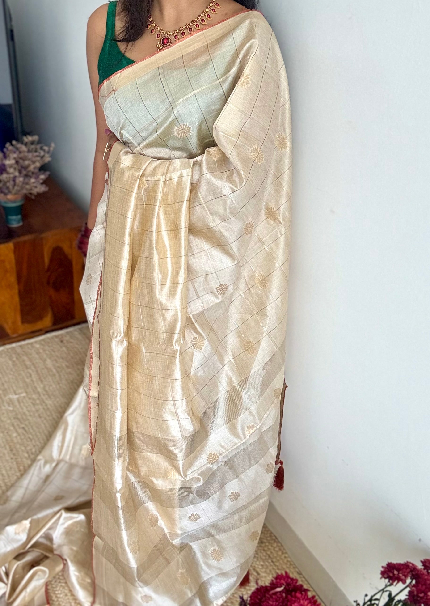 Material: Semi tussar/Additional info: With blouse, Length of saree : 6.3m/ Width: 46”