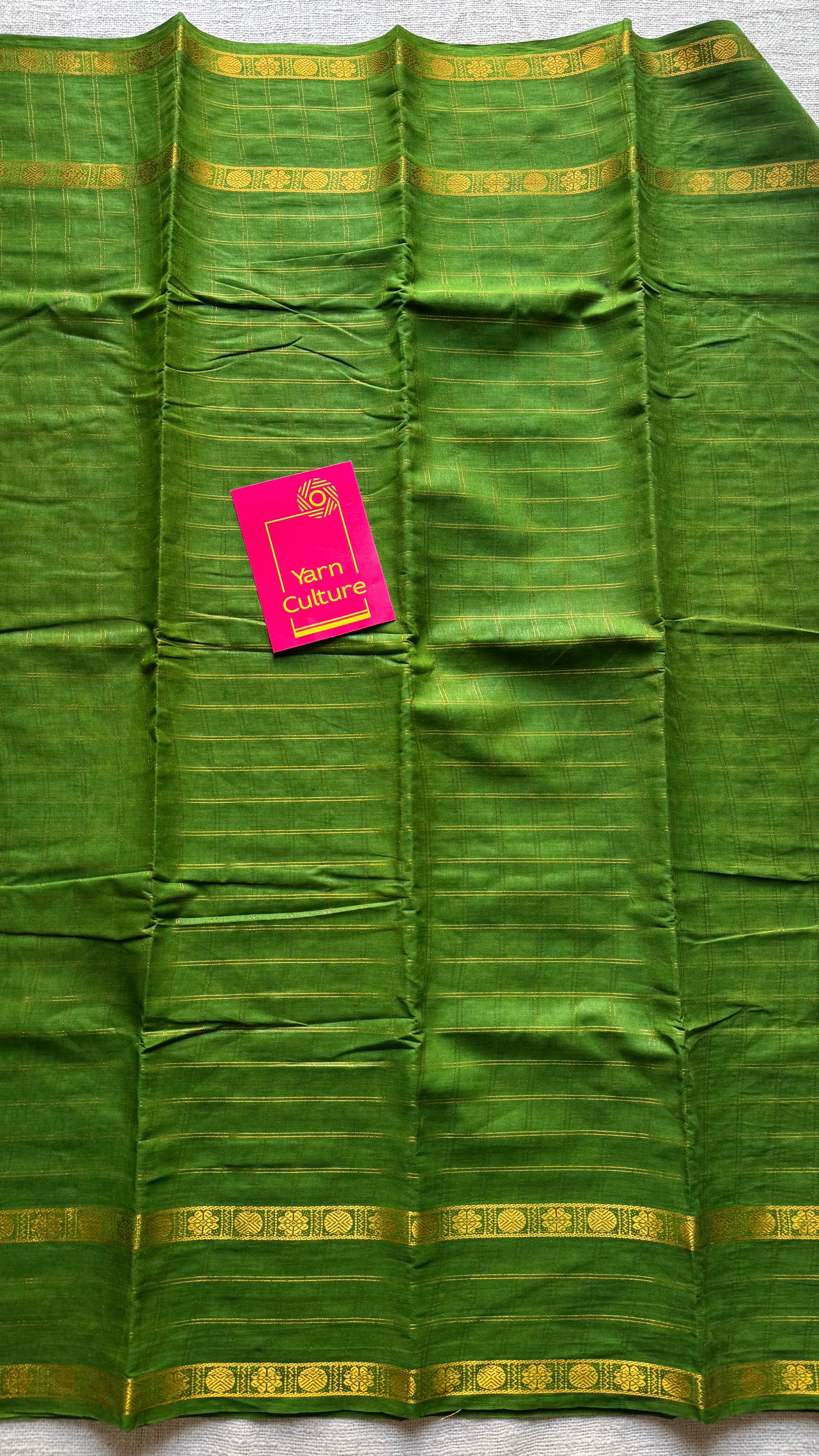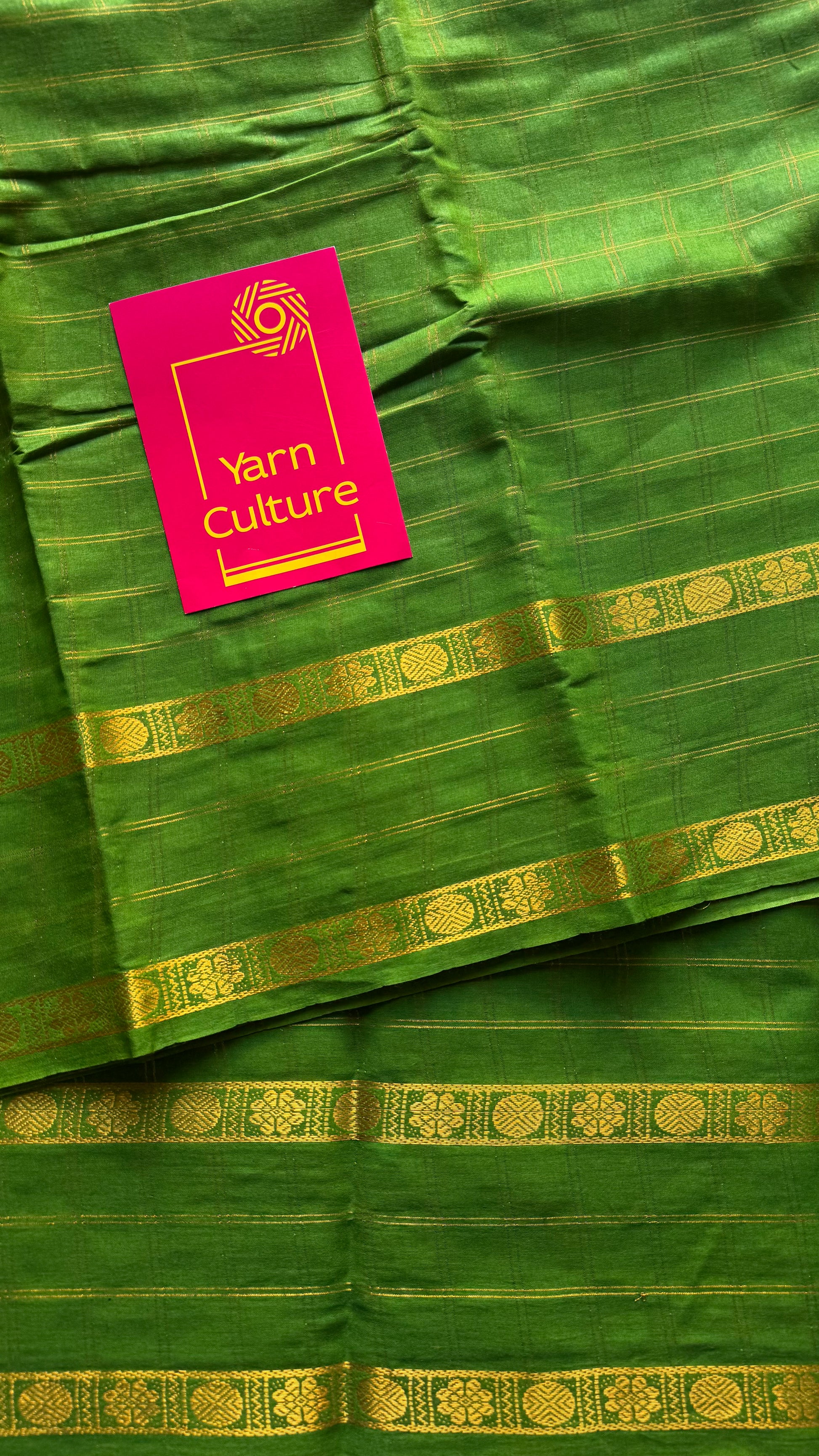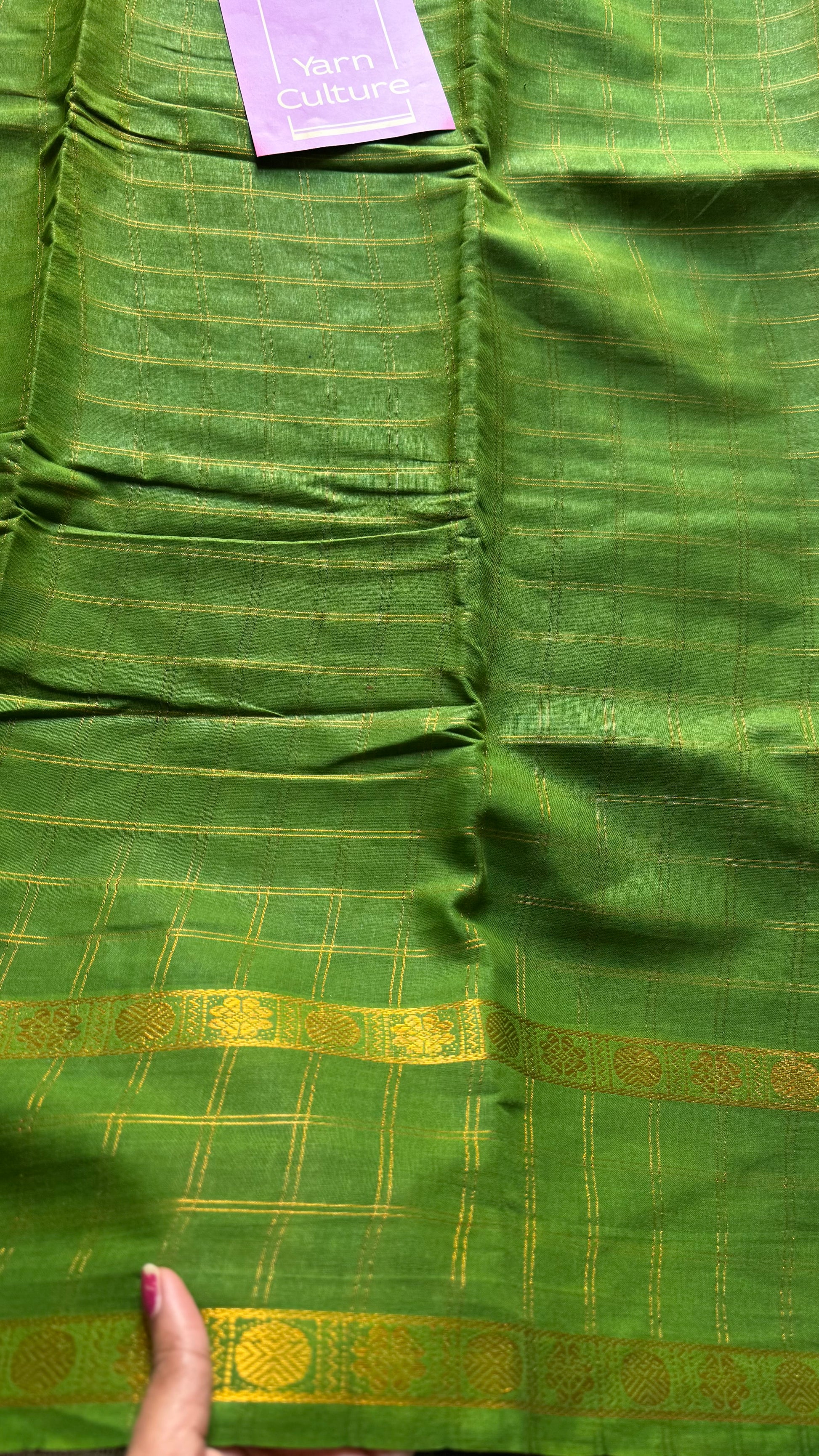 Green adayar gold zari kattam, sungudi cotton - YCCOTNOCSC46