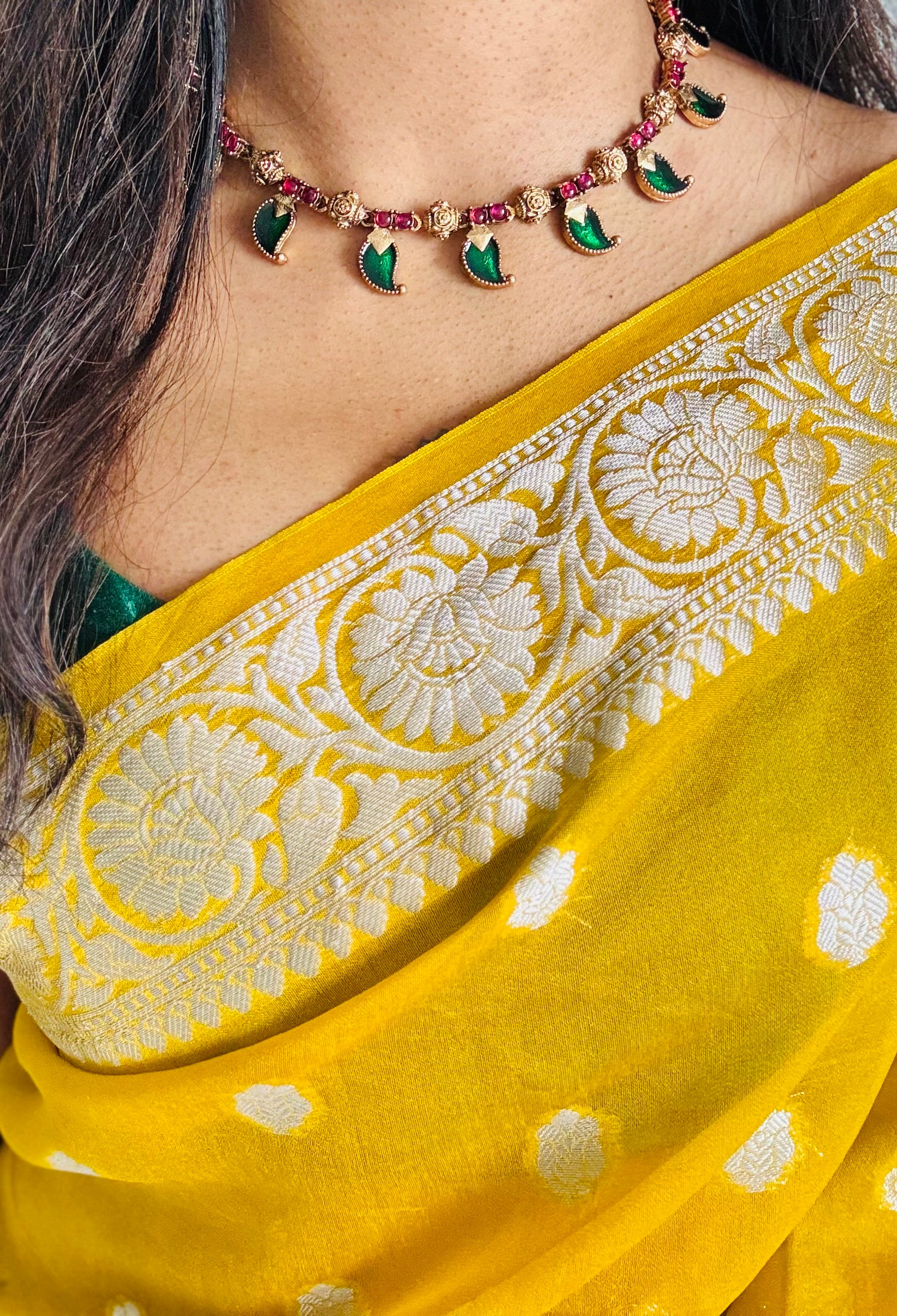 Green mango palakka neckpiece, with earrings.