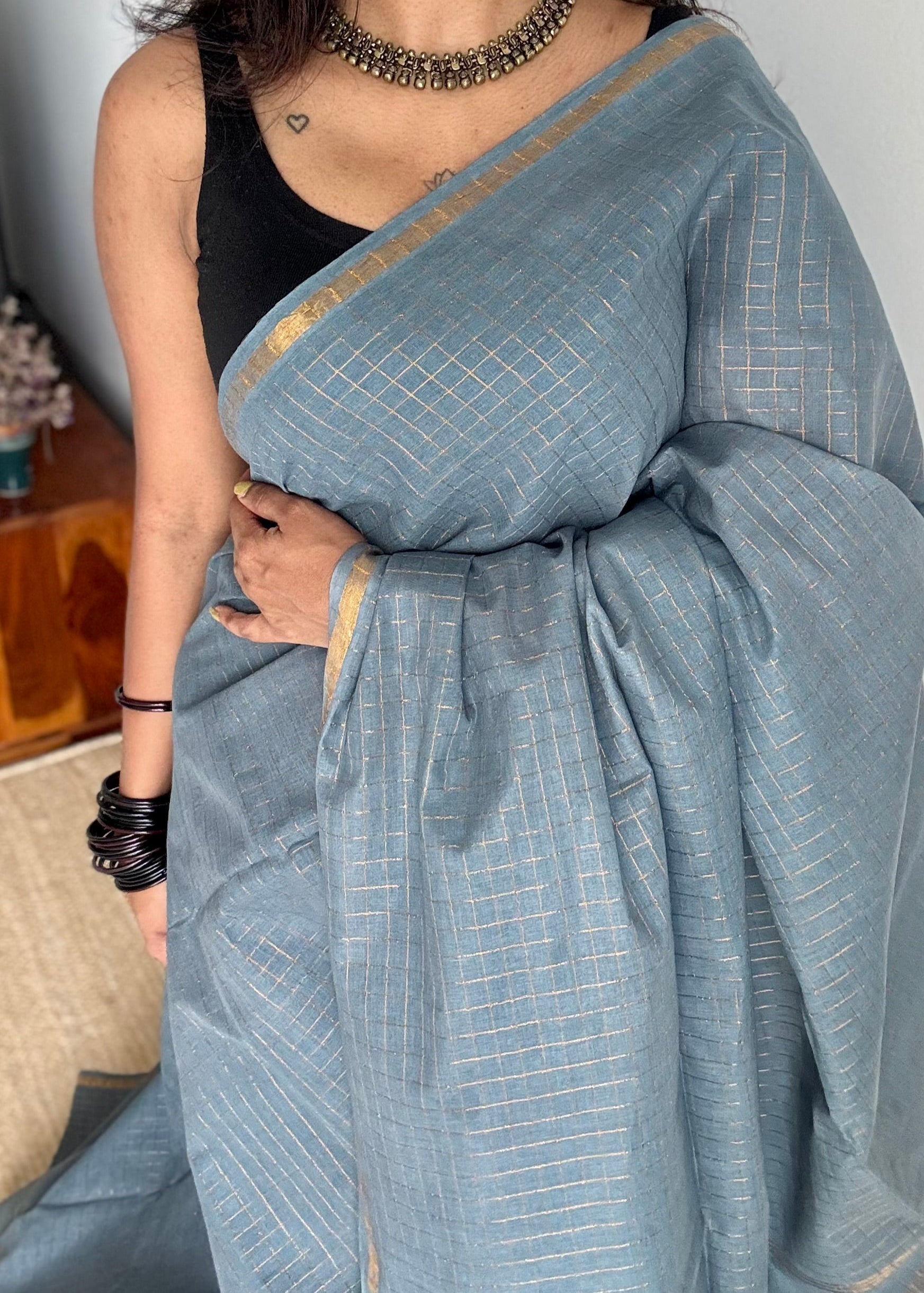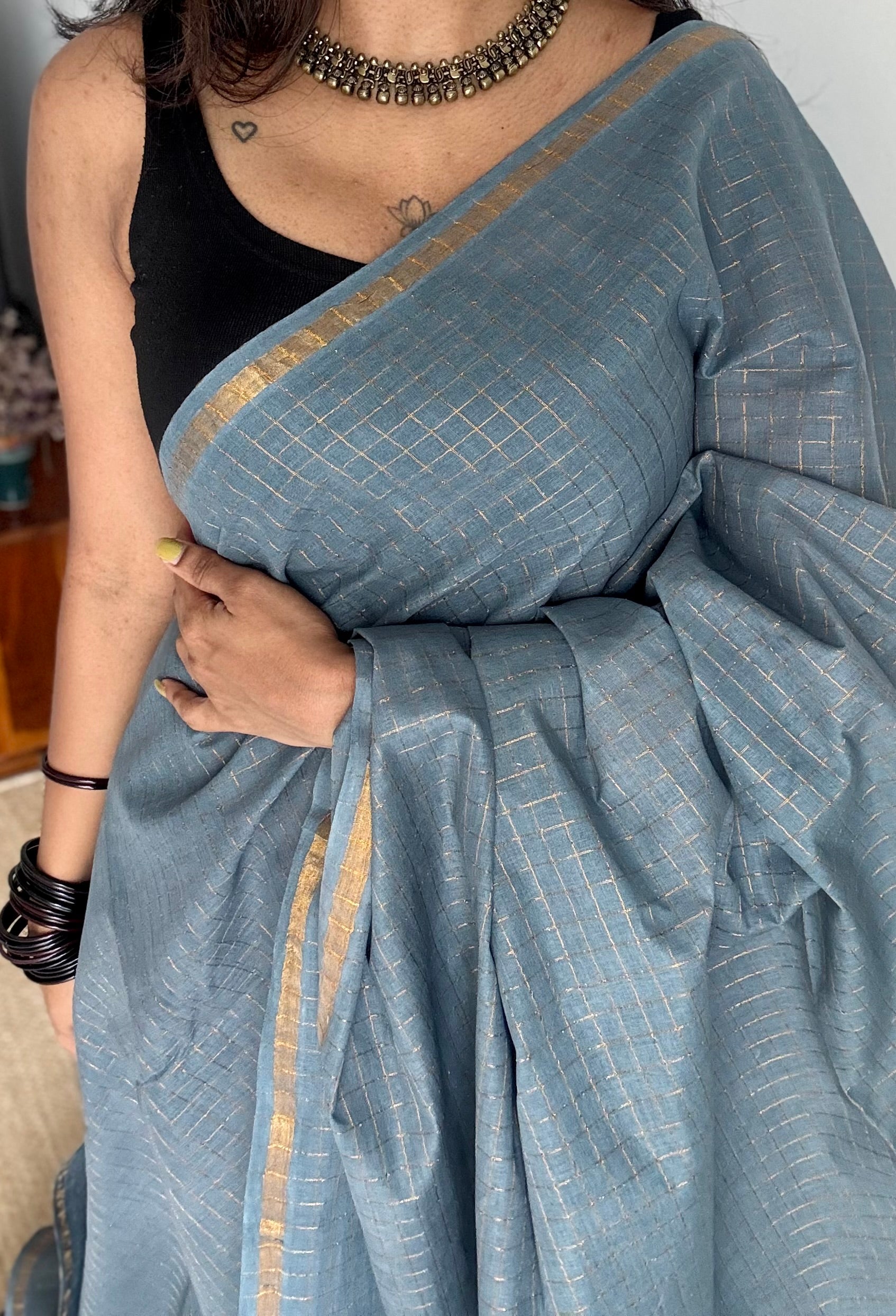 Grey mini kattam sungudi, madurai cotton - YCMCMCS01