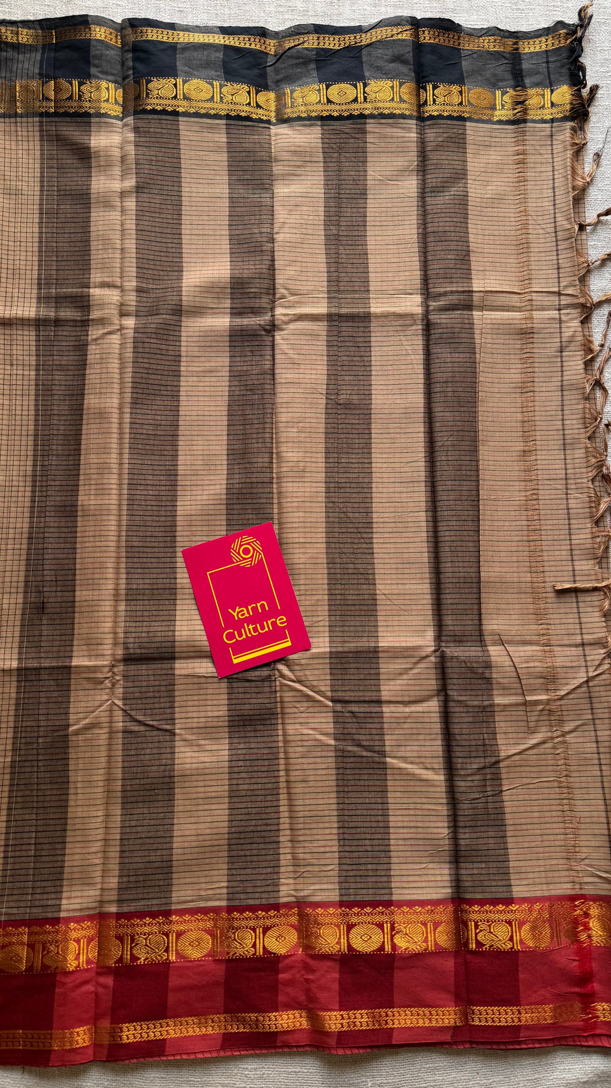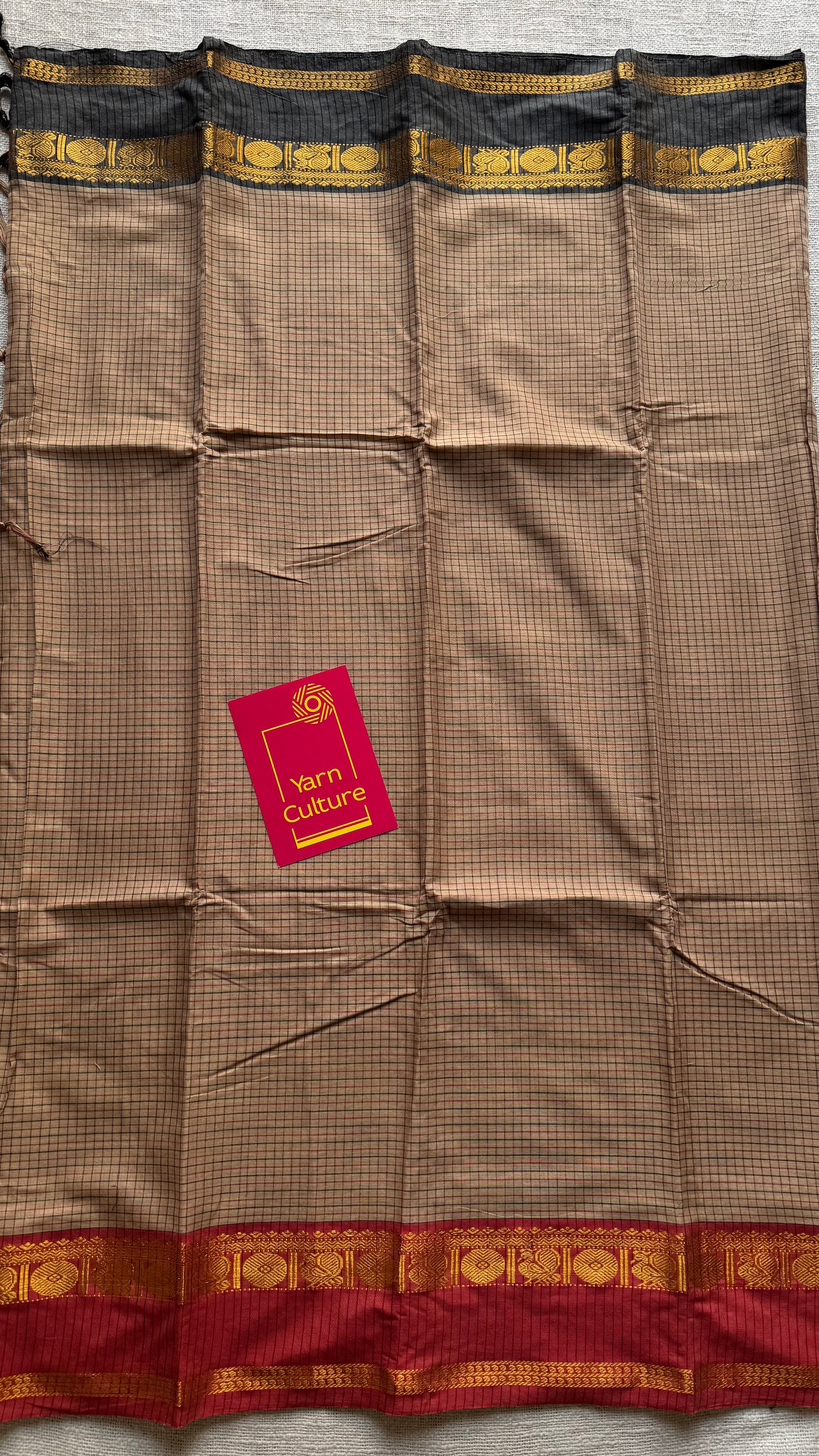 Grey checks with black and light red ganga jamuna borders, premium narayanpet soft cotton - YCWOTDNPJA154