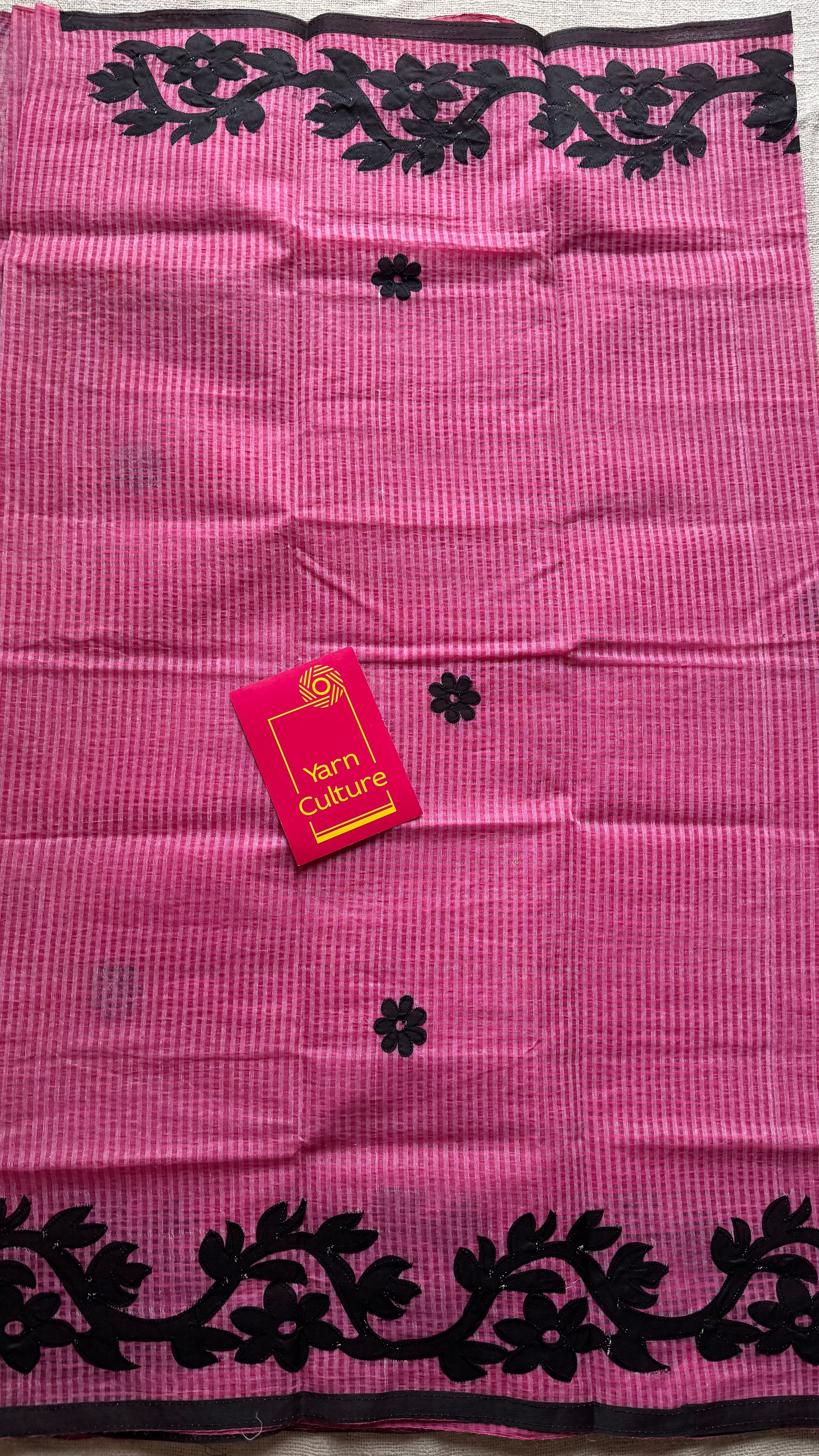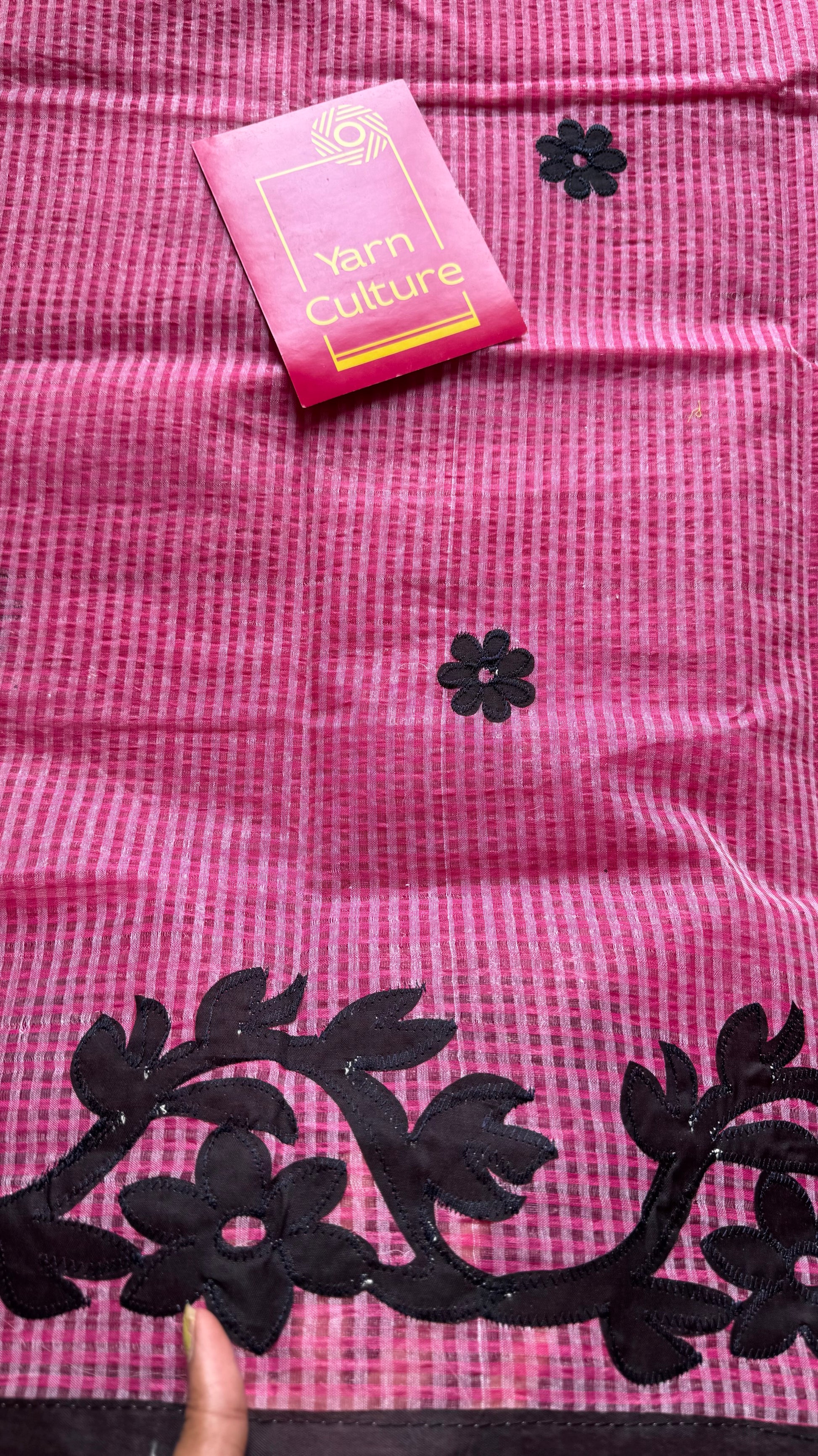 Gulaabi Drama - pink kota saree with black floral cut work - YCTORKDAP17